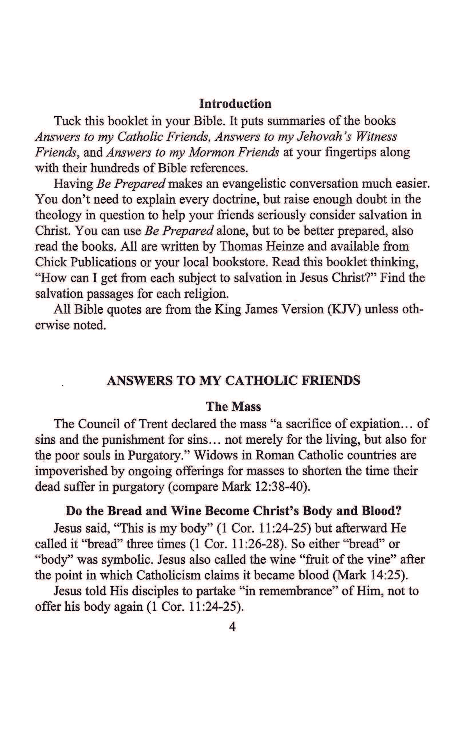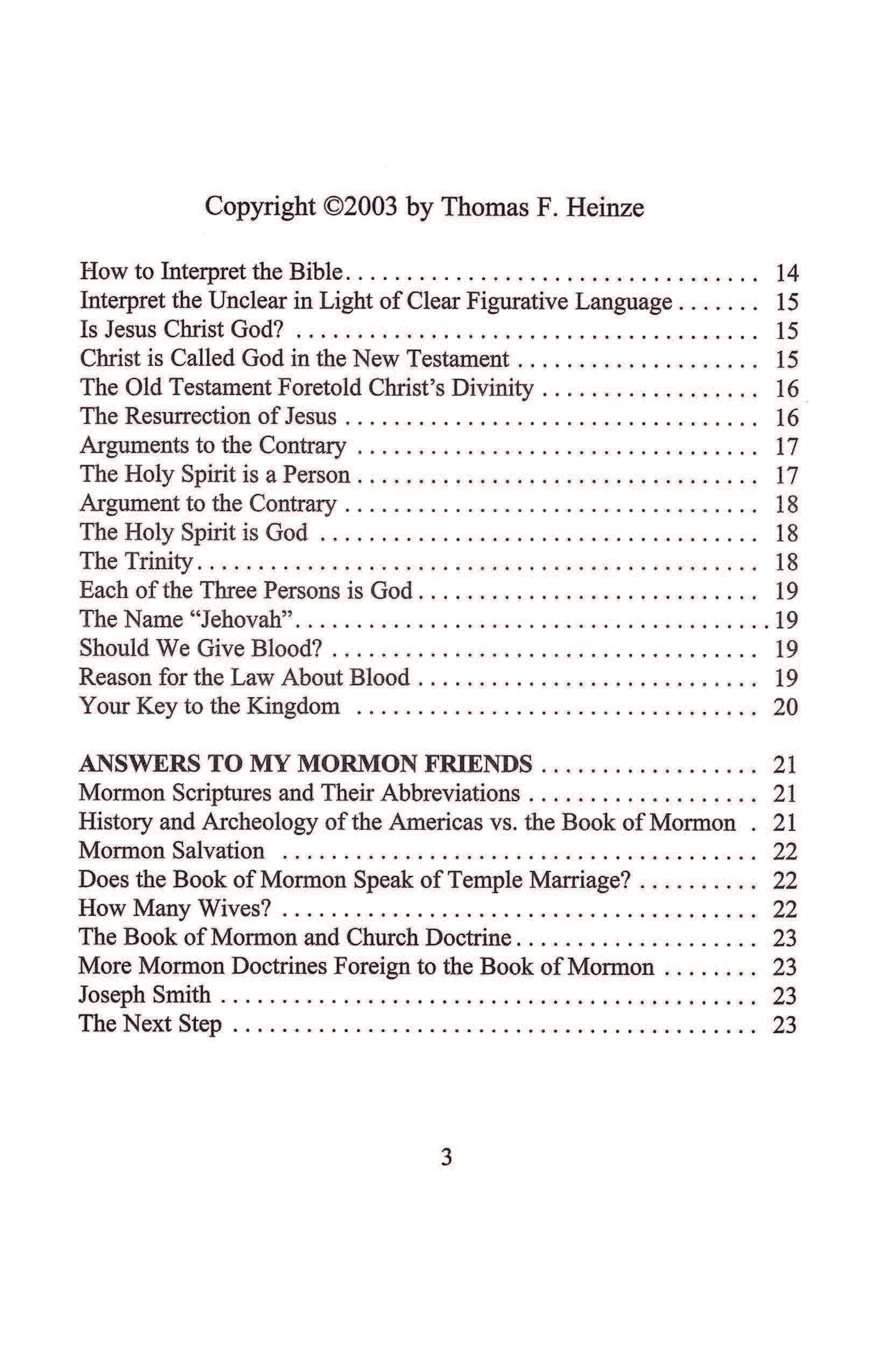 A summary of three of the author's books in the Answers series. Scriptural answers for friends who are Catholic, Jehovah's Witness, or Mormon. Landmark Baptist Press edition for free distribution and not for resale.