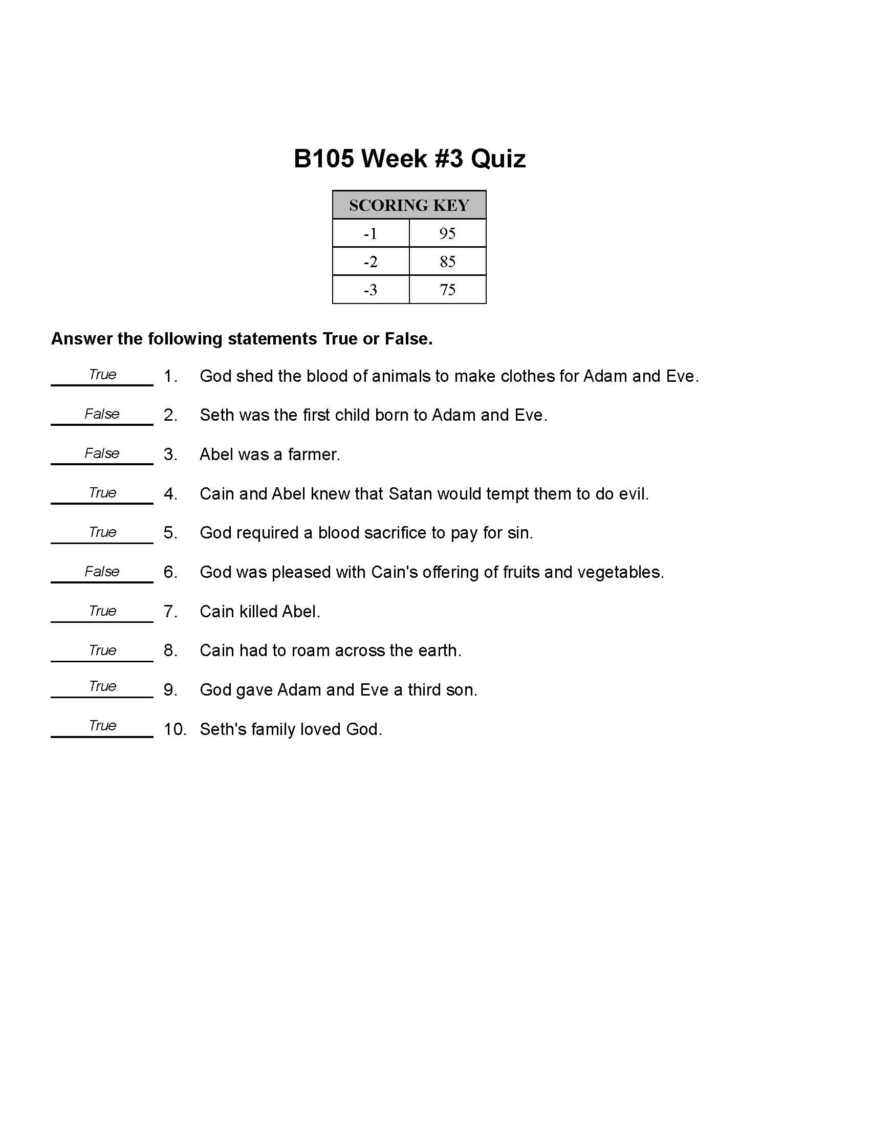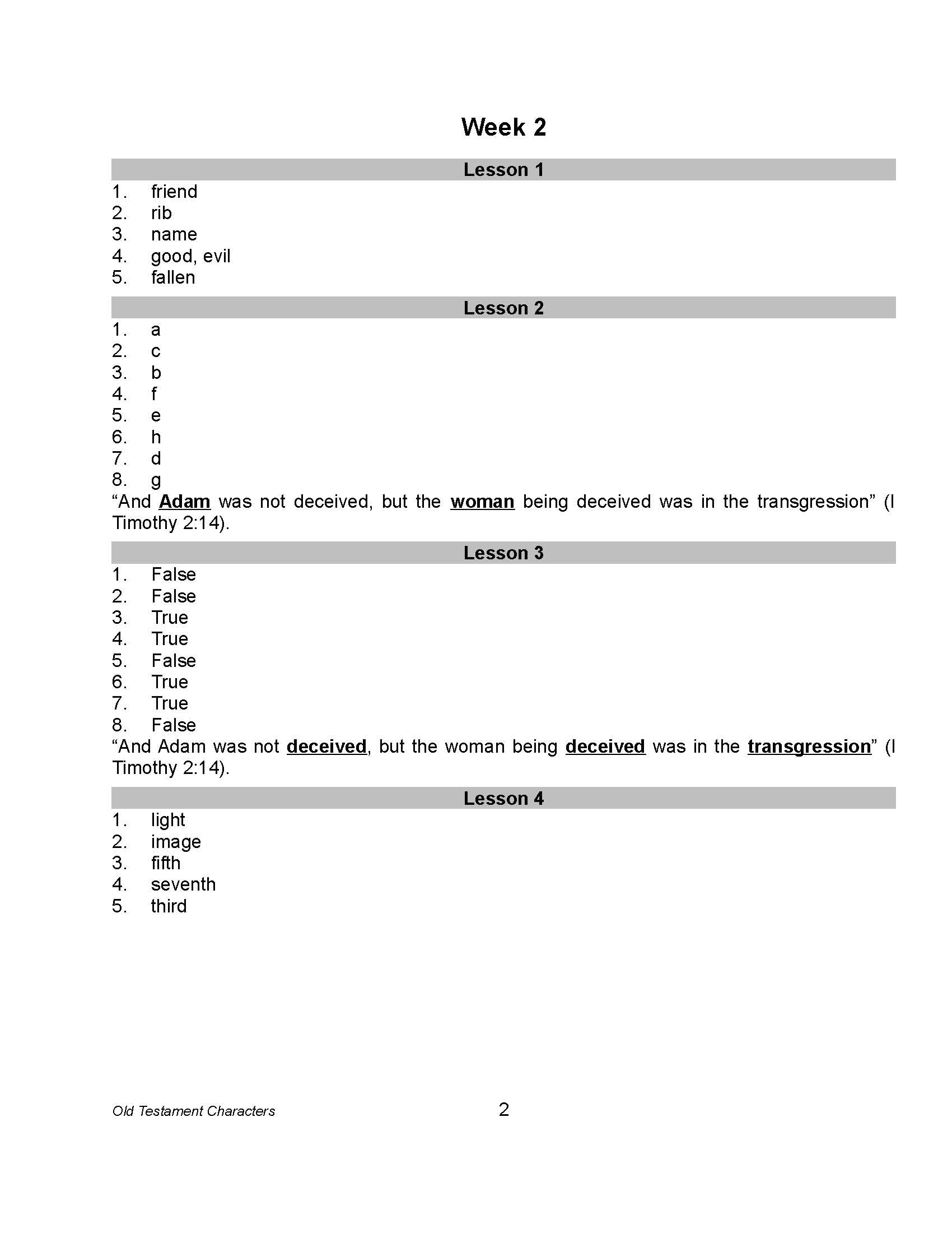 Bible Grade 01 - Old Testament Characters