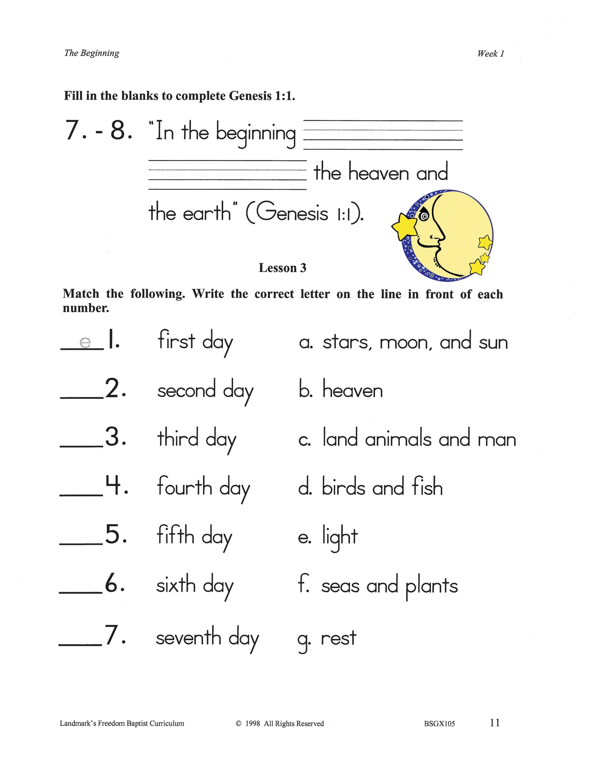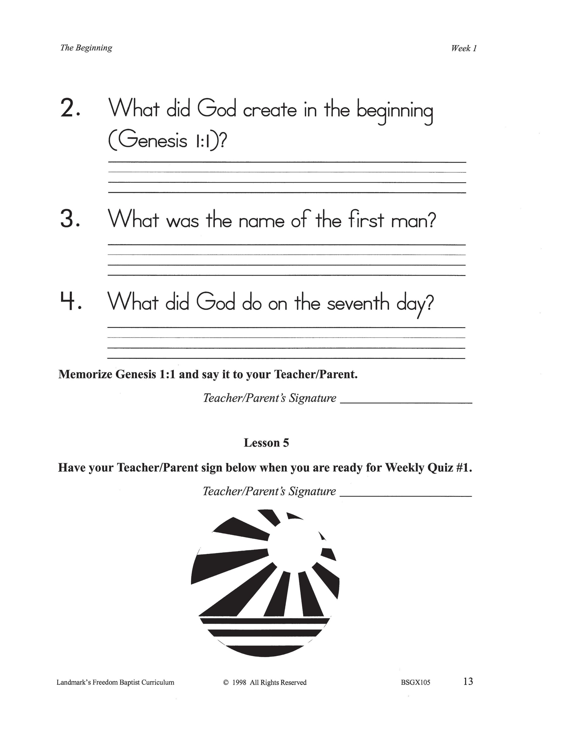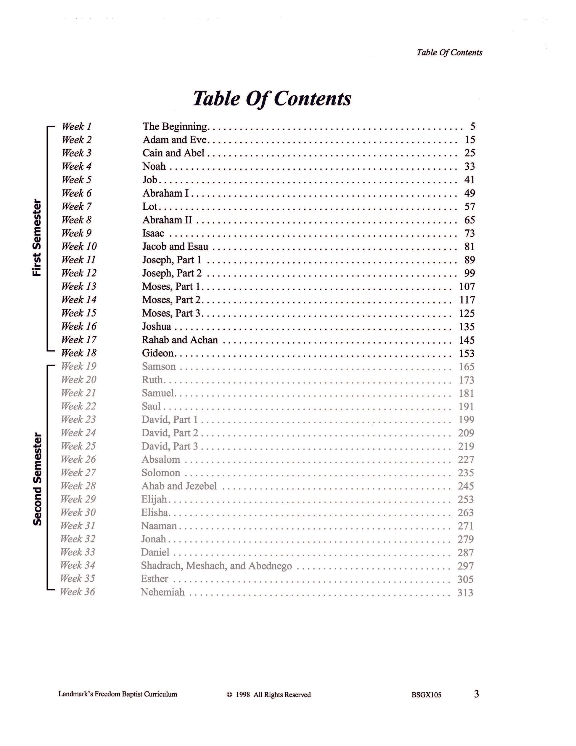 Familiar Bible stories and favorite characters are used in the study of the Old Testament. Each week includes vocabulary, a Bible story, reinforcement activities, and a Bible verse appropriate to the text for memorization. Each complete subject set includes everything you need for one student for one year. Because the set is complete, you are assured that Study Guides, Study Guide Answers, Test and Quizzes, and Test and Quiz Answers are included and are the latest edition available.