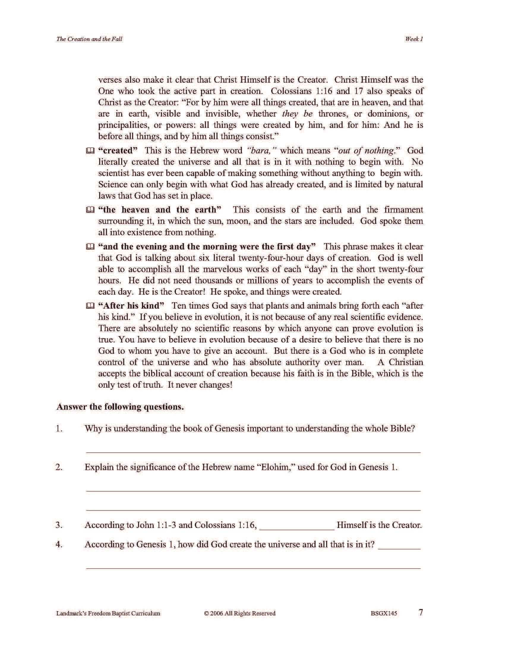 Landmark's Freedom Baptist Curriculum