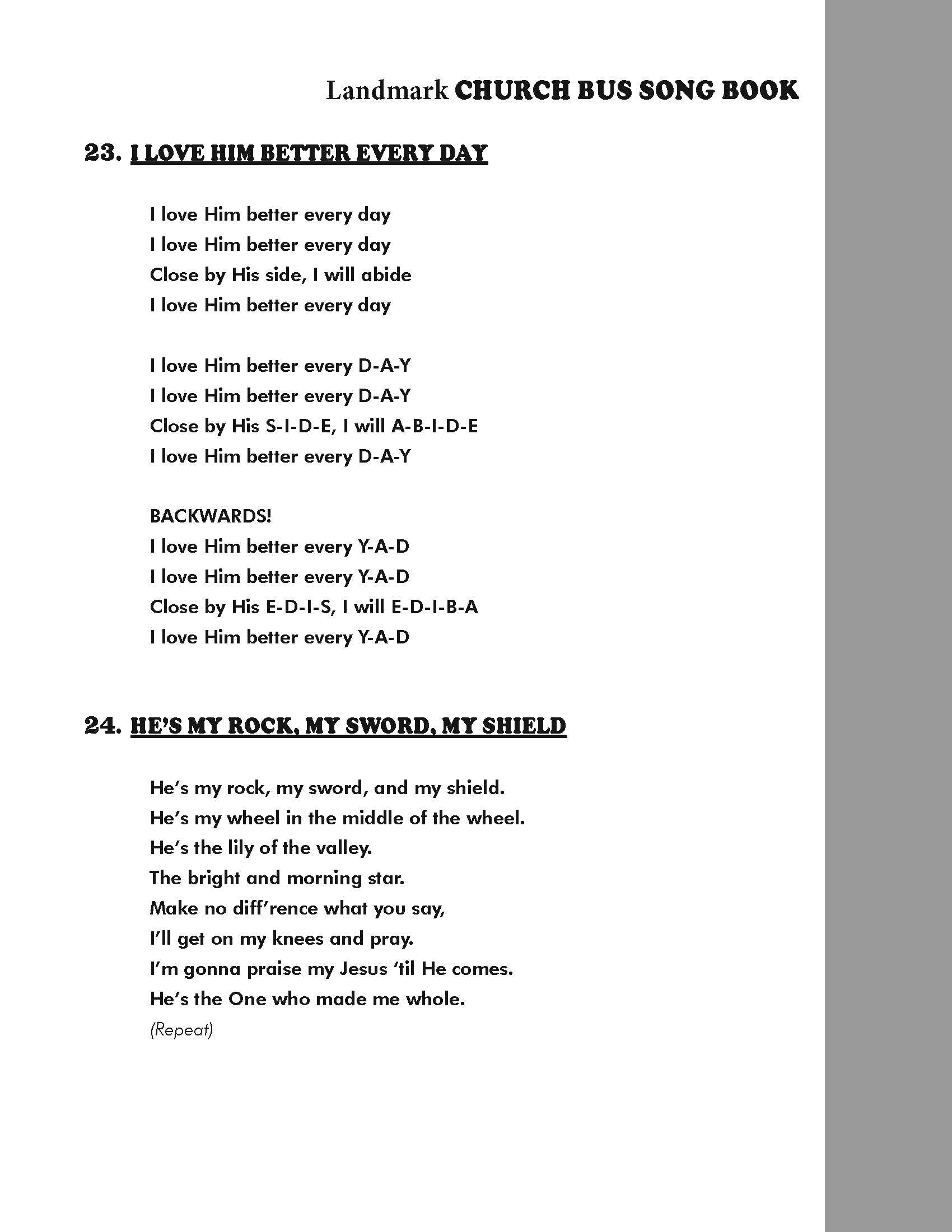 In this booklet is an assortment of songs from I'M IN THE LORD'S ARMY to the CRAYON BOX SONG. The songs are arranged in three different sections from loud songs to quiet songs. It is an essential tool to any children's ministry worker to be properly prepared for any situation. This book contains the lyrics only of each song.