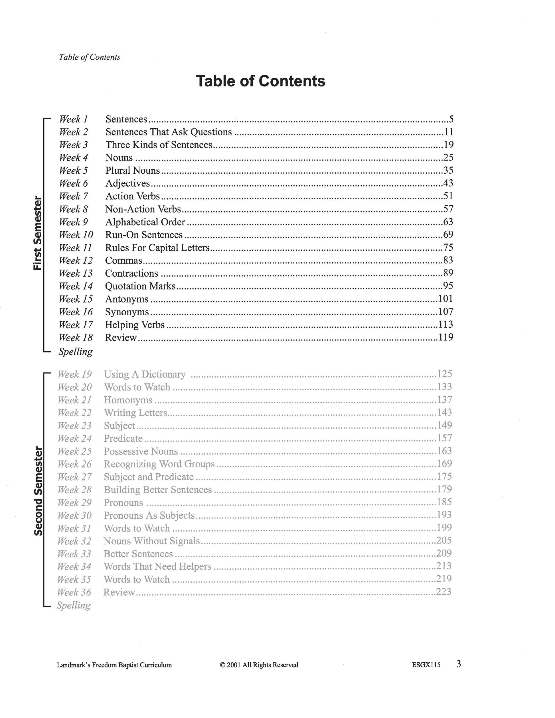 Students will develop their ability to think and express their thoughts correctly. Kinds of sentences, punctuation and capitalization rules, recognition of nouns, pronouns, verbs, adjectives, and prepositions, contractions, antonyms, homonyms, alphabetizing of words, dictionary skills, and writing compositions are all covered throughout the course of the year. Spelling 3 contains 36 weeks of spelling lists with activities. Each complete subject set includes everything you need for one student for one year. Because the set is complete, you are assured that Study Guides, Study Guide Answers, Test and Quizzes, and Test and Quiz Answers are included and are the latest edition available.