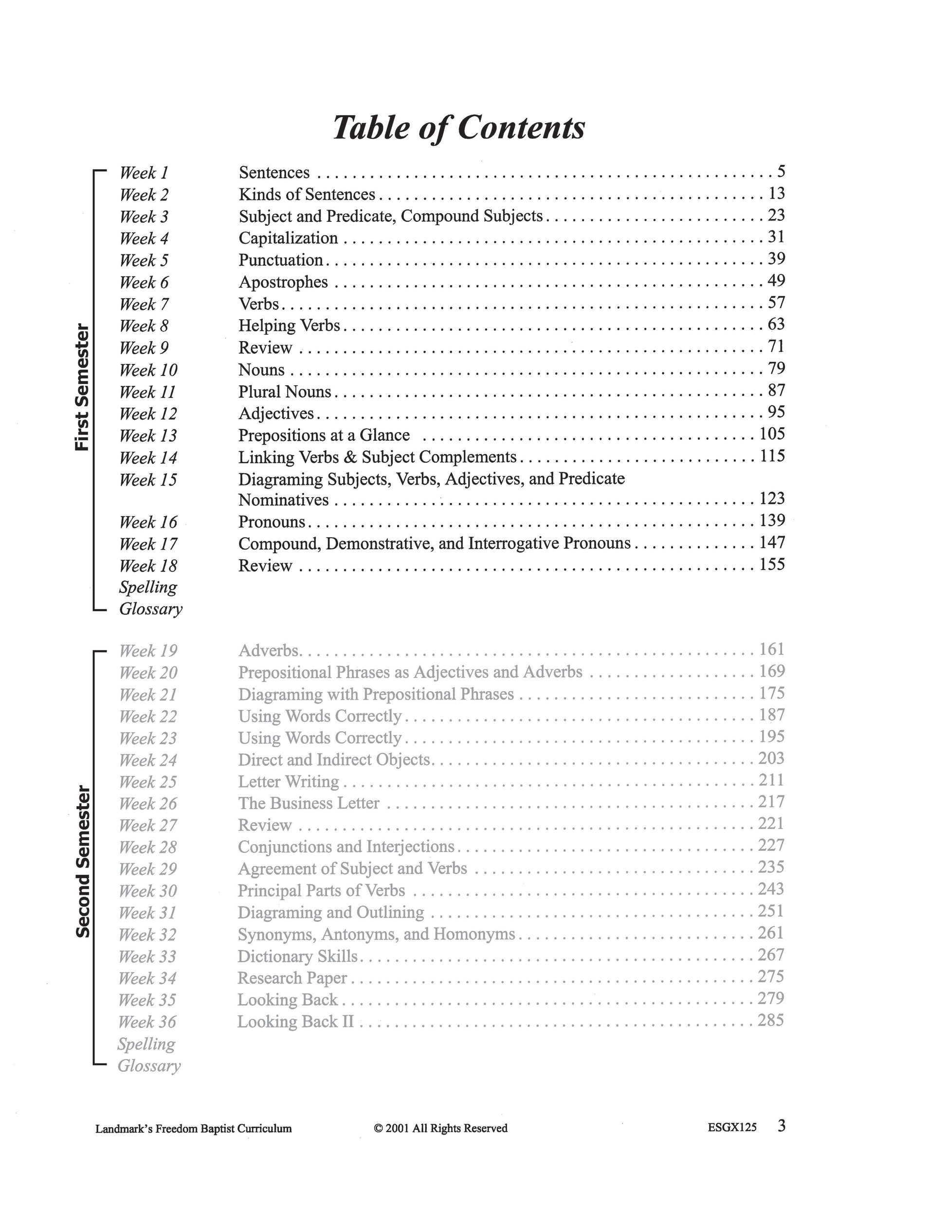 Sentence structure, kinds of sentences, punctuation and capitalization rules, recognizing and diagraming all eight parts of speech, contractions, antonyms, homonyms, using troublesome words correctly, dictionary skills, letter writing – friendly, business, thank-you notes, writing a research paper, and writing compositions are all covered throughout the course of the year. Spelling 5 contains 36 weeks of spelling lists with activities and glossary. Each complete subject set includes everything you need for one student for one year. Because the set is complete, you are assured that Study Guides, Study Guide Answers, Test and Quizzes, and Test and Quiz Answers are included and are the latest edition available.