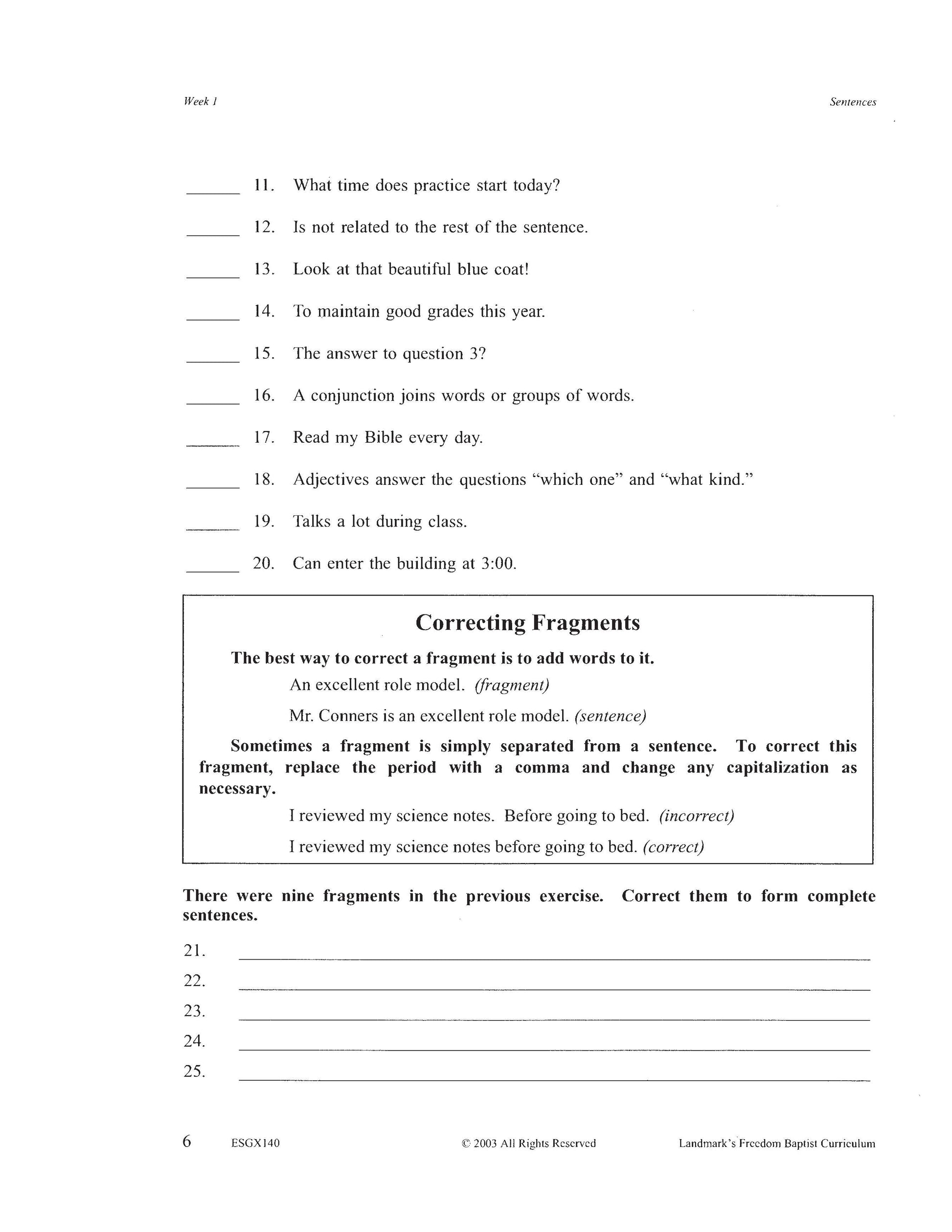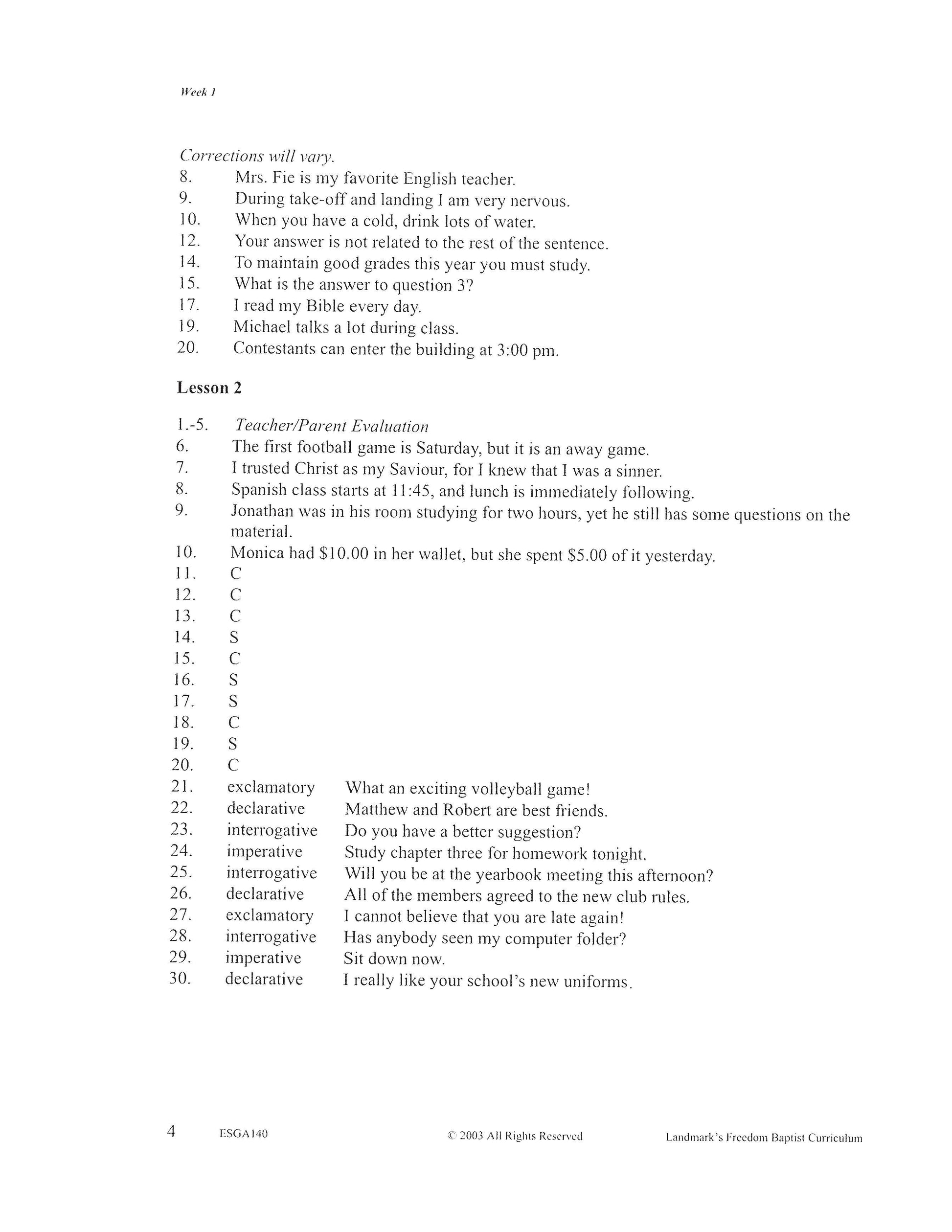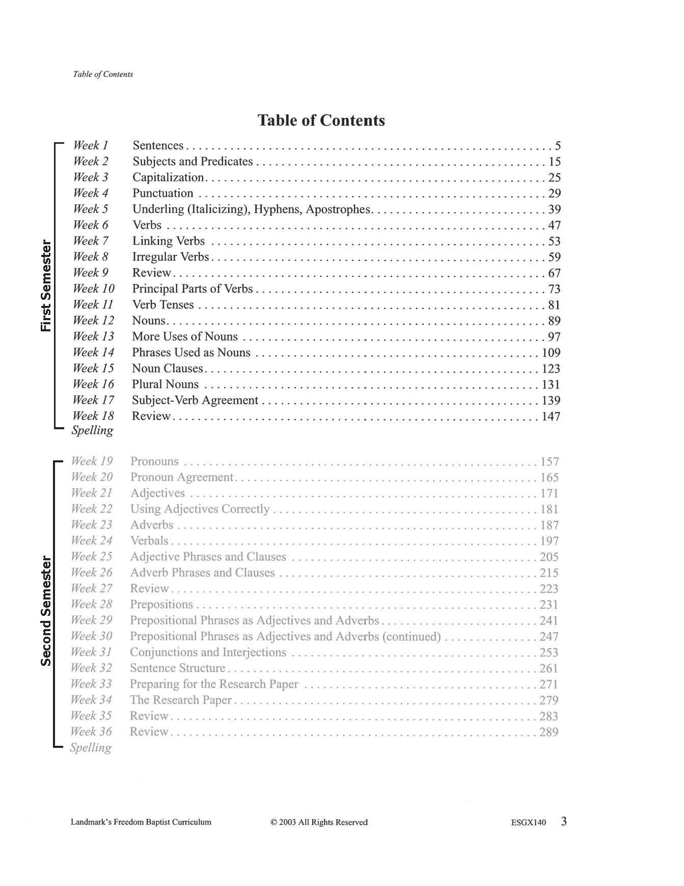 Sentence structure, kinds of sentences, punctuation and capitalization rules, recognizing and diagramming all eight parts of speech, contractions, antonyms, homonyms, using troublesome words correctly, and writing compositions are all covered throughout the course of the year. Each complete subject set includes everything you need for one student for one year. Because the set is complete, you are assured that Study Guides, Study Guide Answers, Test and Quizzes, and Test and Quiz Answers are included and are the latest edition available.