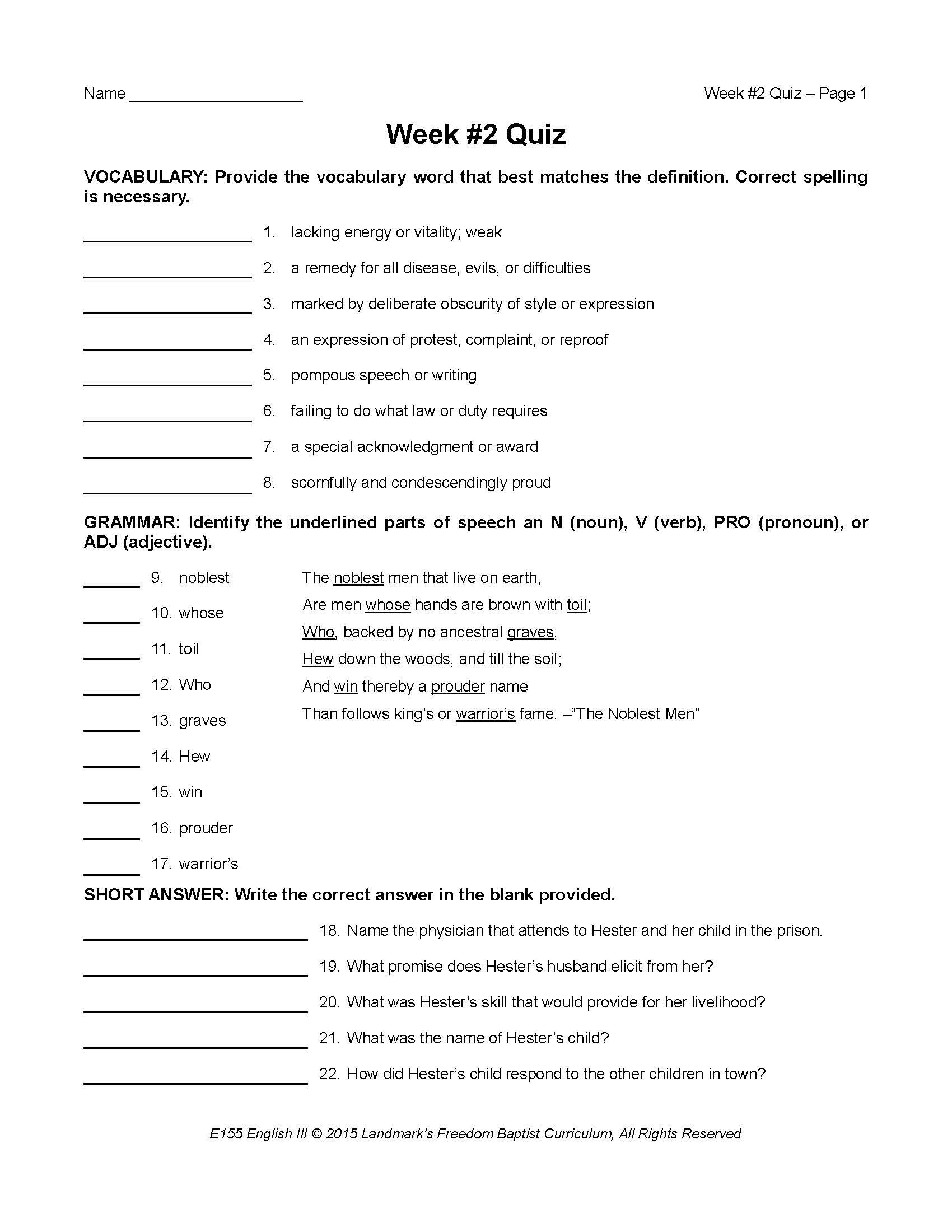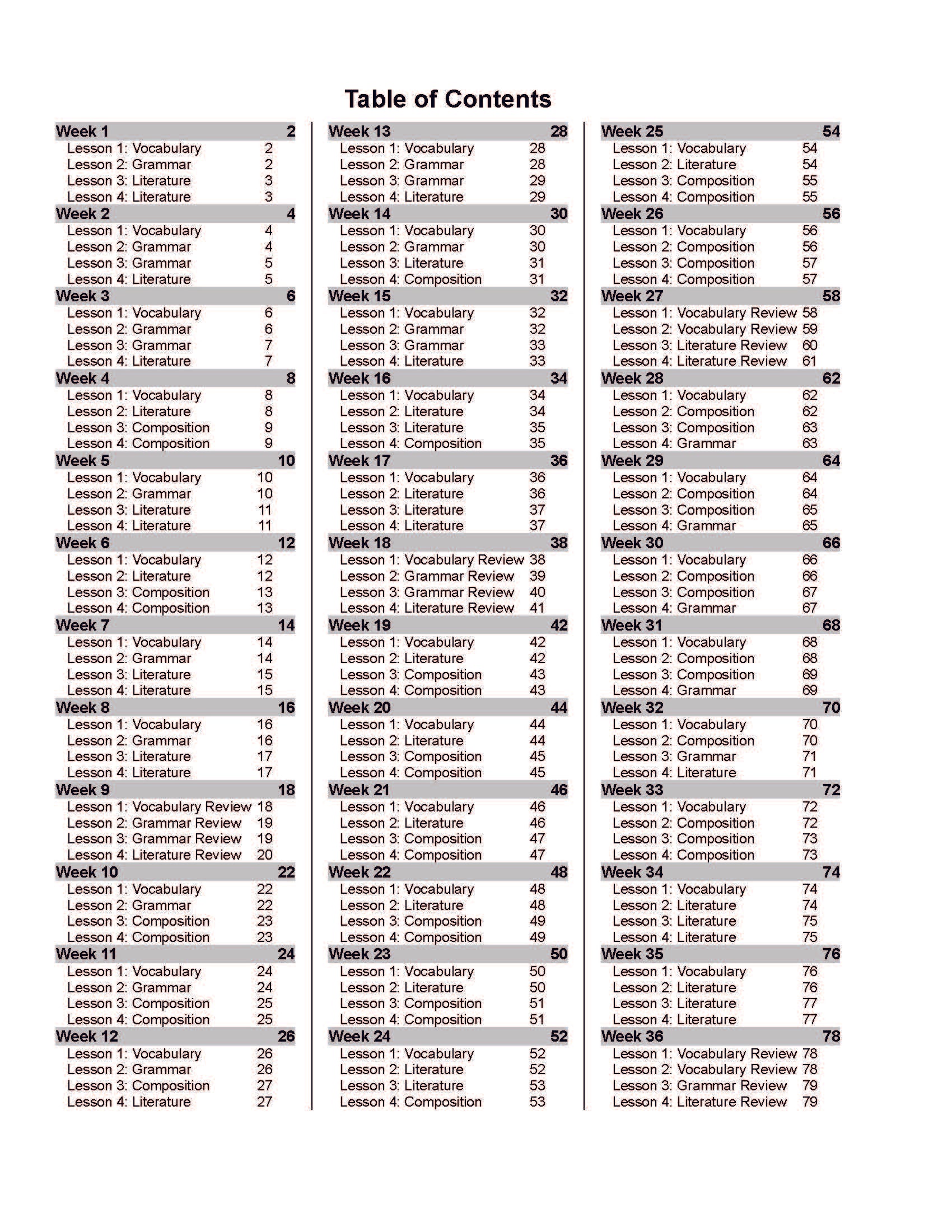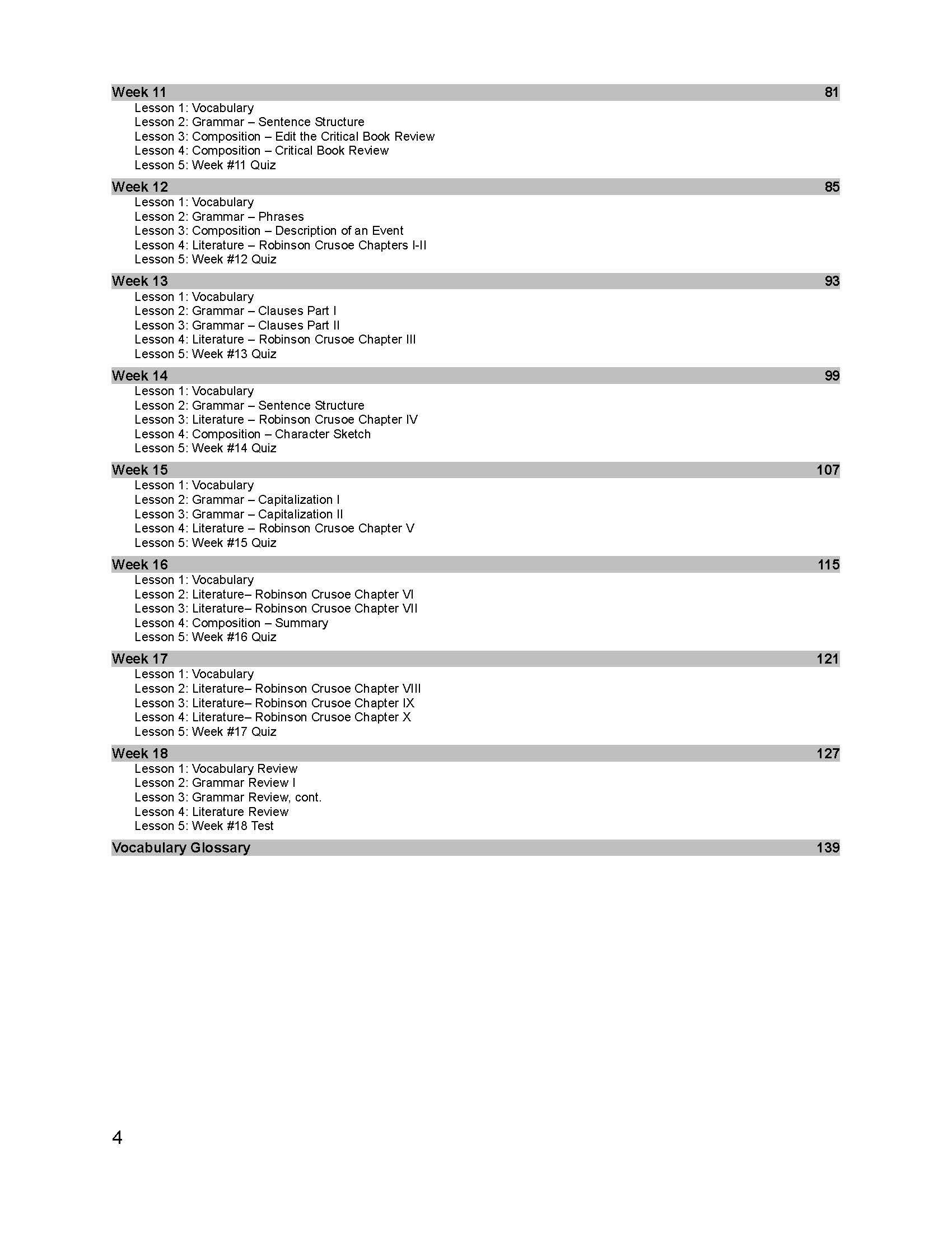This course covers grammar, usage, writing, and literature. During the third quarter the student is taught the procedure for writing a formal term paper. Each week covers a specific step in the building process of putting together a high quality finished paper. Literature includes reading and answering questions from Robinson Crusoe and The Scarlet Letter (books included in set). Each complete subject set includes everything you need for one student for one year. Because the set is complete, you are assured that Study Guides, Study Guide Answers, Test and Quizzes, and Test and Quiz Answers are included and are the latest edition available.