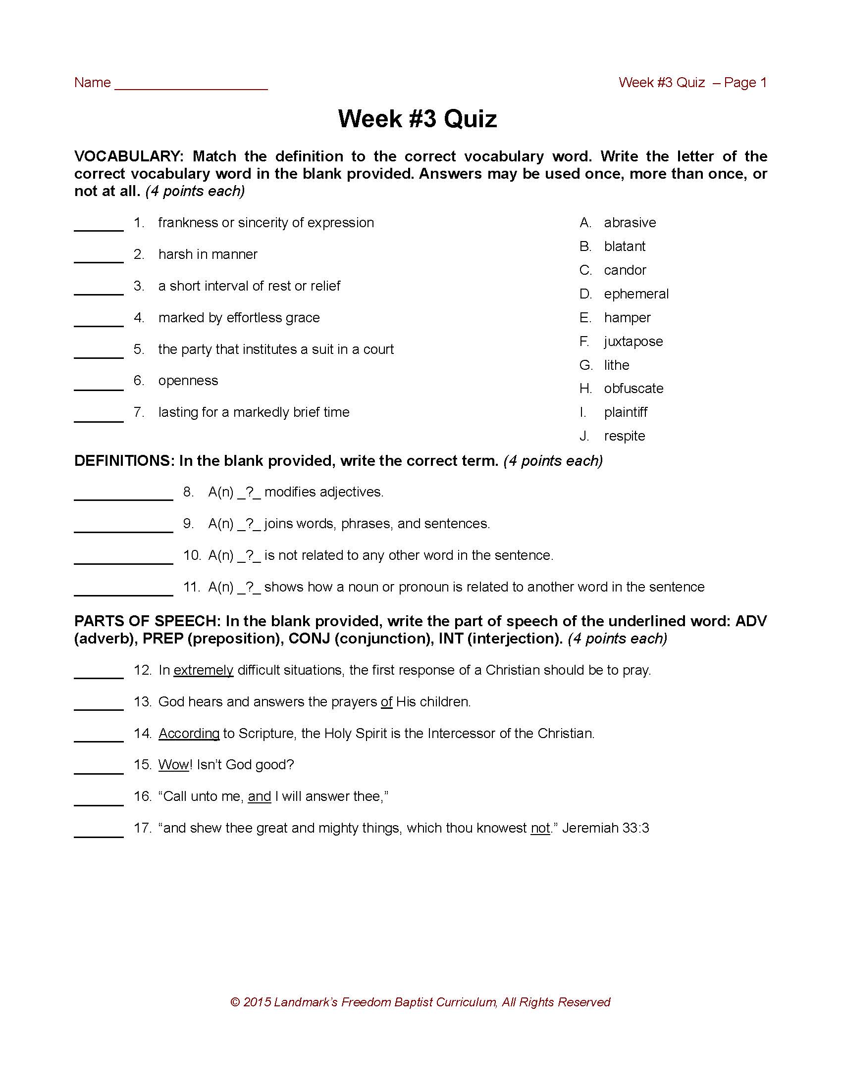 This course covers three areas. Grammar includes vocabulary improvement and a review of grammar rules and usage. Composition includes book reviews and a research paper. Literature includes reading and answering questions from a portion of The Pilgrim’s Progress, In His Steps, and Pride and Prejudice (books included in set). Each complete subject set includes everything you need for one student for one year. Because the set is complete, you are assured that Study Guides, Study Guide Answers, Test and Quizzes, and Test and Quiz Answers are included and are the latest edition available.