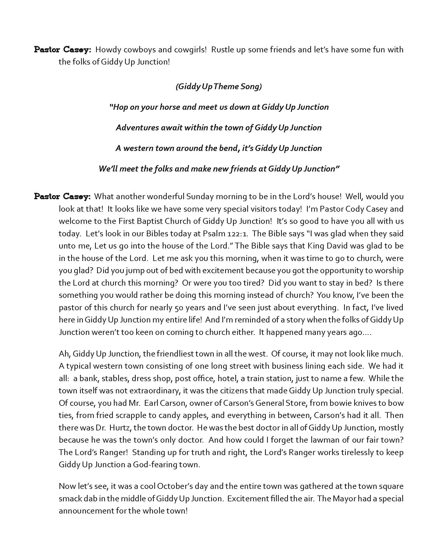 Take a step back in time into the western town of Giddy Up Junction. In the town of Giddy Up Junction church is the most important thing, but what happens when the circus comes to town on Sunday? There is a decision to be made will they do what is right or wrong. Come read and color along with the Lord's Ranger and Mayor Kennedy. Also please look in the download folder for a free download of a sample of the first few pages of the book. The audio books can be found here!