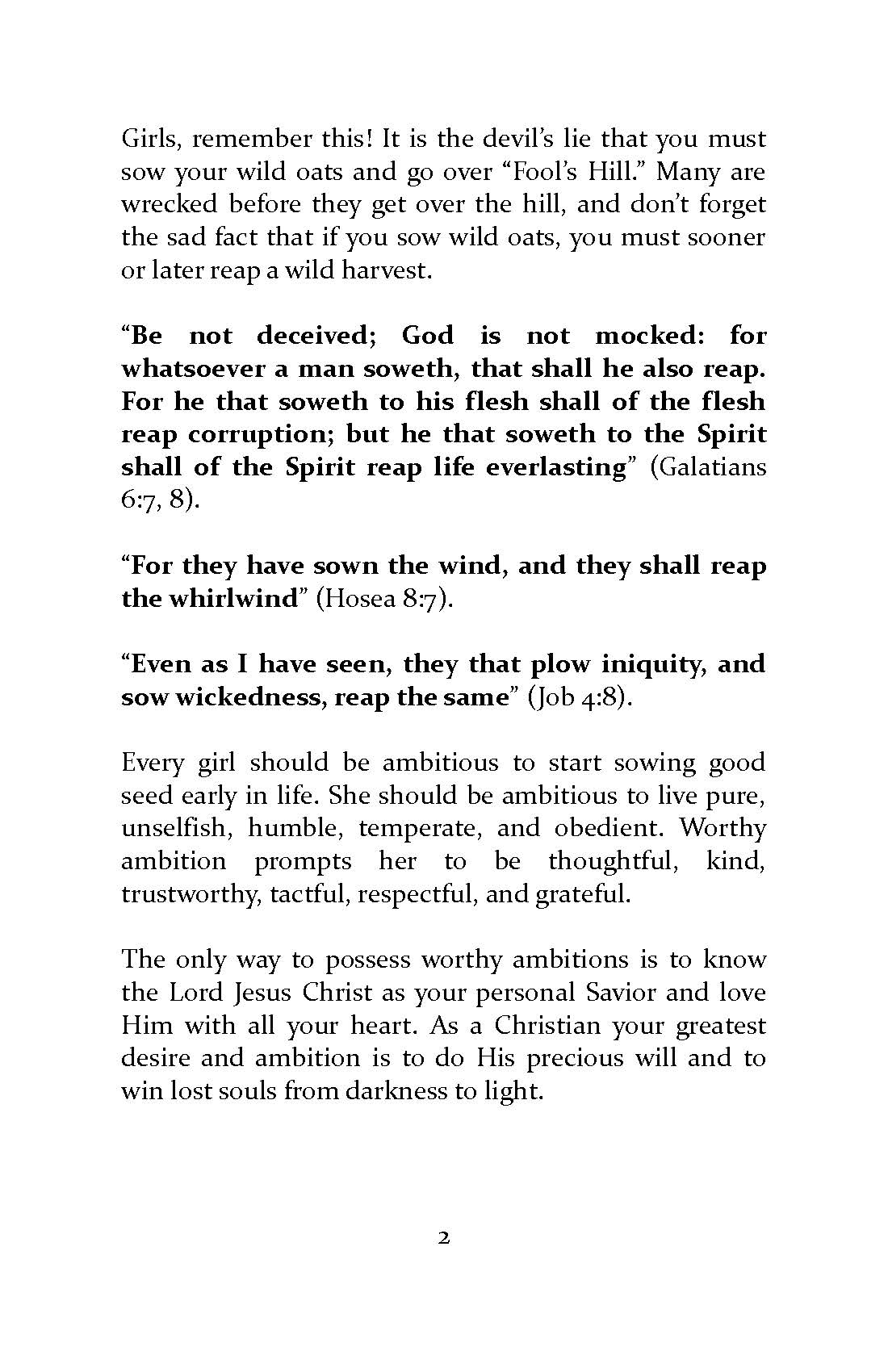 Originally published in 1937, this little book is still relevant for ladies today. Includes insight and advice for girls of all ages, along with a clear plan of salvation. A timeless classic we are glad to have included in our product line at Landmark Baptist Press.