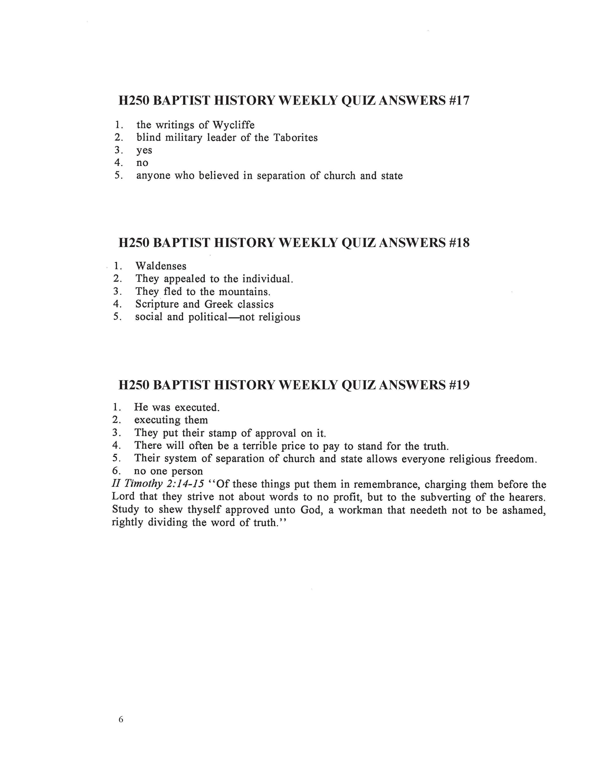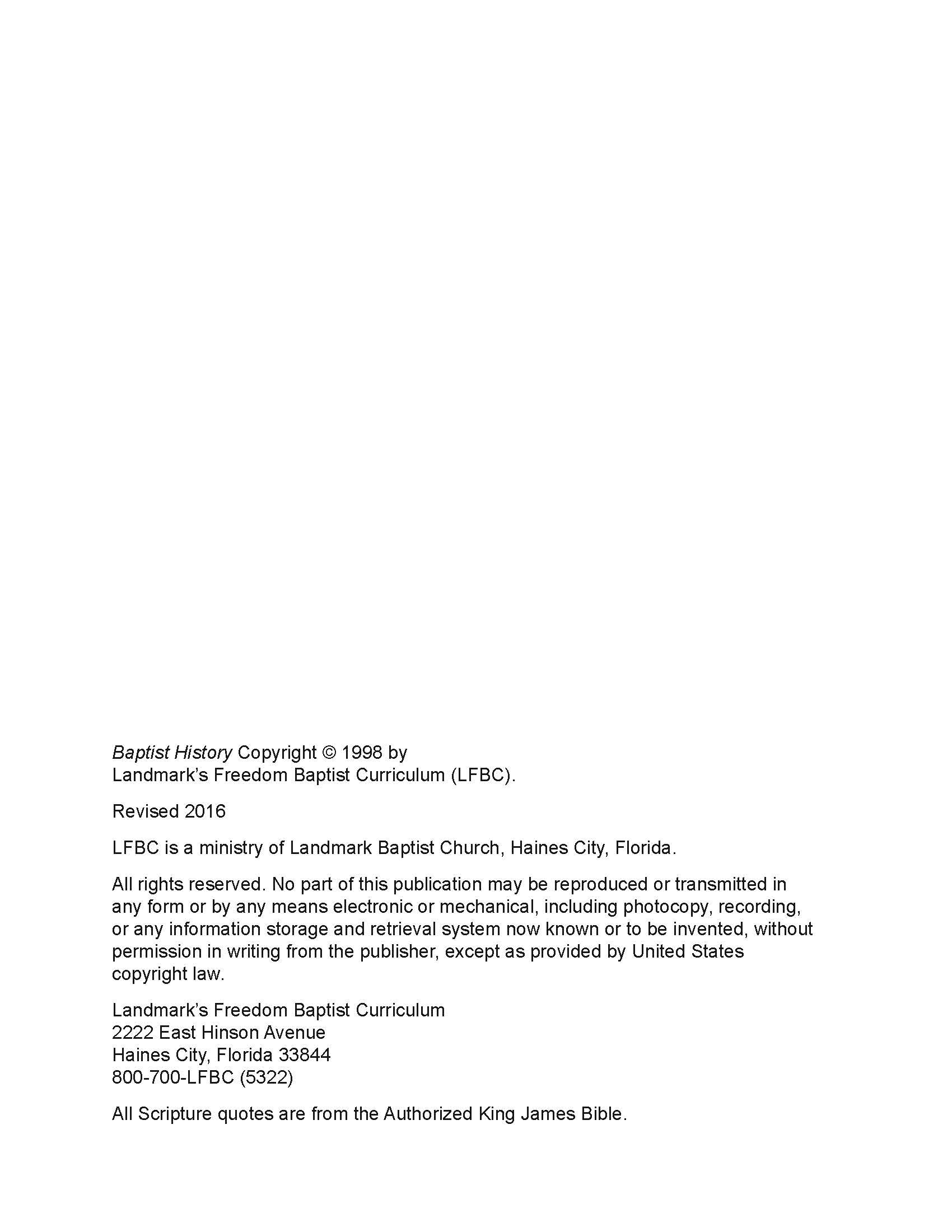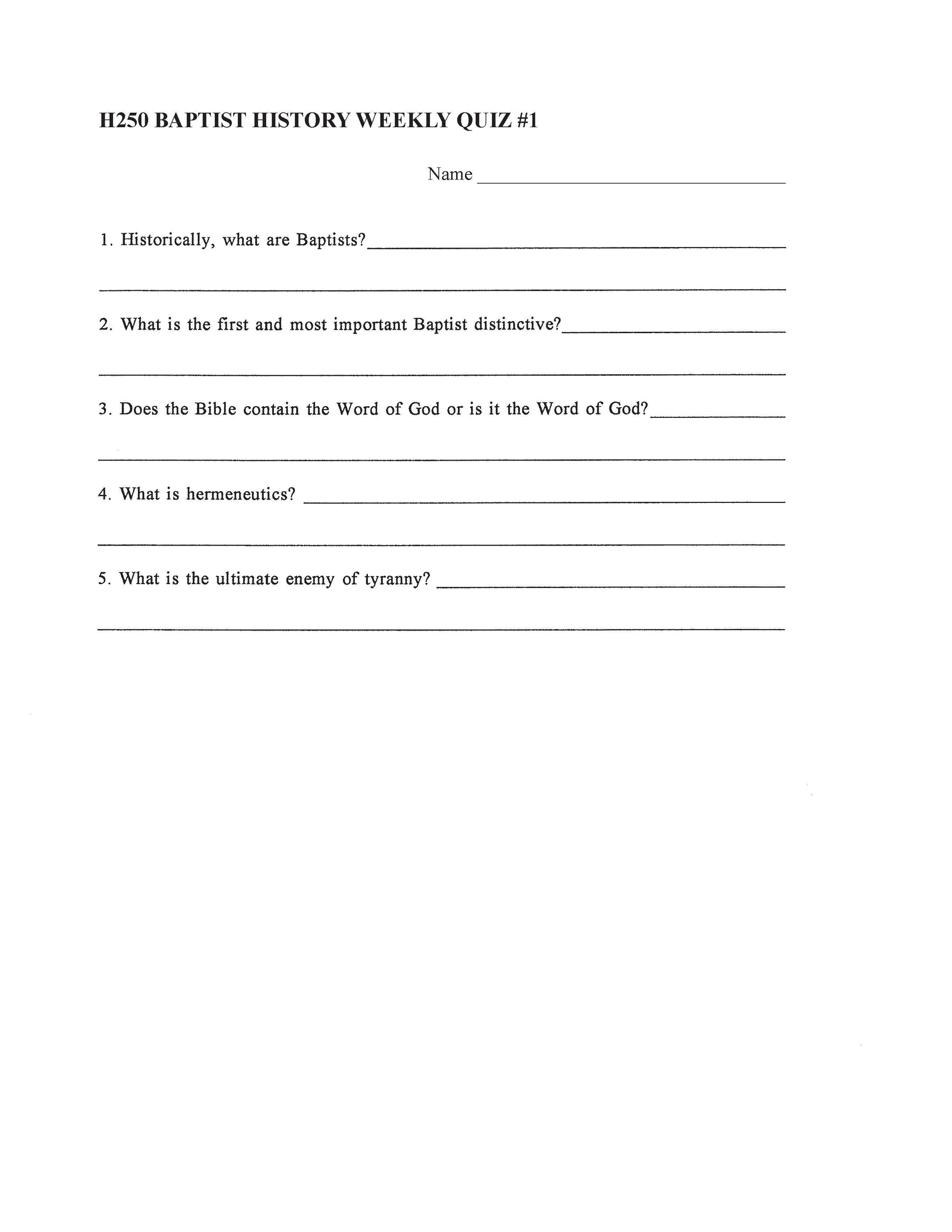 History Elective - Baptist History