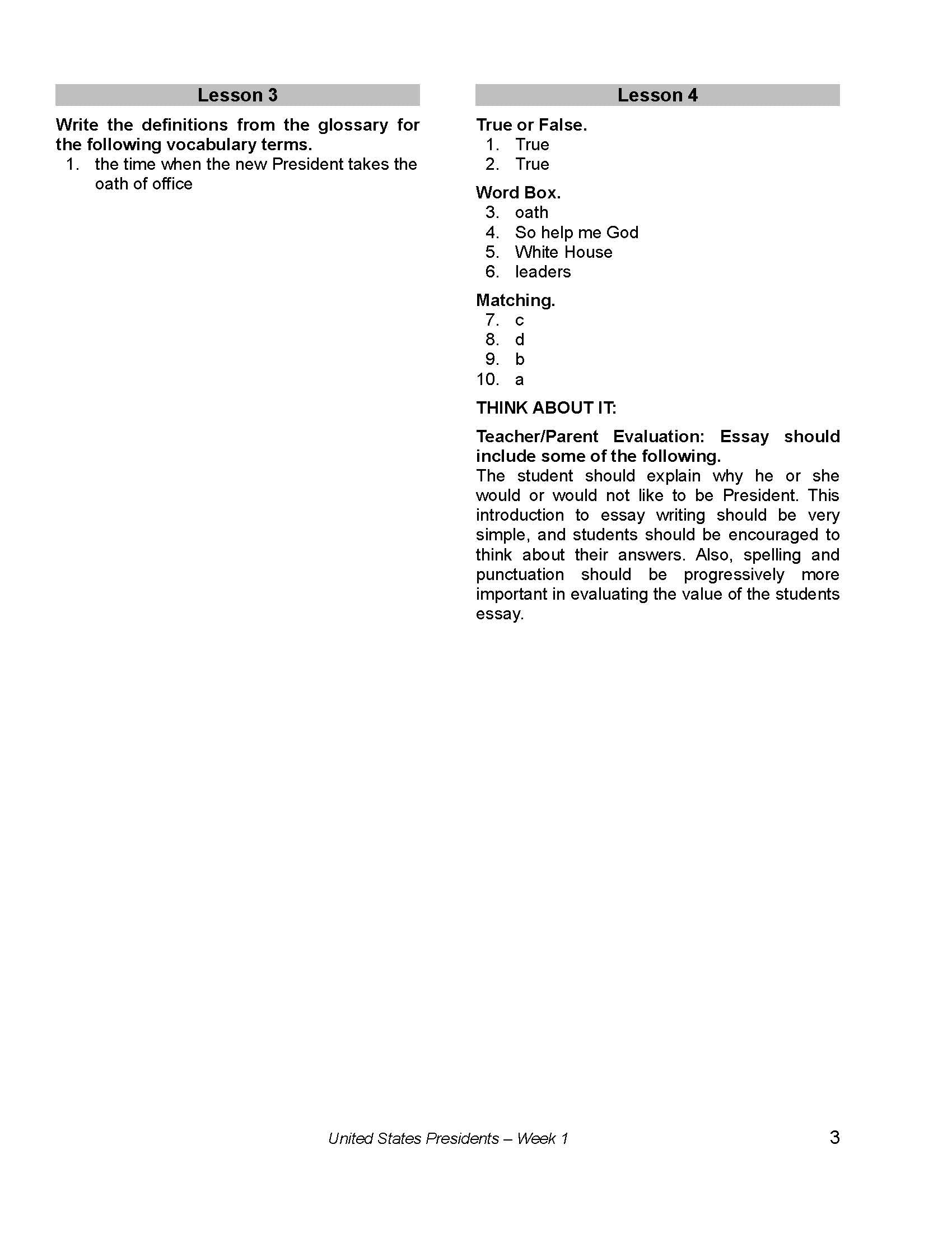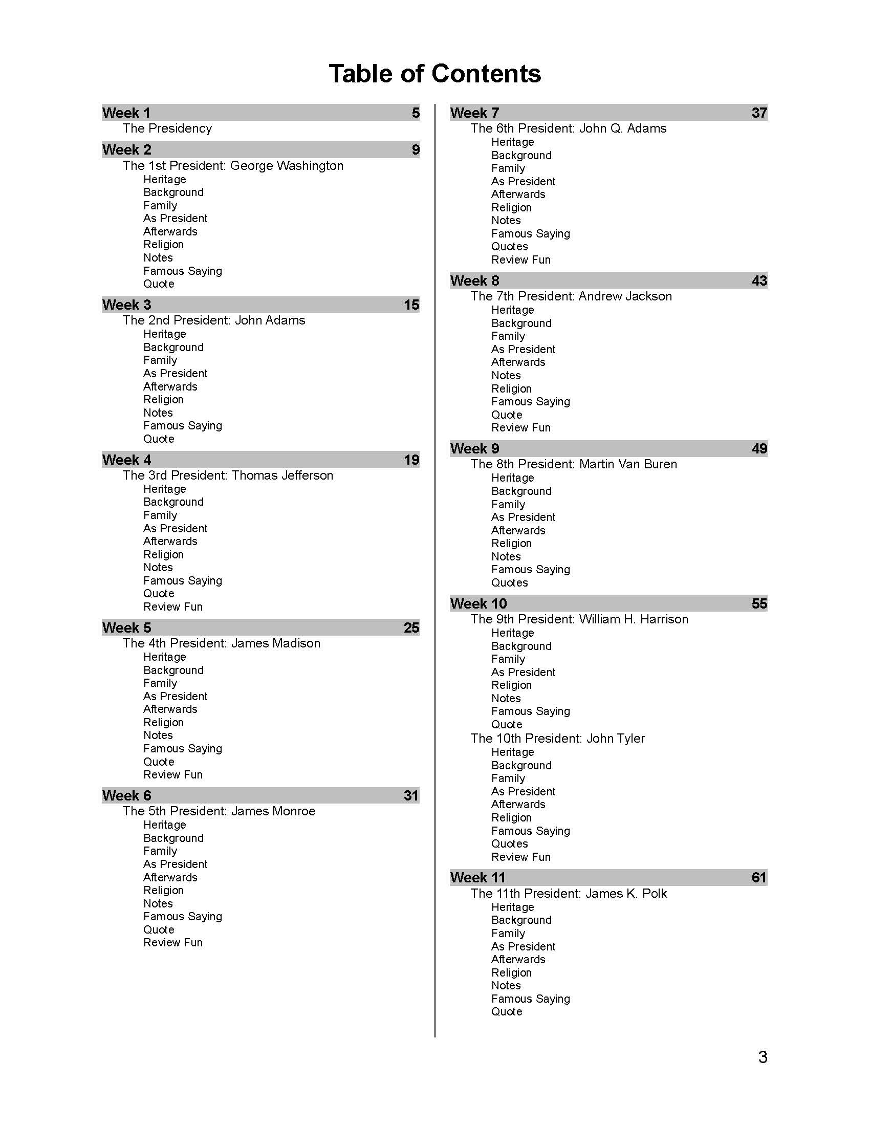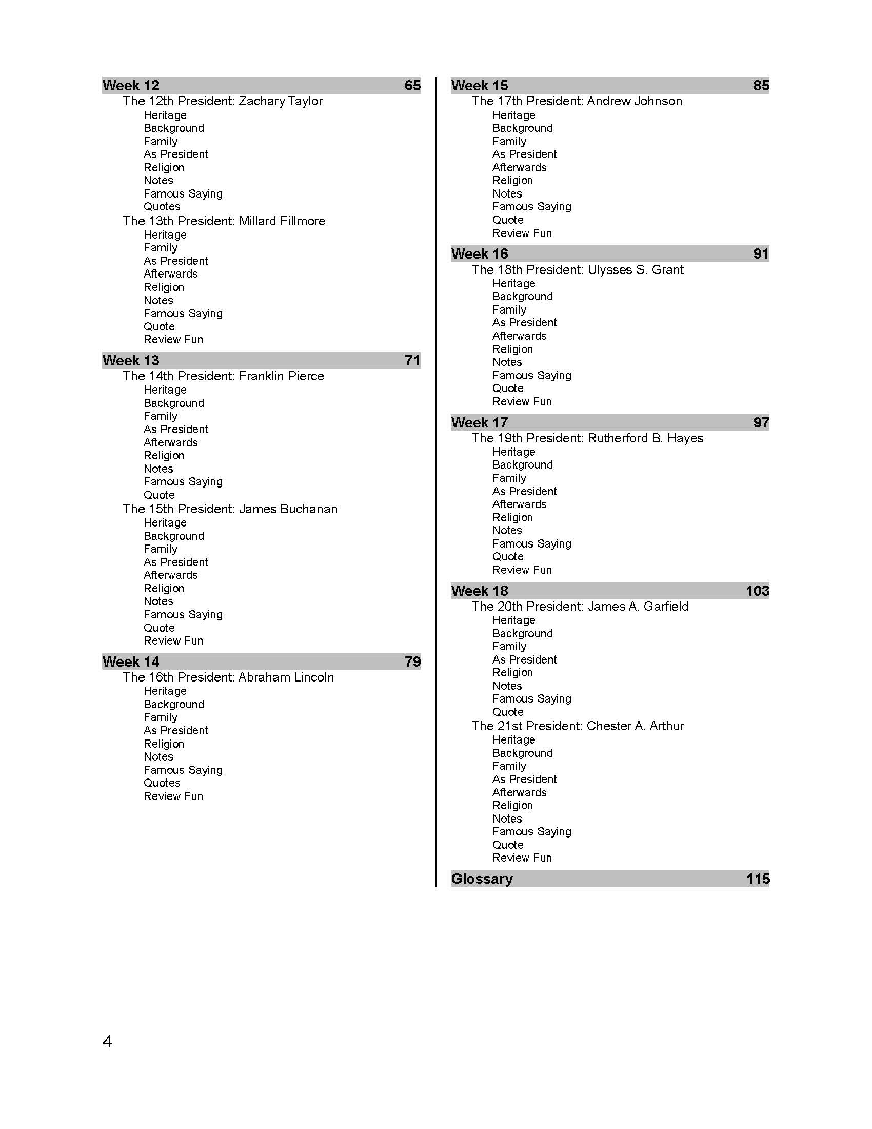 Every entry about every President includes biographical information, such as birth date, date of death, and period served as President. Also included are sections about each President’s heritage background, and family, as well as accomplishments and significant items as President and afterwords. Each President’s religion is discussed and special interesting notes are given. Each complete subject set includes everything you need for one student for one year. Because the set is complete, you are assured that Study Guides, Study Guide Answers, Test and Quizzes, and Test and Quiz Answers are included and are the latest edition available.