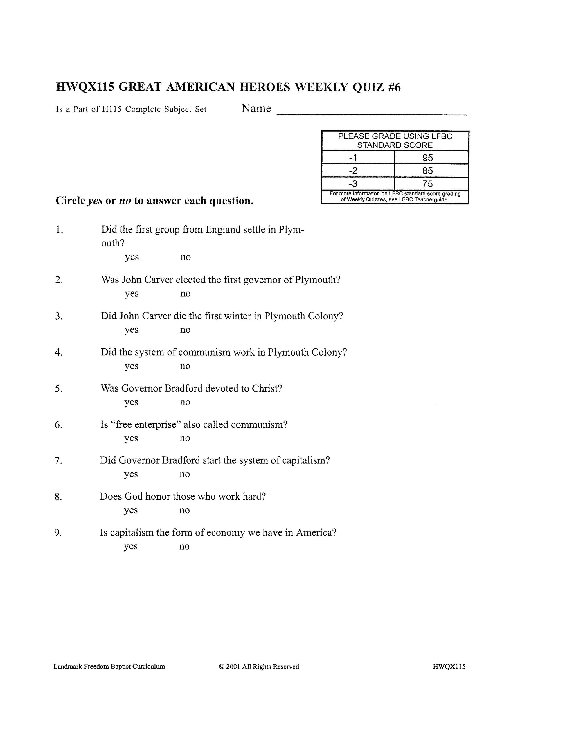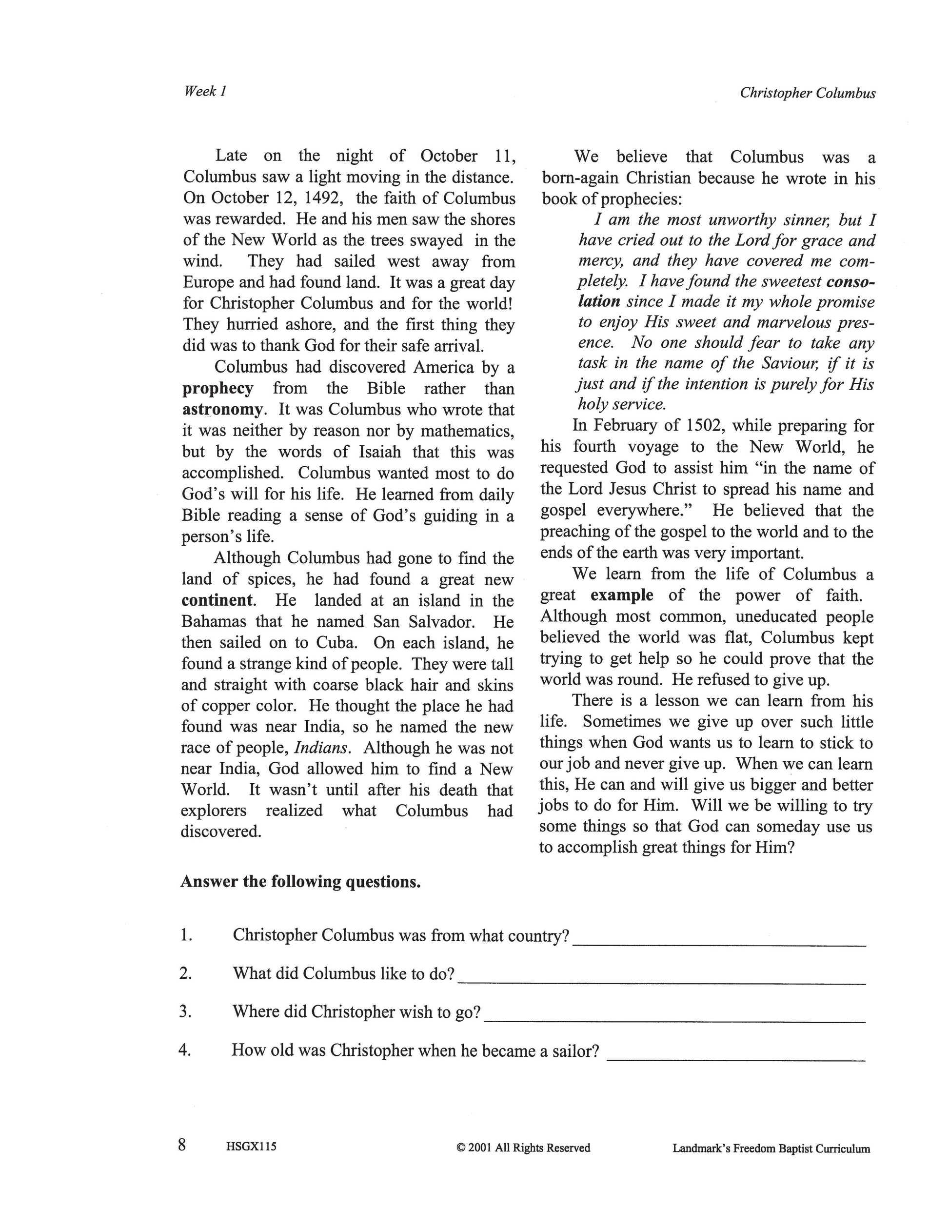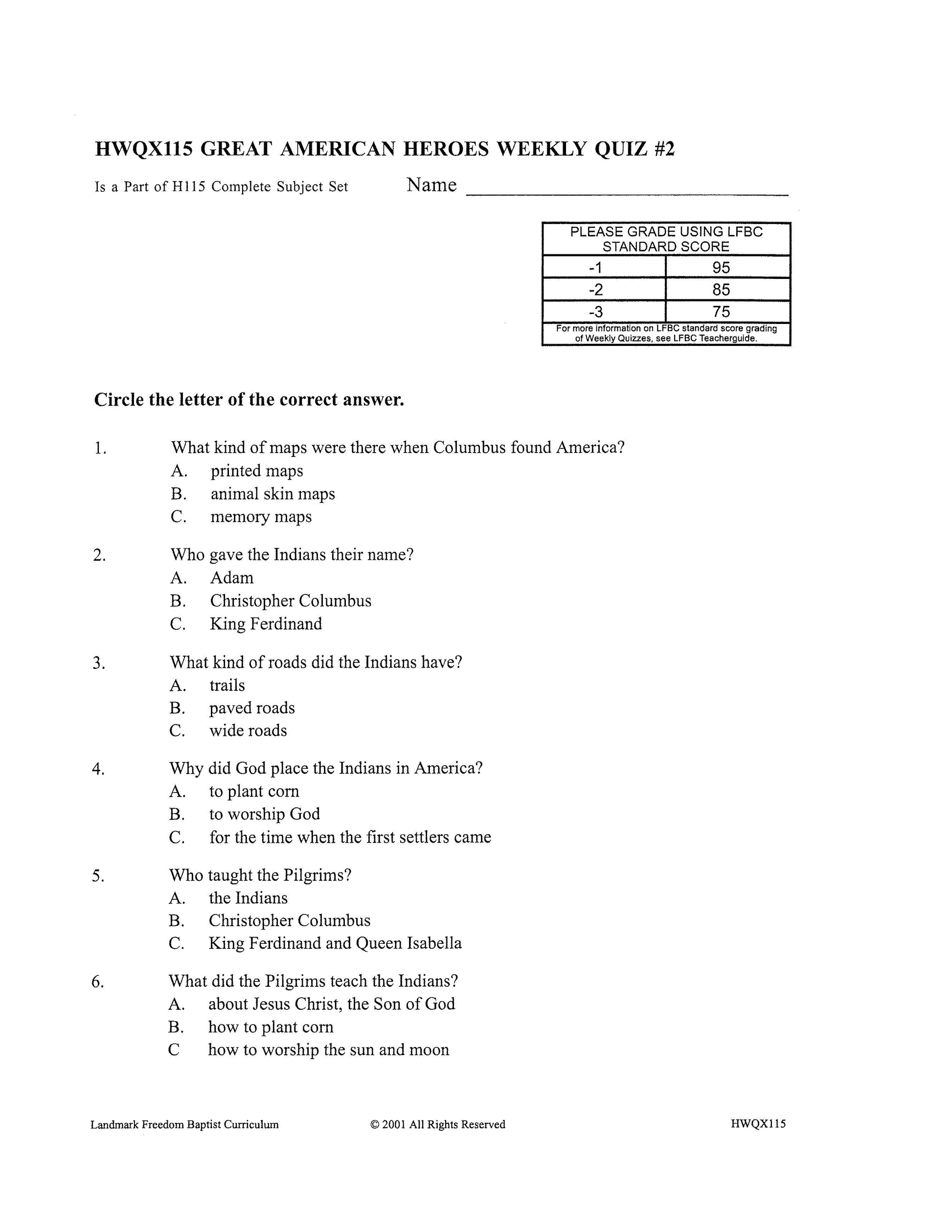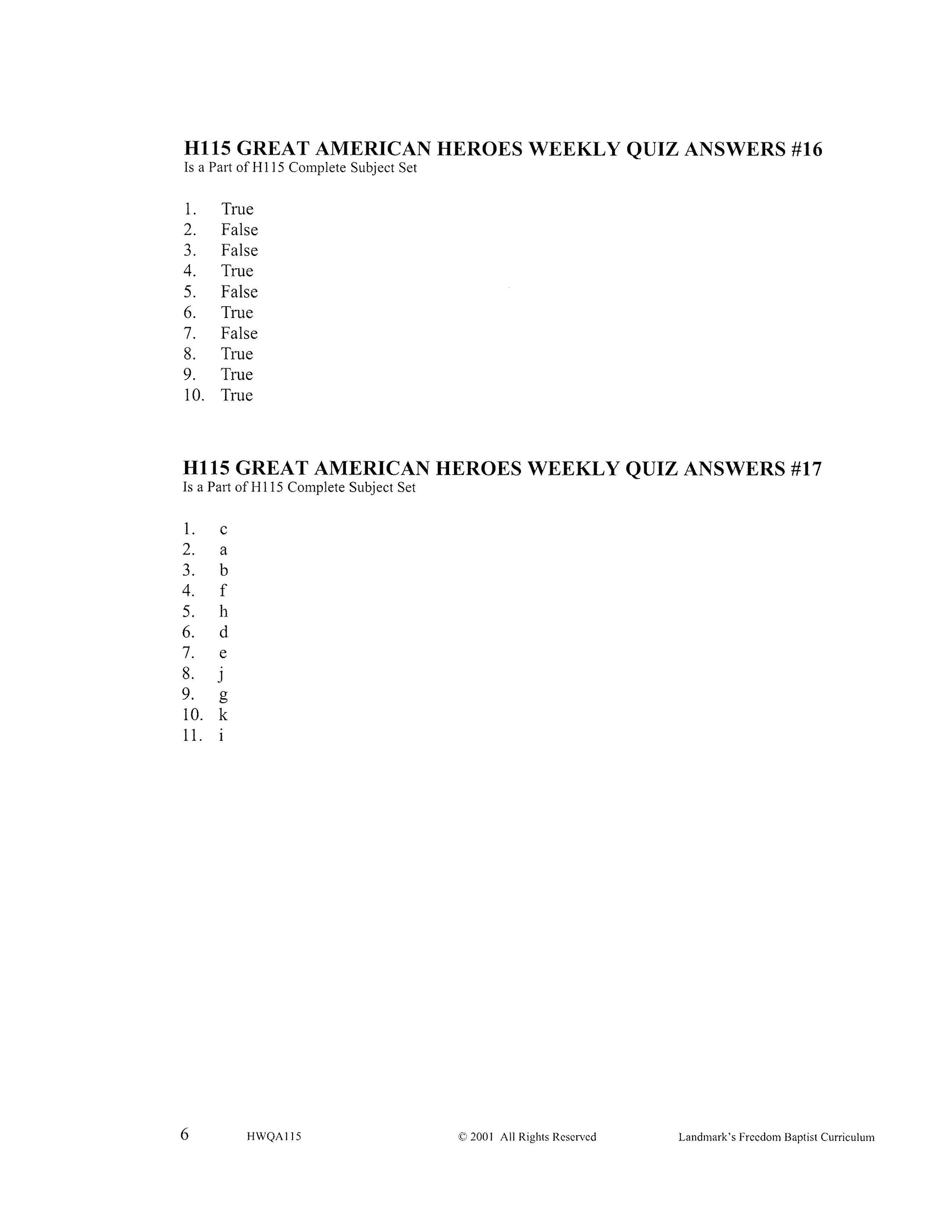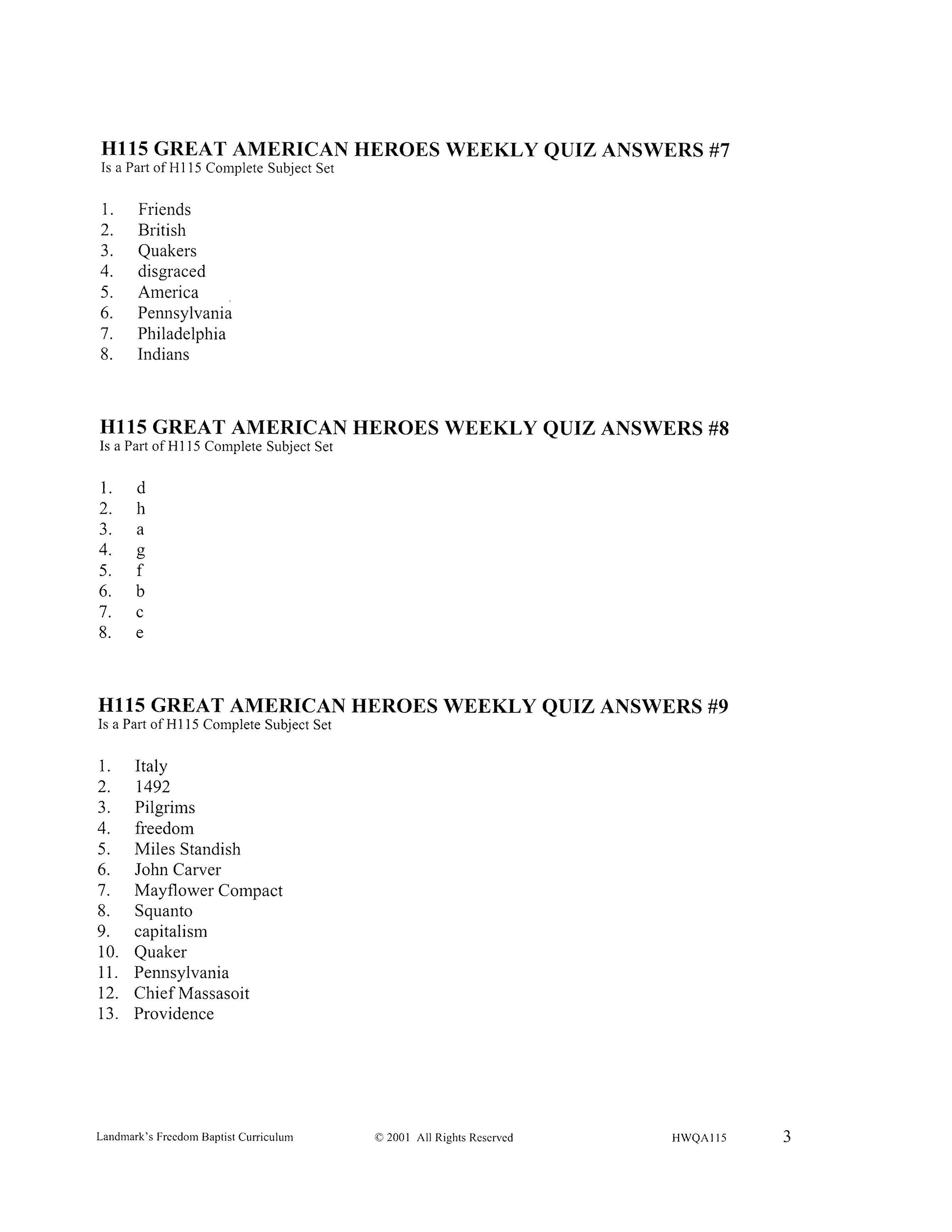 This text gives the students the right kind of heroes and valuable models of good character to follow, beginning with Christopher Columbus and continuing through the days of the great evangelist, Billy Sunday. Each week begins with vocabulary, and contains Bible memorization appropriate to the subject discussed in the text. Each complete subject set includes everything you need for one student for one year. Because the set is complete, you are assured that Study Guides, Study Guide Answers, Test and Quizzes, and Test and Quiz Answers are included and are the latest edition available.
