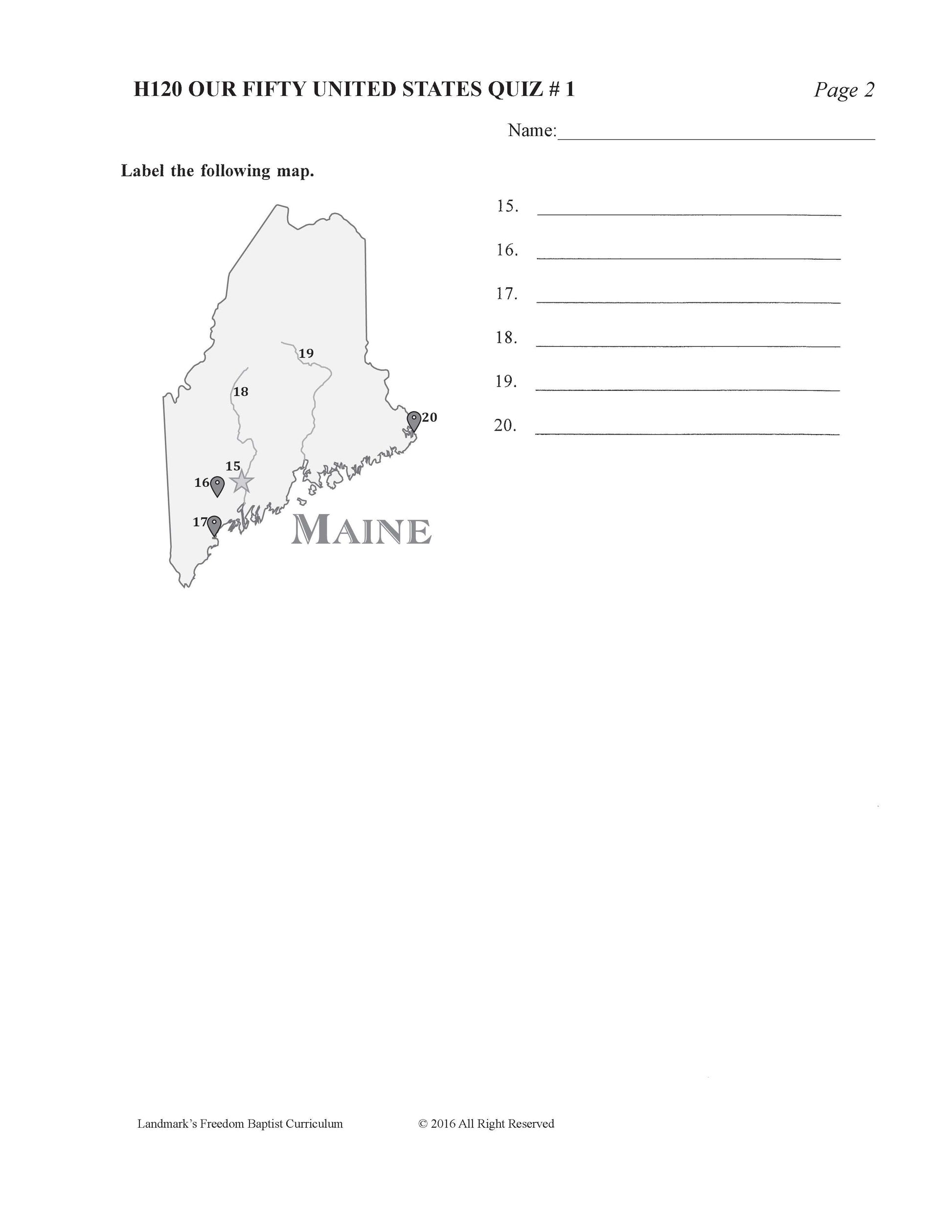 This study of Our Fifty States begins with the state of Maine and continues through to Hawaii. Each week involves map activities with the student learning to identify and label major geographical points on the maps. During the last three weeks of the year, the student will complete an outlined project on his/her own home state. This research project will expand upon the important historical and geographical material studied throughout the year. Each complete subject set includes everything you need for one student for one year. Because the set is complete, you are assured that Study Guides, Study Guide Answers, Test and Quizzes, and Test and Quiz Answers are included and are the latest edition available.