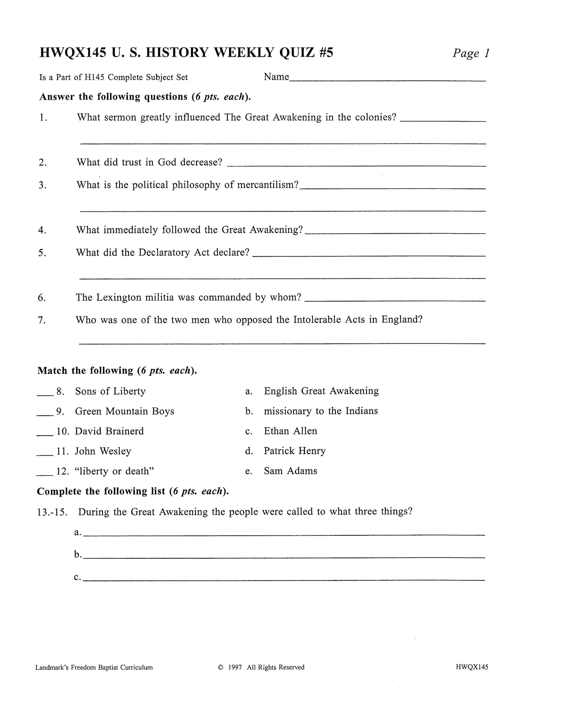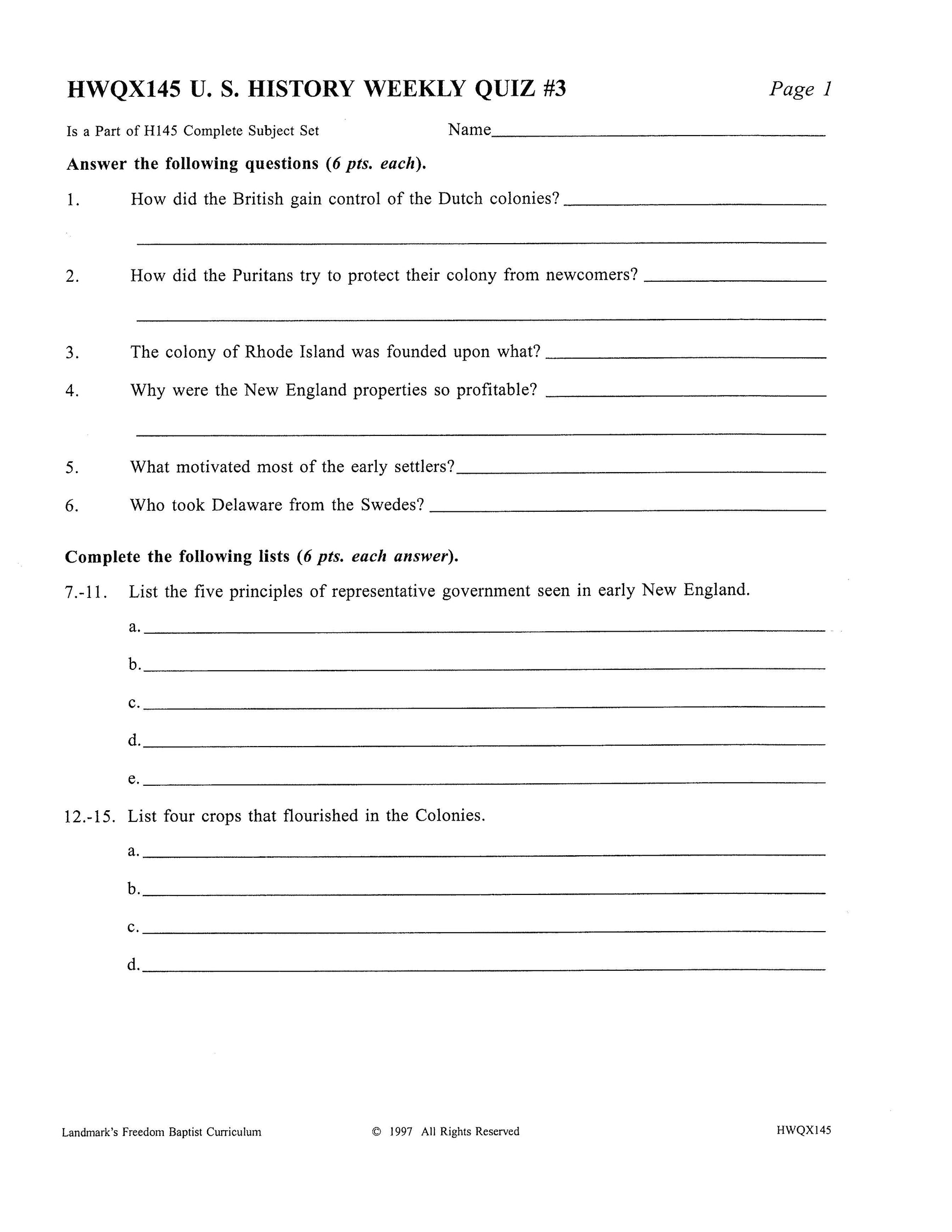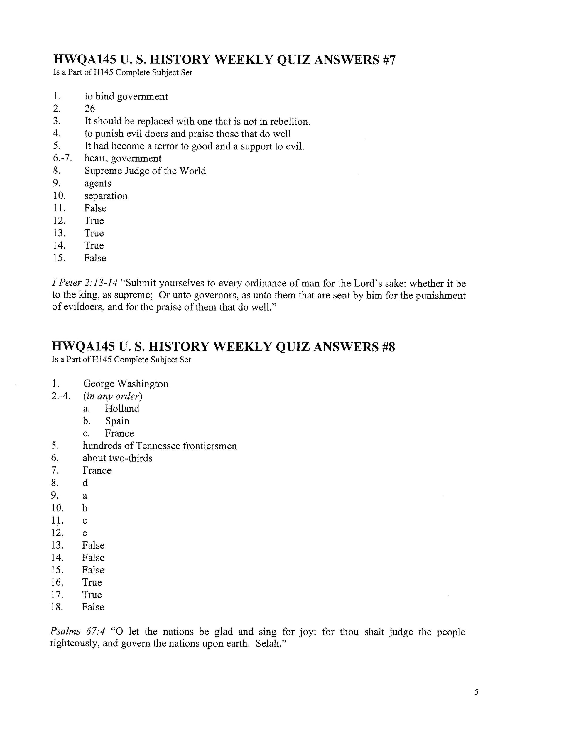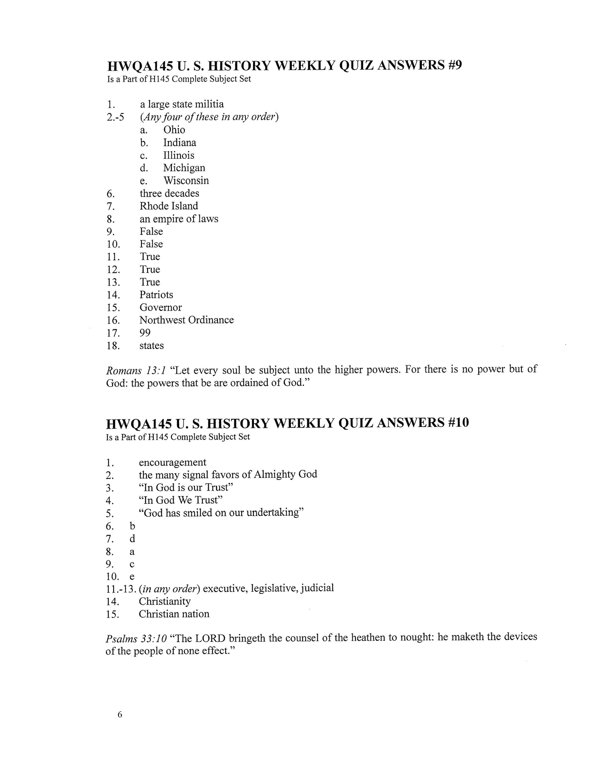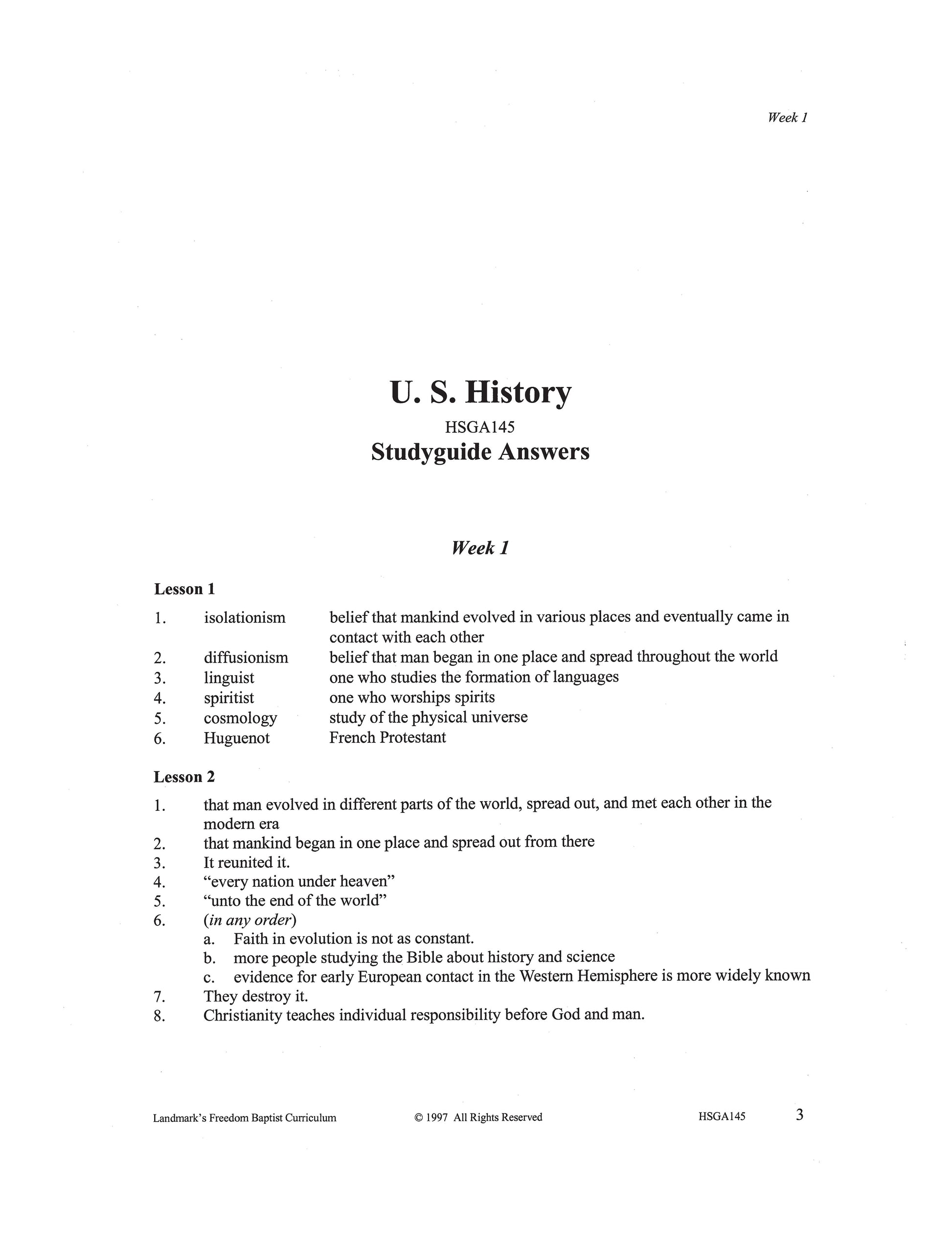 This course covers American history from exploration to the current culture war. Lessons are covered from a Biblical viewpoint and include vocabulary, memorization, and essay. Each complete subject set includes everything you need for one student for one year. Because the set is complete, you are assured that Study Guides, Study Guide Answers, Test and Quizzes, and Test and Quiz Answers are included and are the latest edition available.