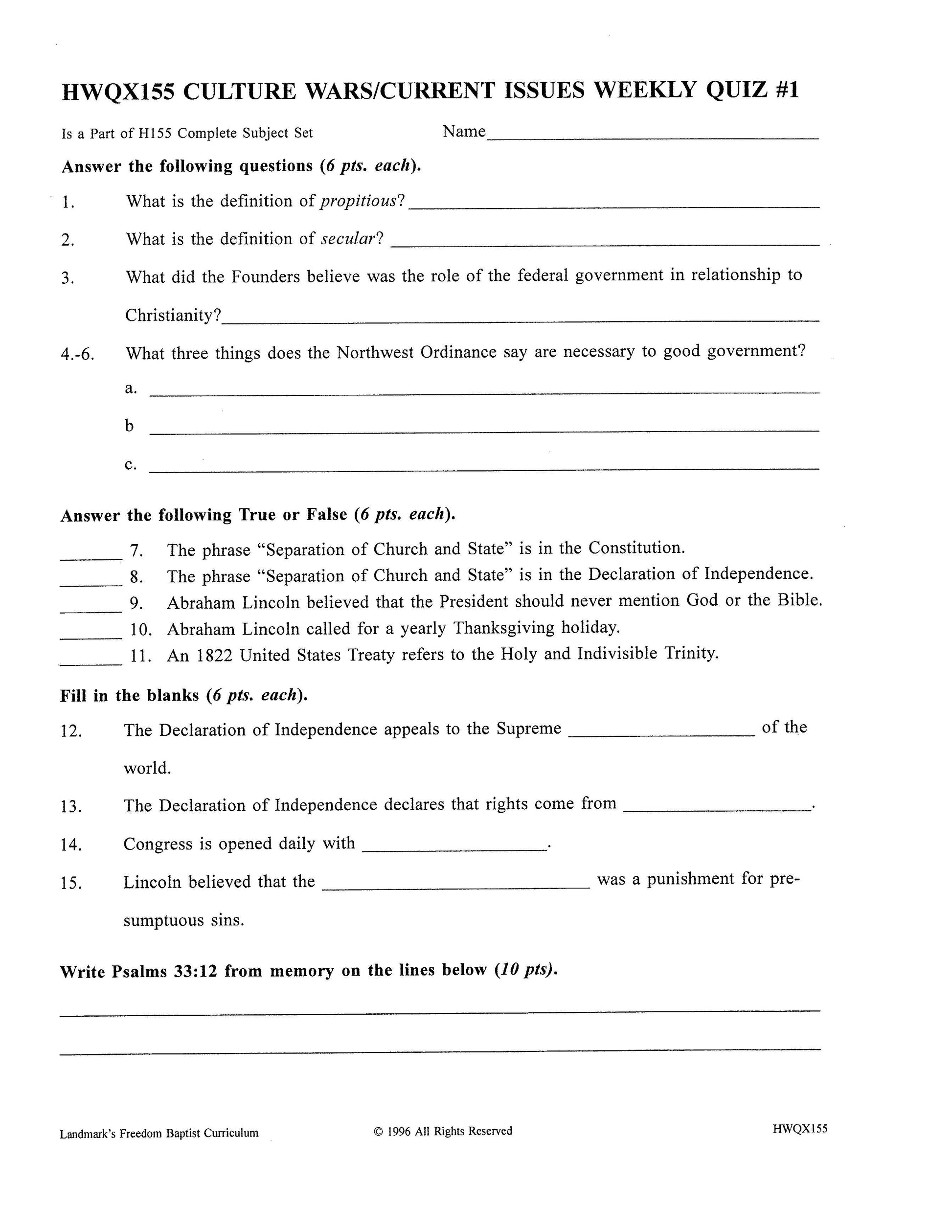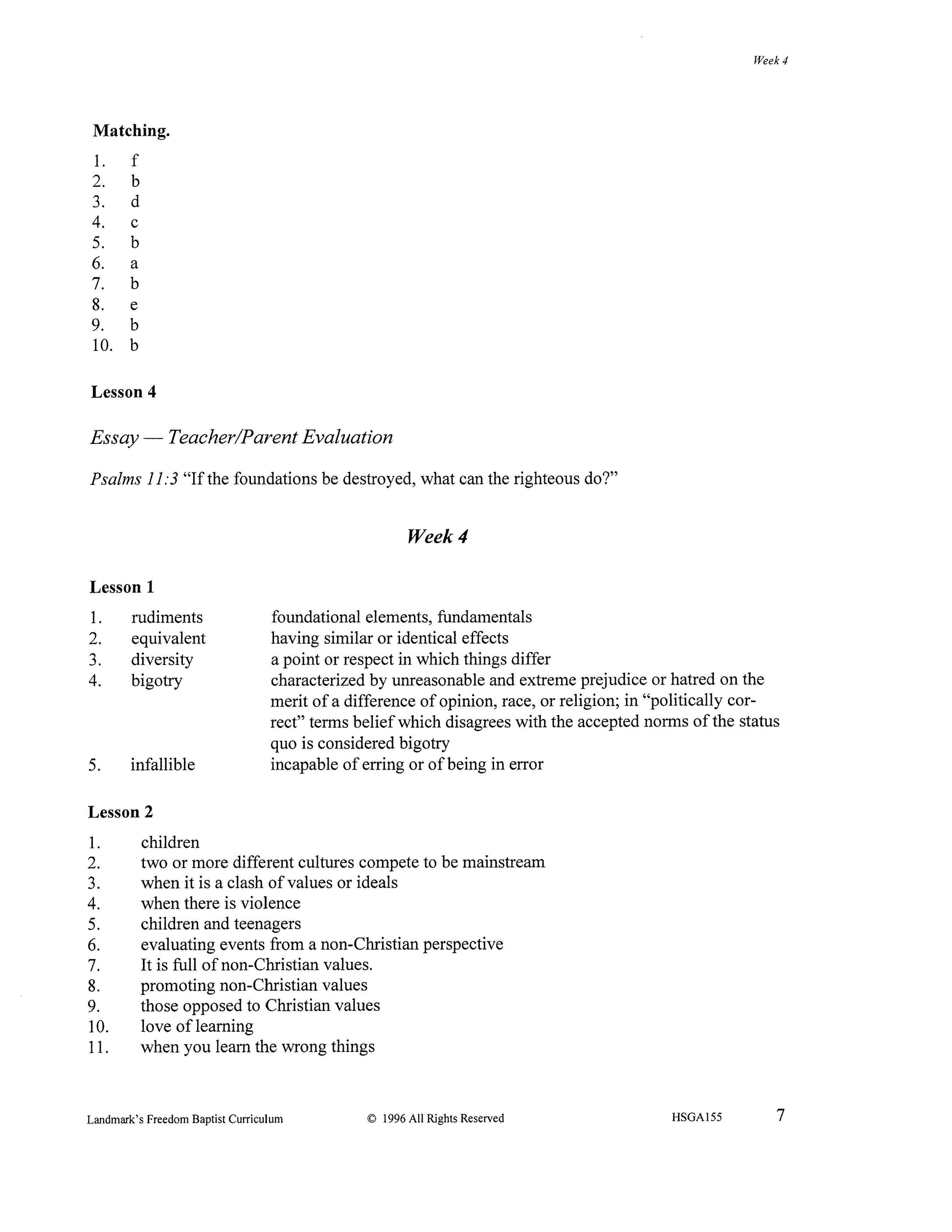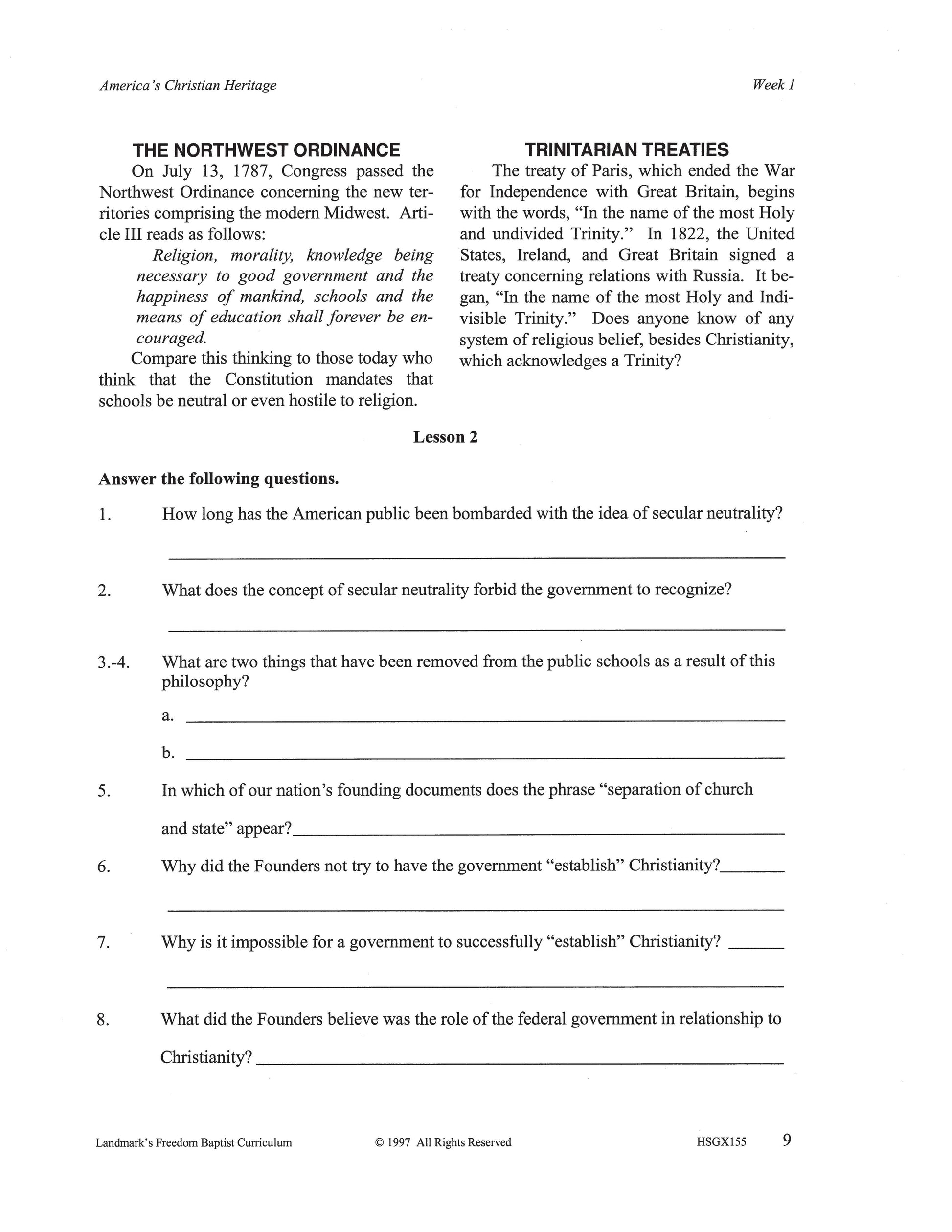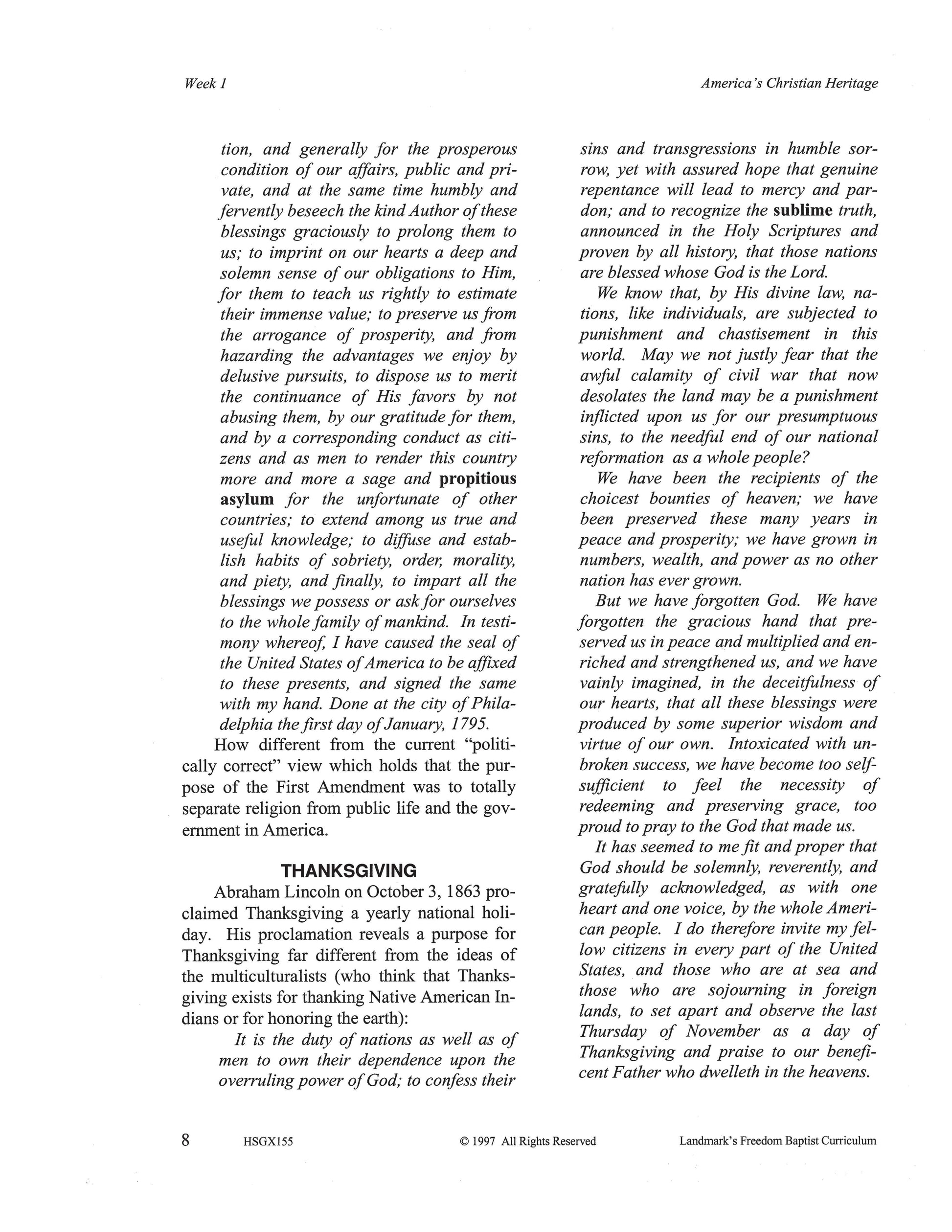 Landmark's Freedom Baptist Curriculum
