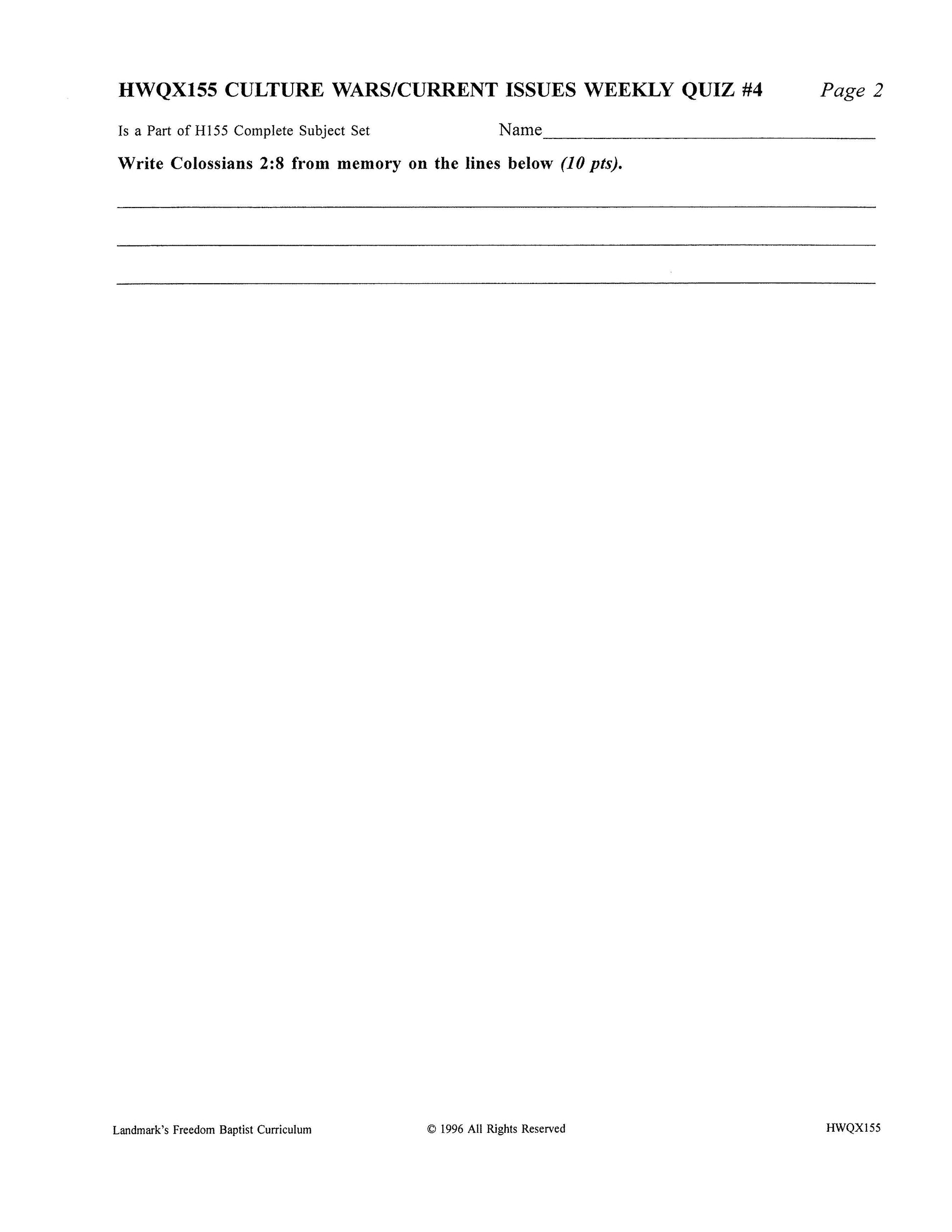 In this course, the author Dr. Phil Stringer exposes the truth about America’s movement away from the principles of Biblical Christianity upon which it was founded to the relativistic thinking of secular humanism. The Culture War in modern America is no accident, but a carefully orchestrated attack of Satan against the church, against individual Christians, against our Constitution, and against our religious liberties. Each week contains Bible memorization and thought questions, essays, and /or reports. Each complete subject set includes everything you need for one student for one year. Because the set is complete, you are assured that Study Guides, Study Guide Answers, Test and Quizzes, and Test and Quiz Answers are included and are the latest edition available.