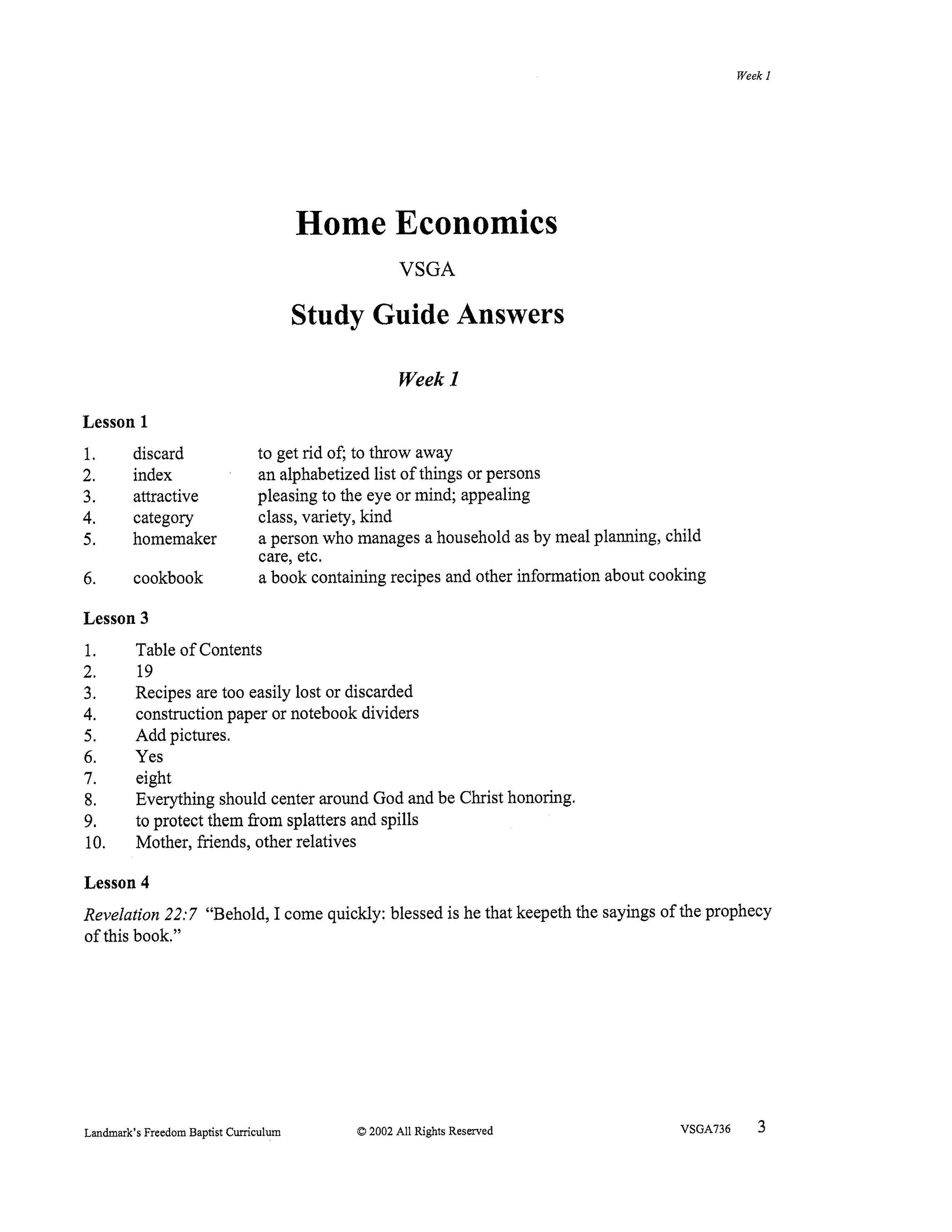 The Home Economics course sets forth the thought that everything in the home should center on God and should be Christ-honoring. The course teaches the young lady how to become a competent homemaker, including lessons on cooking, sewing, child care, first aid, and many other practical areas of the home. This is a full credit course. Each complete subject set includes everything you need for one student for one year. Because the set is complete, you are assured that Study Guides, Study Guide Answers, Test and Quizzes, and Test and Quiz Answers are included and are the latest edition available.