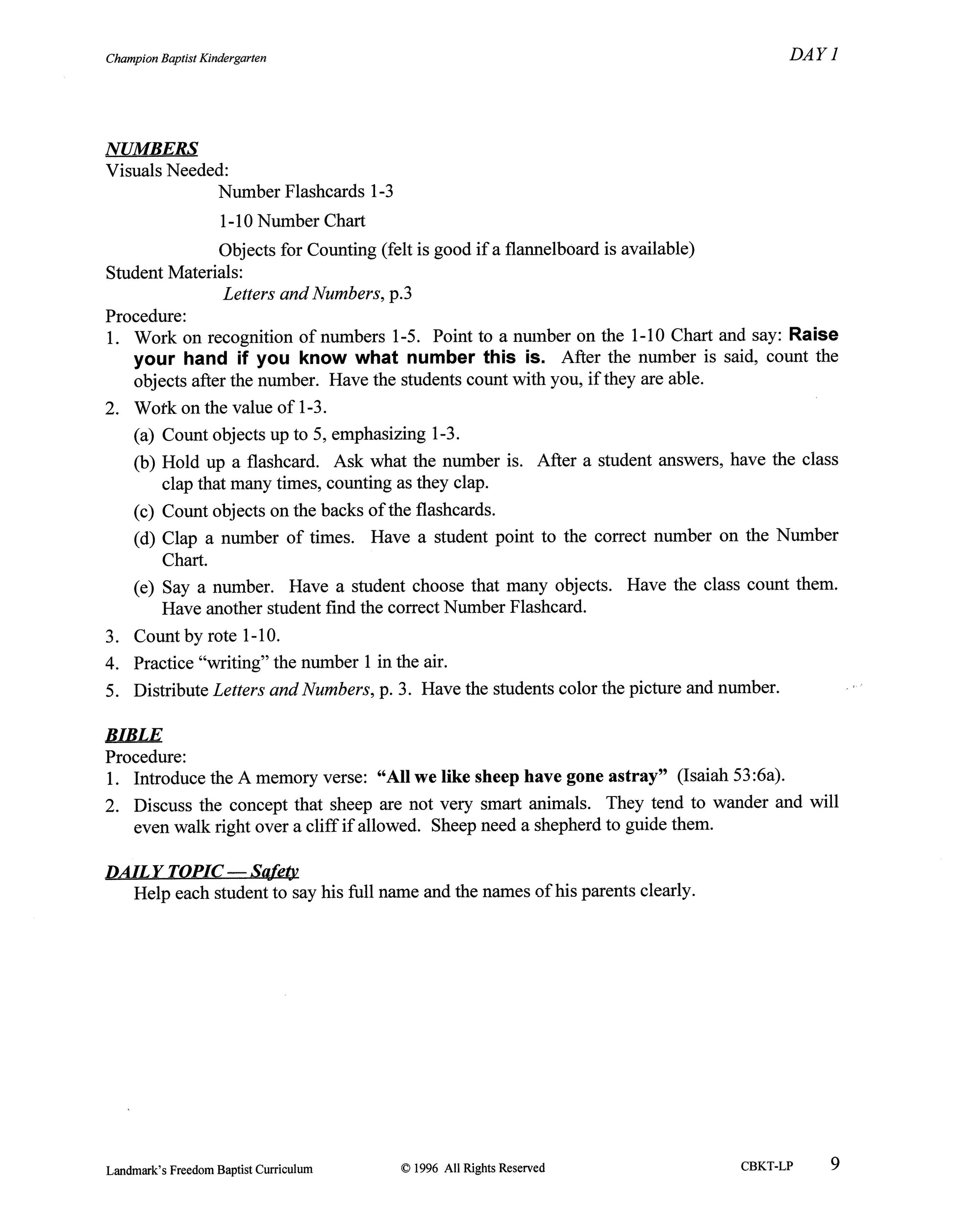 K5 Champion Baptist Kindergarten Teacher's Kit
