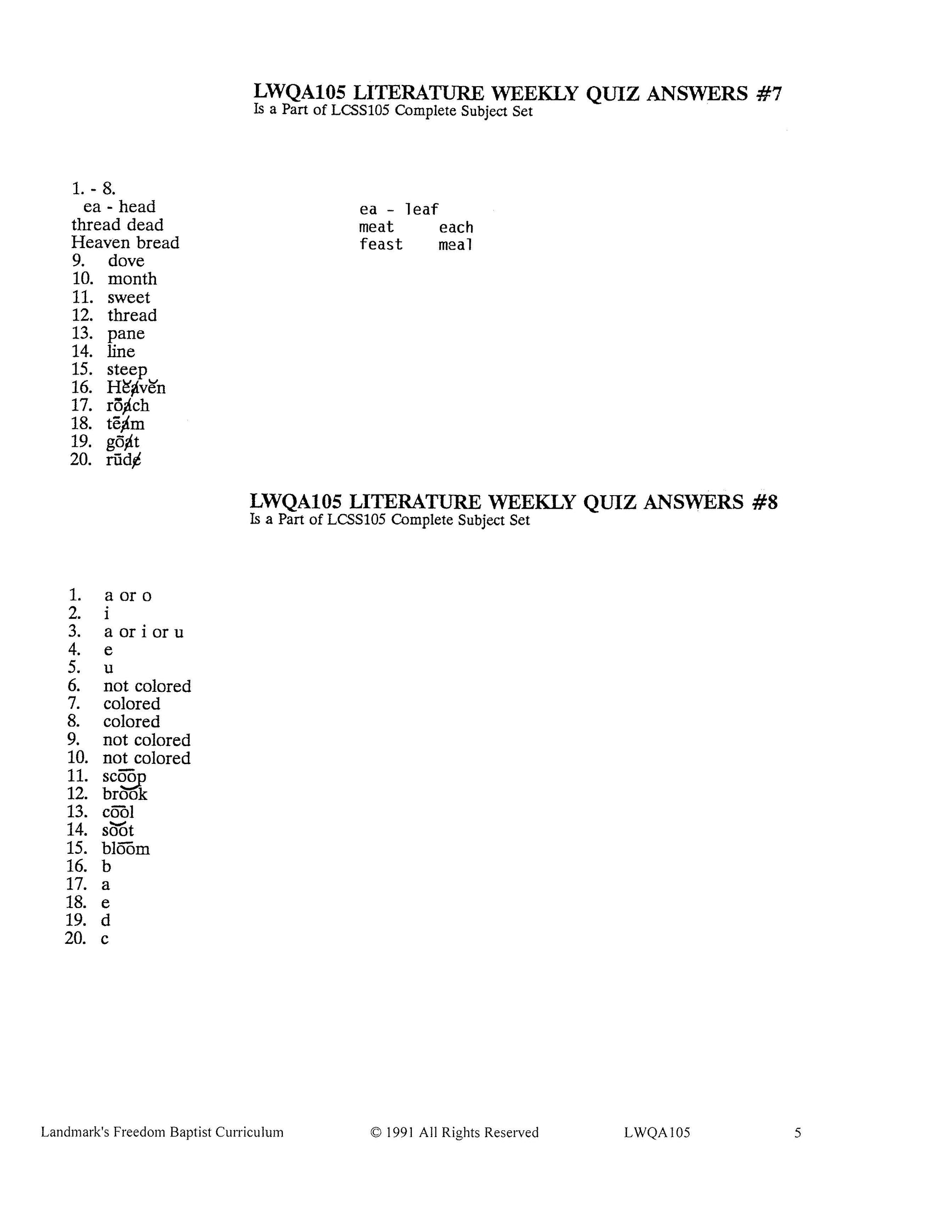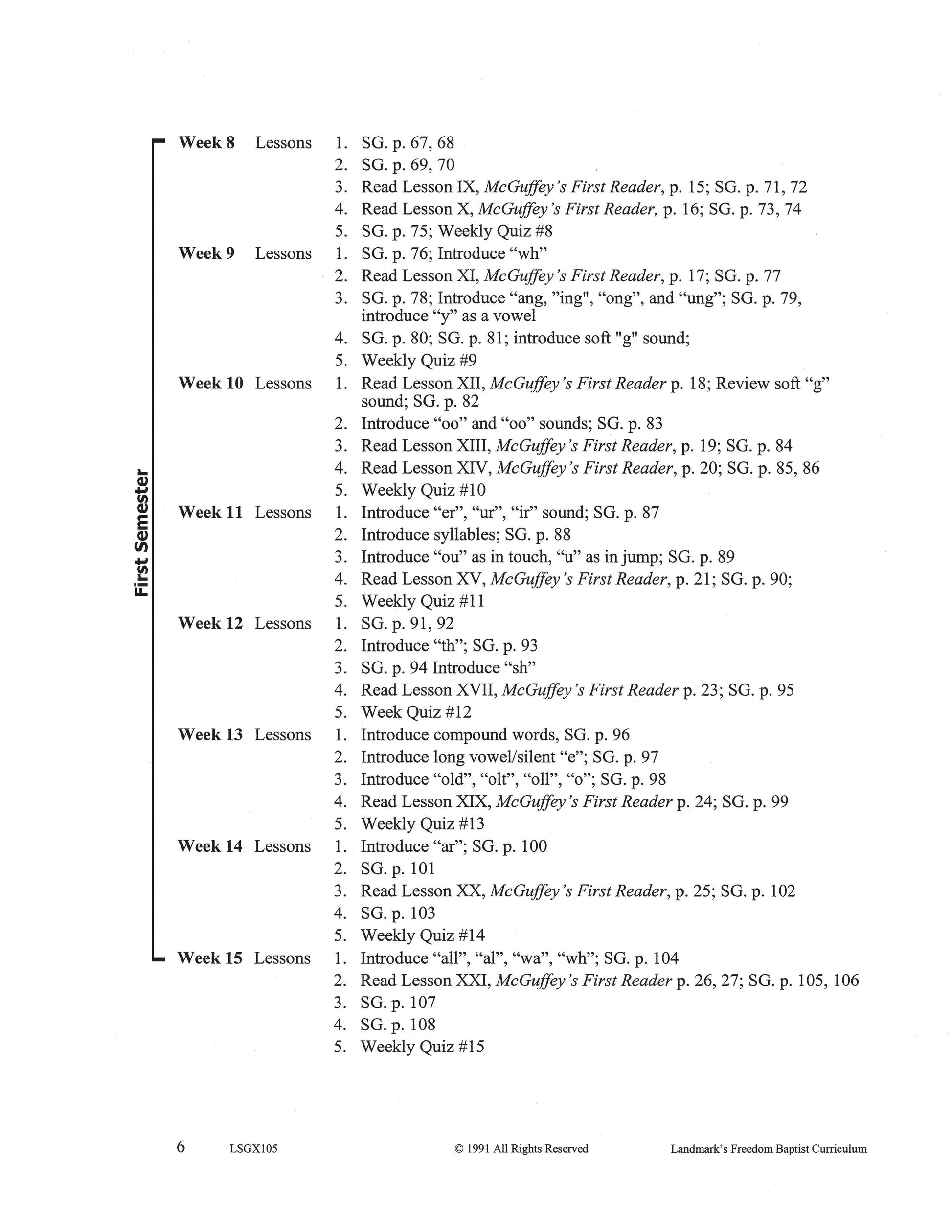 Review of vowels, consonants, blends, one-and two-vowel words; recognition and use of all phonics special sounds are included in this beginning Literature course. McGuffey’s First Eclectic Reader is used for reading comprehension and oral reading and is included in the pack. Each complete subject set includes everything you need for one student for one year. Because the set is complete, you are assured that Study Guides, Study Guide Answers, Test and Quizzes, and Test and Quiz Answers are included and are the latest edition available.