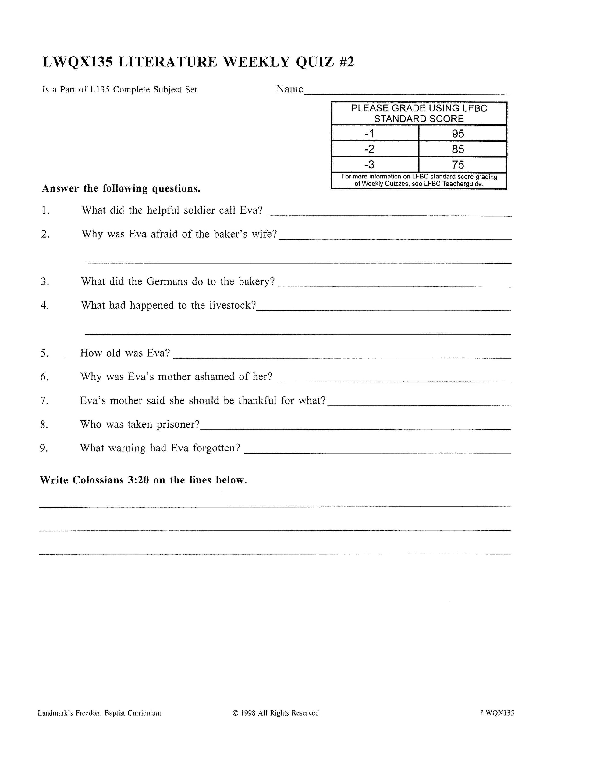 Many of the selections have historical significance, embodying information of immediate usefulness or serving as stepping stones for future history study. Other selections illuminate certain phases of living or enlarge the sympathies toward other ways of living. Still others introduce the reader to characters who are eminently worth meeting. These selections are not all necessarily Christian in their philosophy, but the impact they make is positive, and many of them reflect or apply Christian principles. Each week contains vocabulary words; comprehension activities, and Bible memorization of a verse pertinent to the moral or practical lesson presented in the reading selection. Each complete subject set includes everything you need for one student for one year. Because the set is complete, you are assured that Study Guides, Study Guide Answers, Test and Quizzes, and Test and Quiz Answers are included and are the latest edition available.