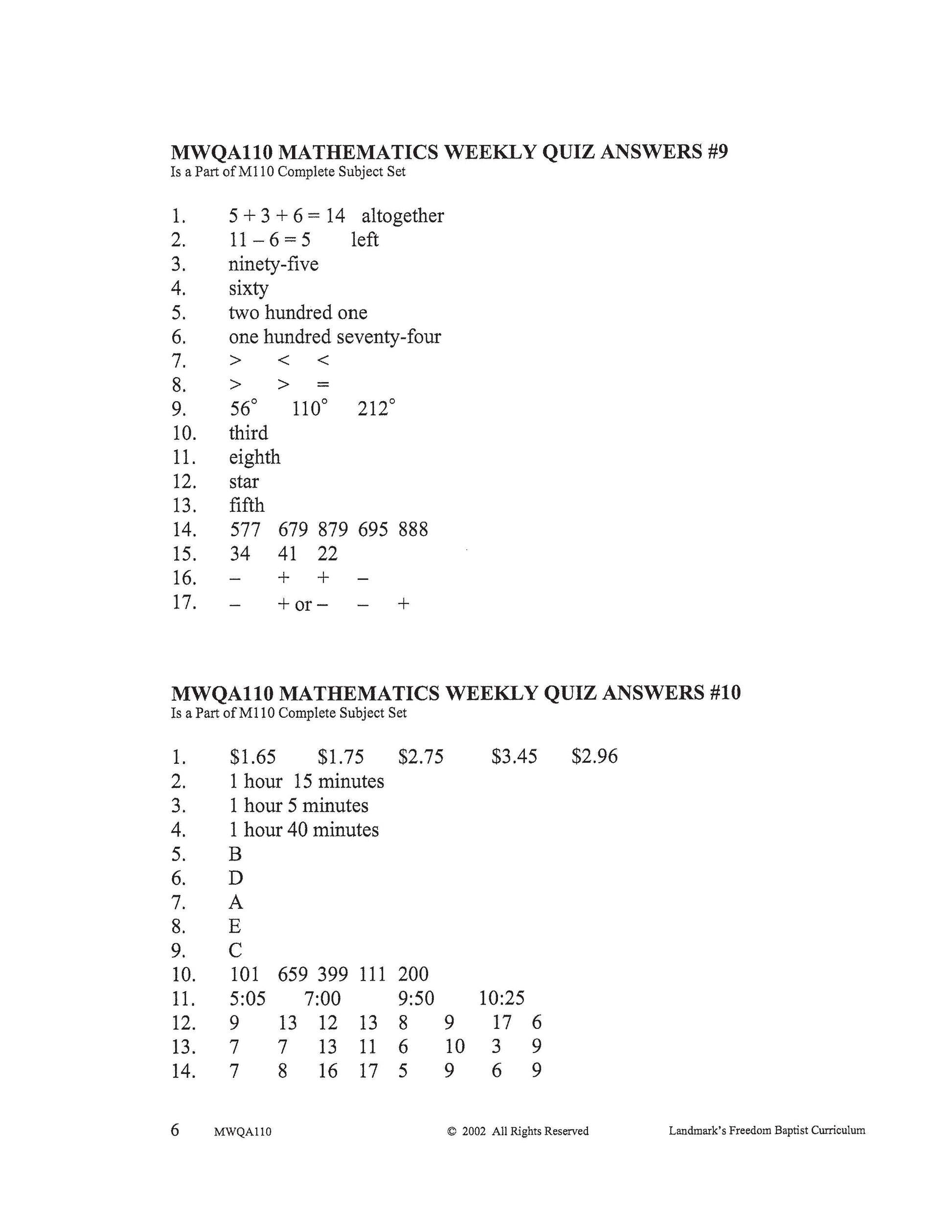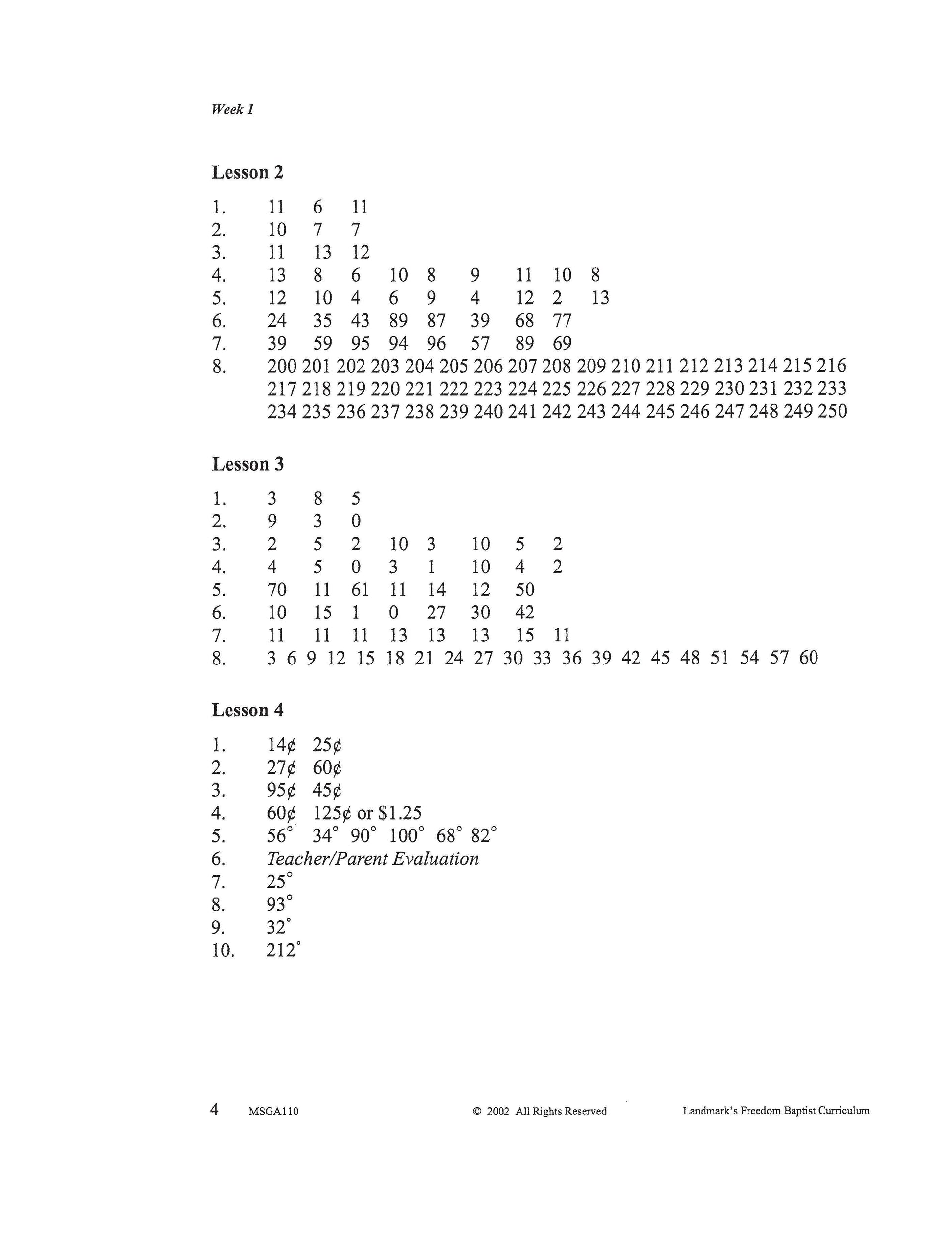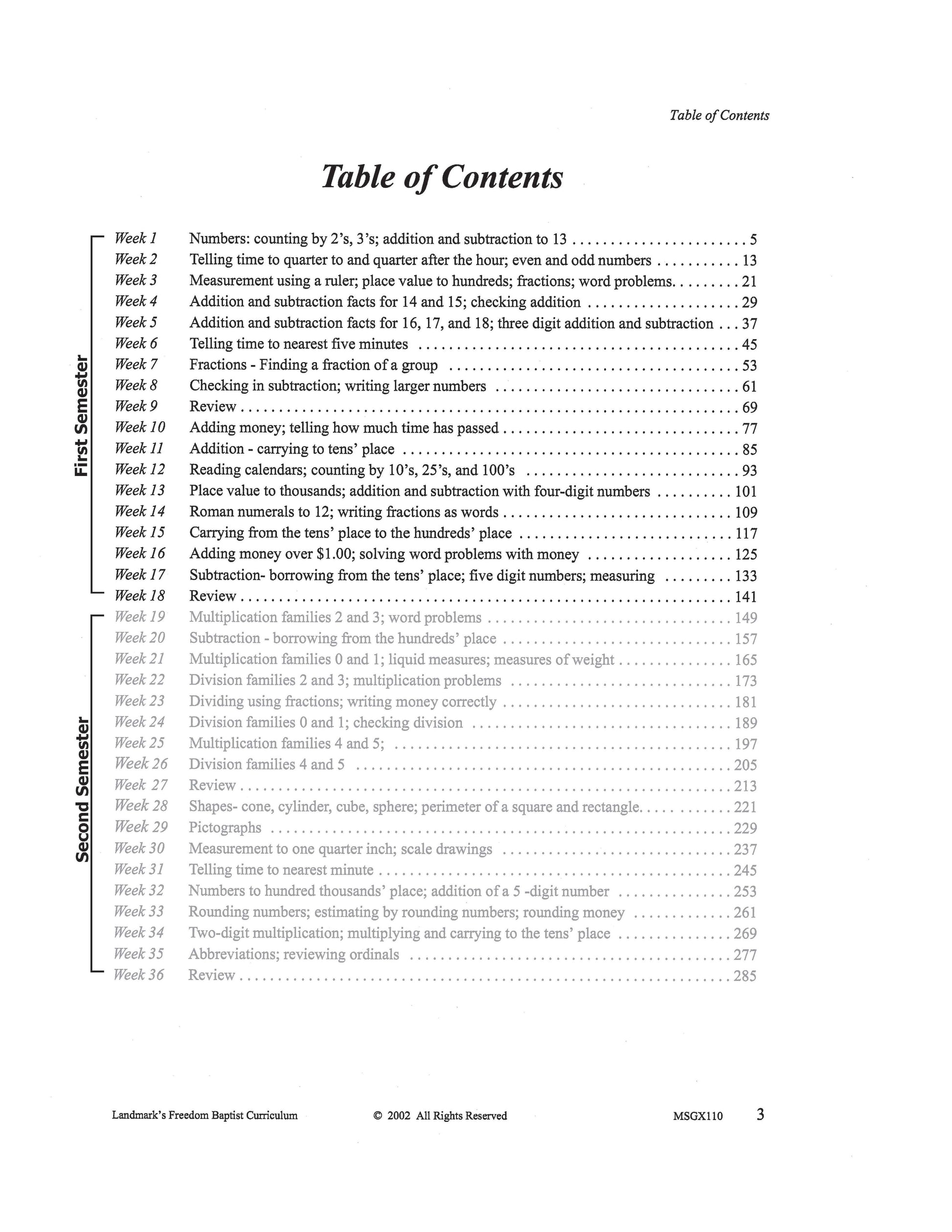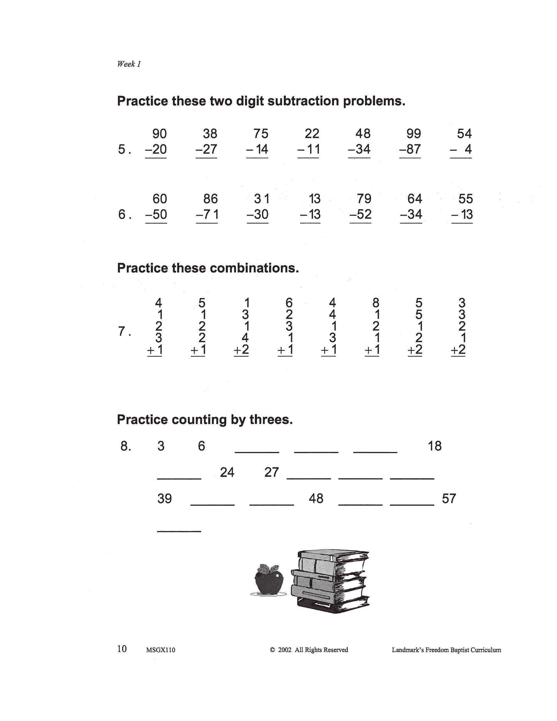 Number recognition, counting, and writing to hundred thousands and beyond; addition and subtraction facts through 18; adding and subtracting two-digit numbers; multiplication and division facts to 5; measurement to one-quarter inch; scale drawings; addition with carrying to tens’ place and hundreds’ place; subtraction with borrowing from the tens’ place; multiplying and carrying to the tens’ place; solving money problems; telling time to the minute; fractions: finding a fraction of a group; and story problems. Each complete subject set includes everything you need for one student for one year. Because the set is complete, you are assured that Study Guides, Study Guide Answers, Test and Quizzes, and Test and Quiz Answers are included and are the latest edition available.