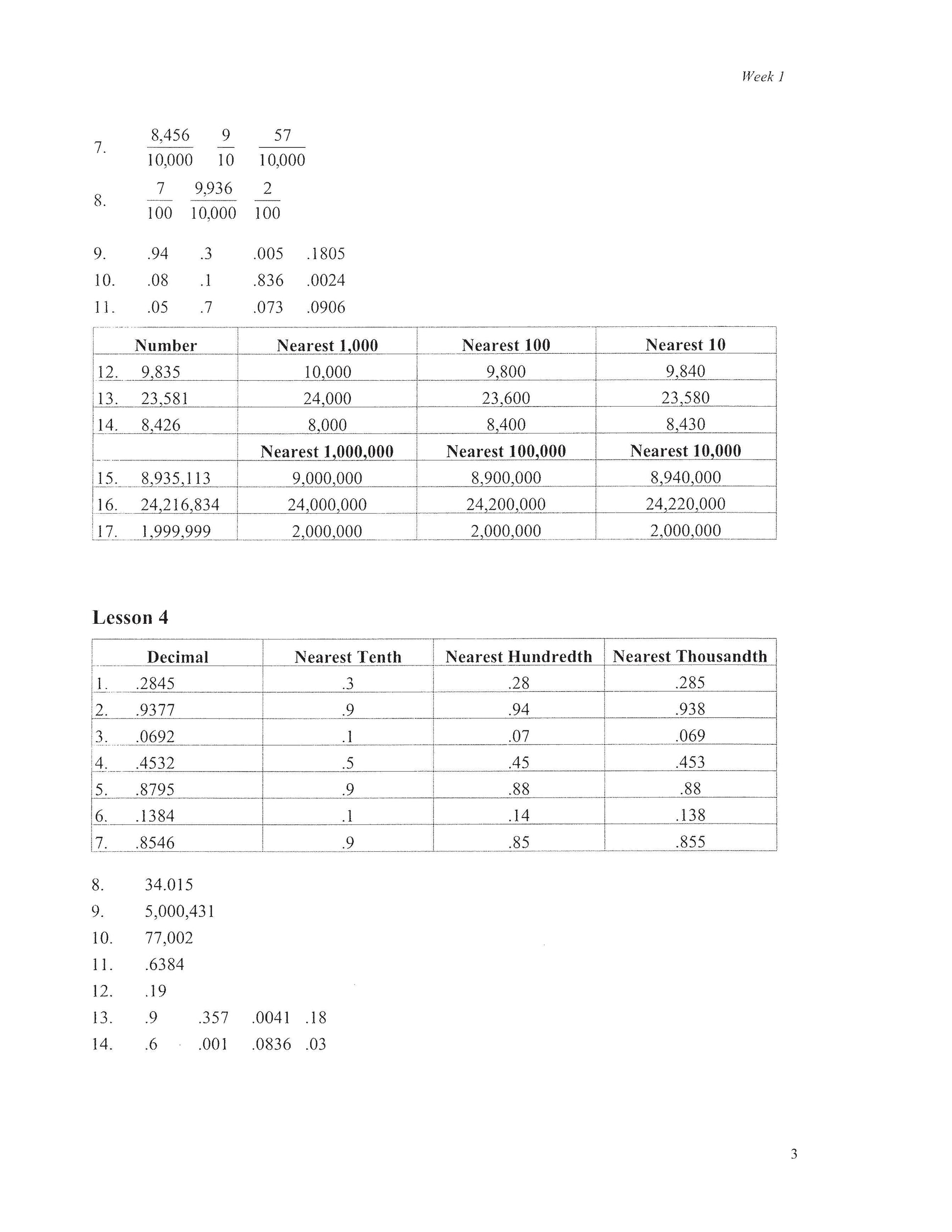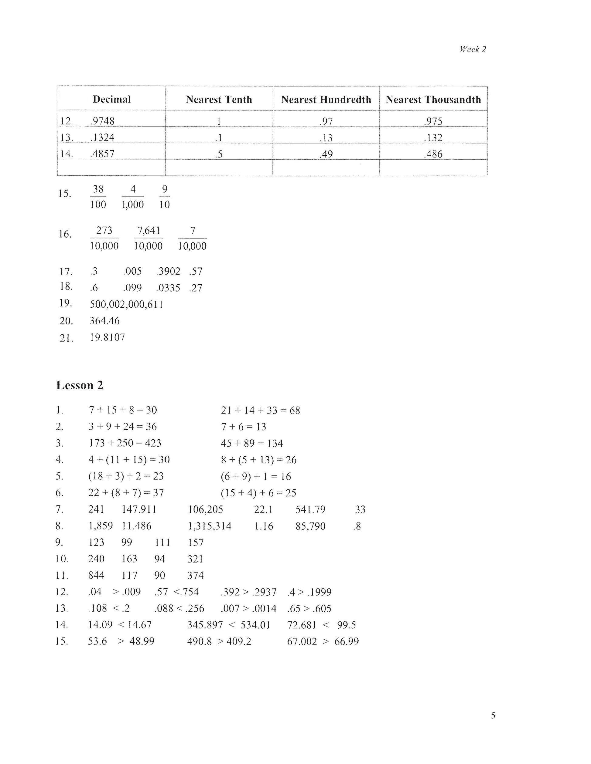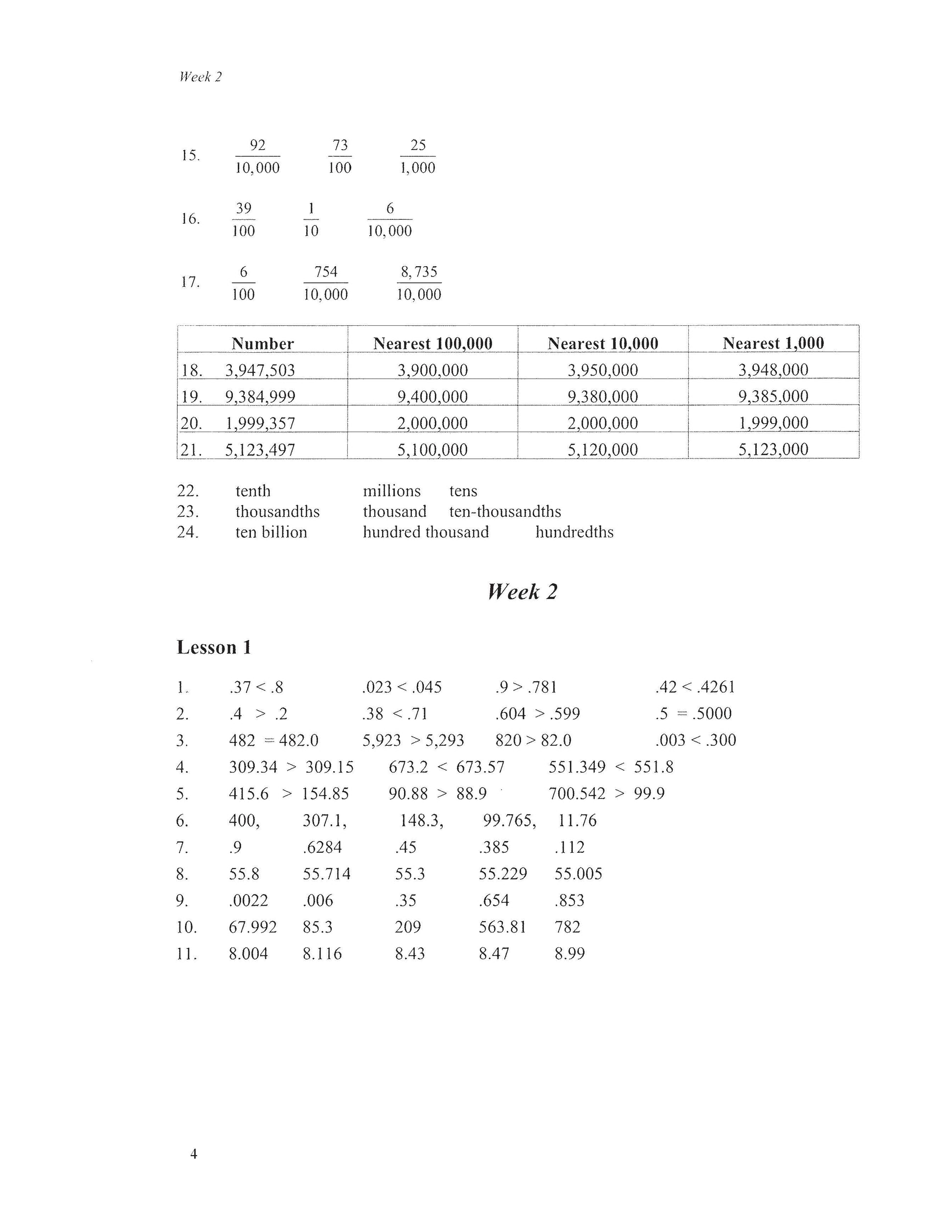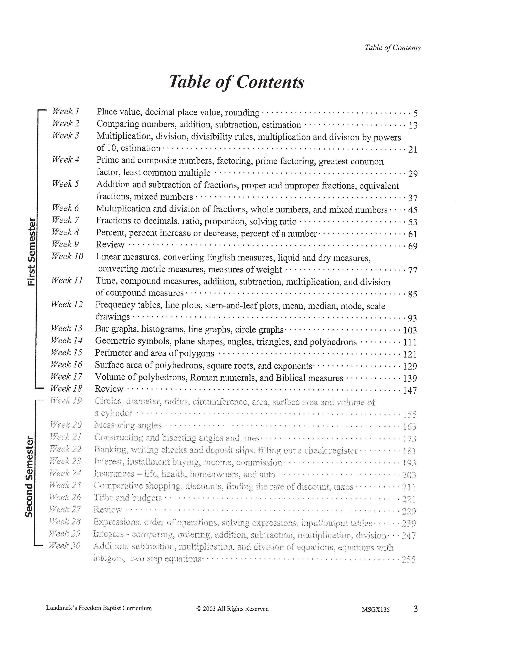 Students review and build on concepts learned. Place value of whole numbers, rounding off; review of fundamental skills in addition, subtraction, multiplication, division, fractions, and decimals; English and metric measures, converting measures; percents: changing percents to fractions and fractions to percents; changing percents to decimals and decimals to percents; finding percent of a number; perimeter, area, circumference. Each complete subject set includes everything you need for one student for one year. Because the set is complete, you are assured that Study Guides, Study Guide Answers, Test and Quizzes, and Test and Quiz Answers are included and are the latest edition available.