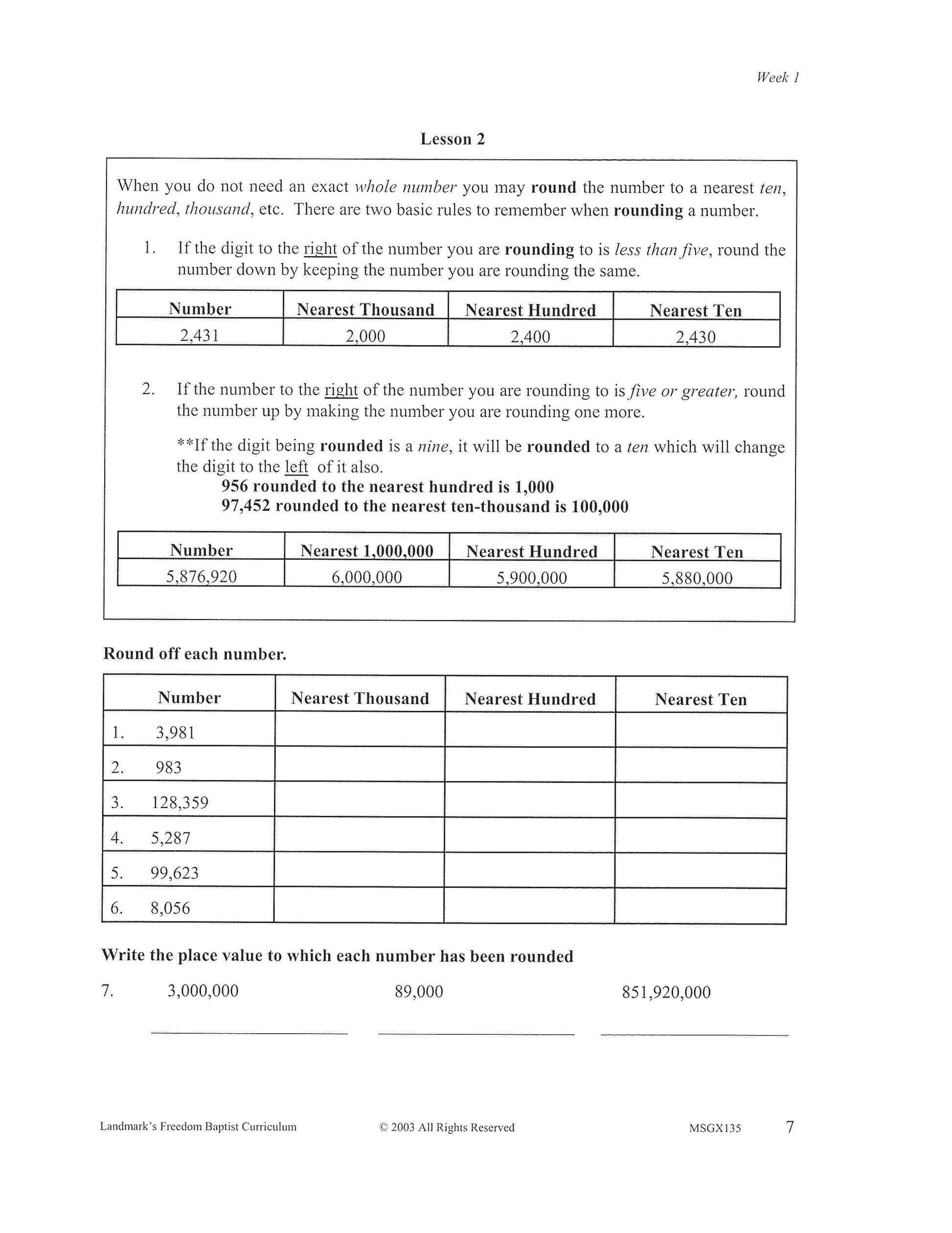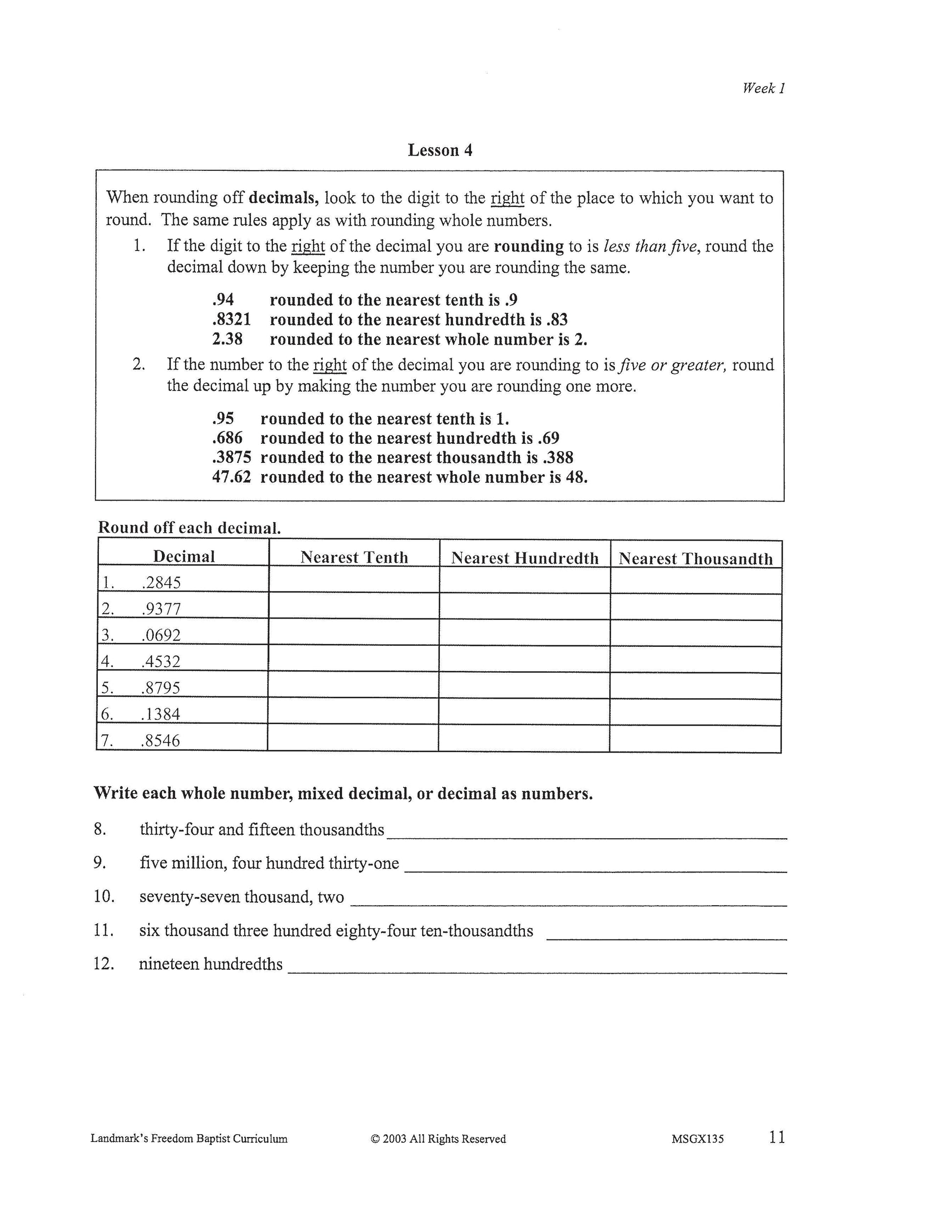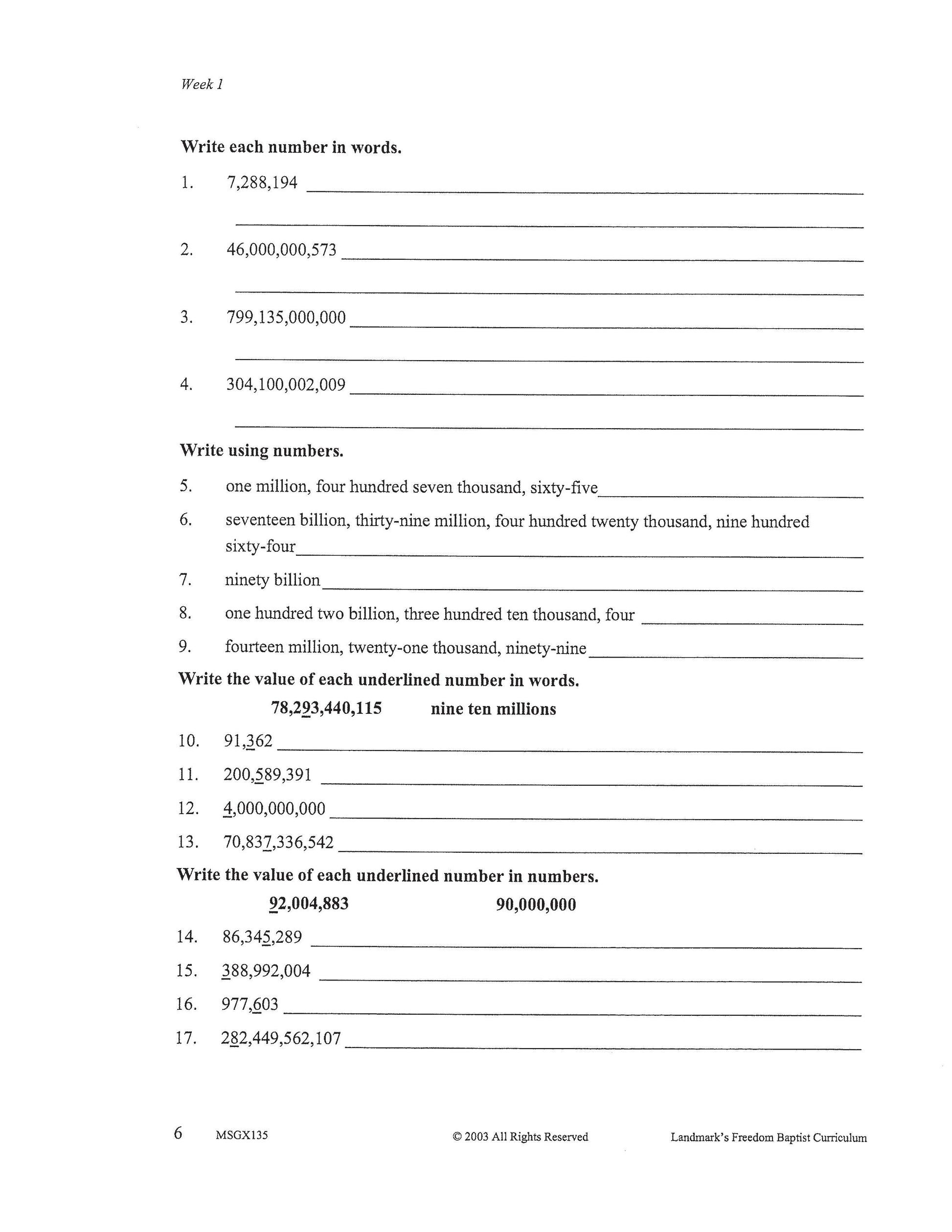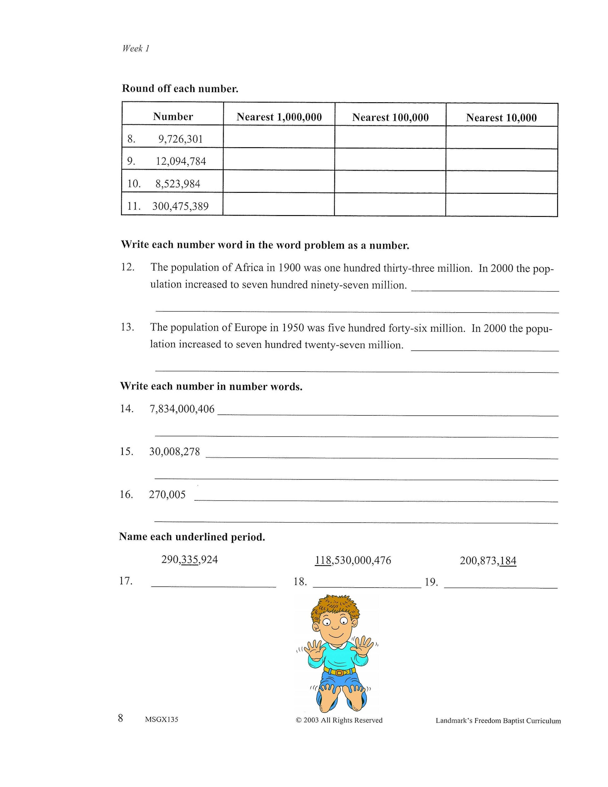 Students review and build on concepts learned. Place value of whole numbers, rounding off; review of fundamental skills in addition, subtraction, multiplication, division, fractions, and decimals; English and metric measures, converting measures; percents: changing percents to fractions and fractions to percents; changing percents to decimals and decimals to percents; finding percent of a number; perimeter, area, circumference. Each complete subject set includes everything you need for one student for one year. Because the set is complete, you are assured that Study Guides, Study Guide Answers, Test and Quizzes, and Test and Quiz Answers are included and are the latest edition available.