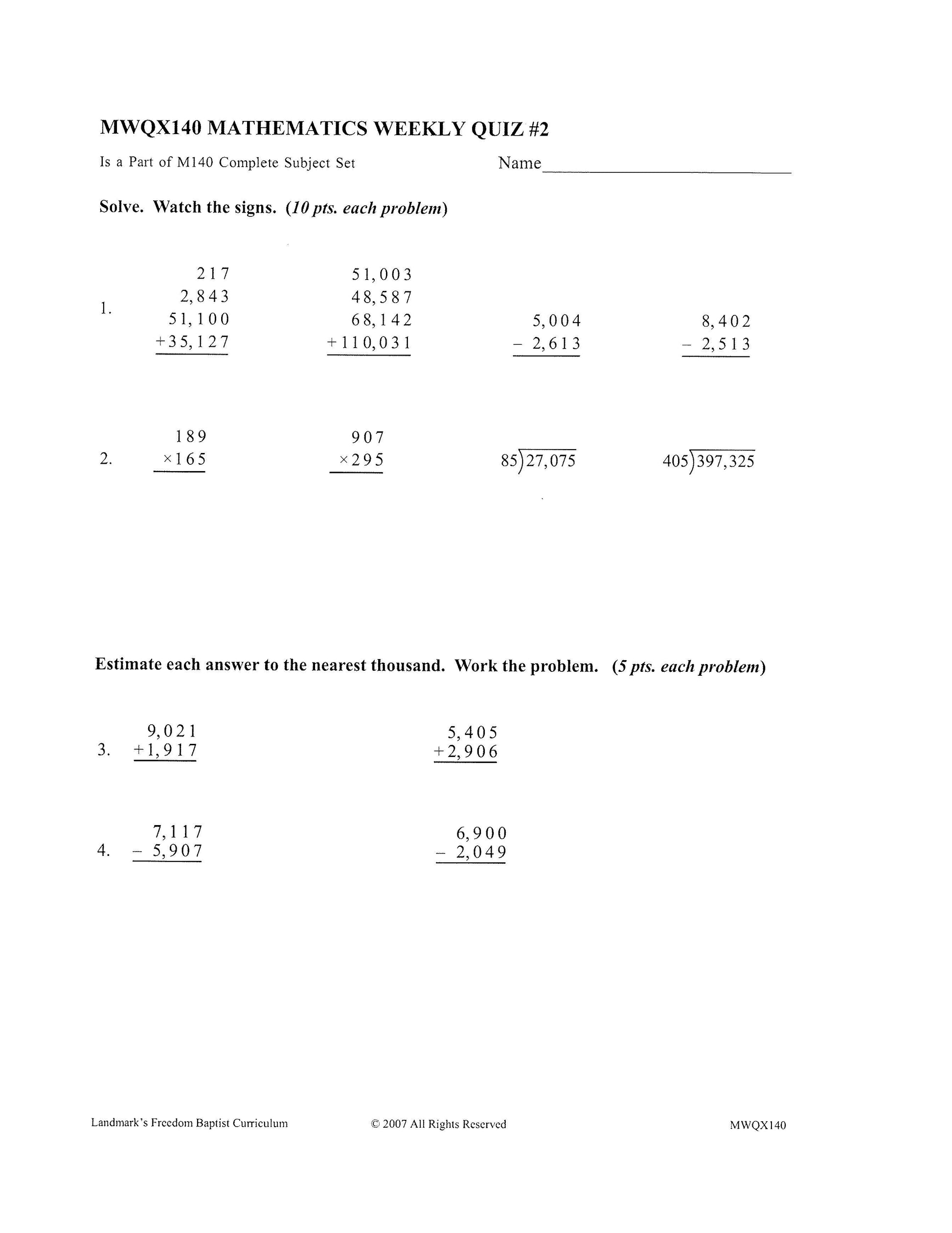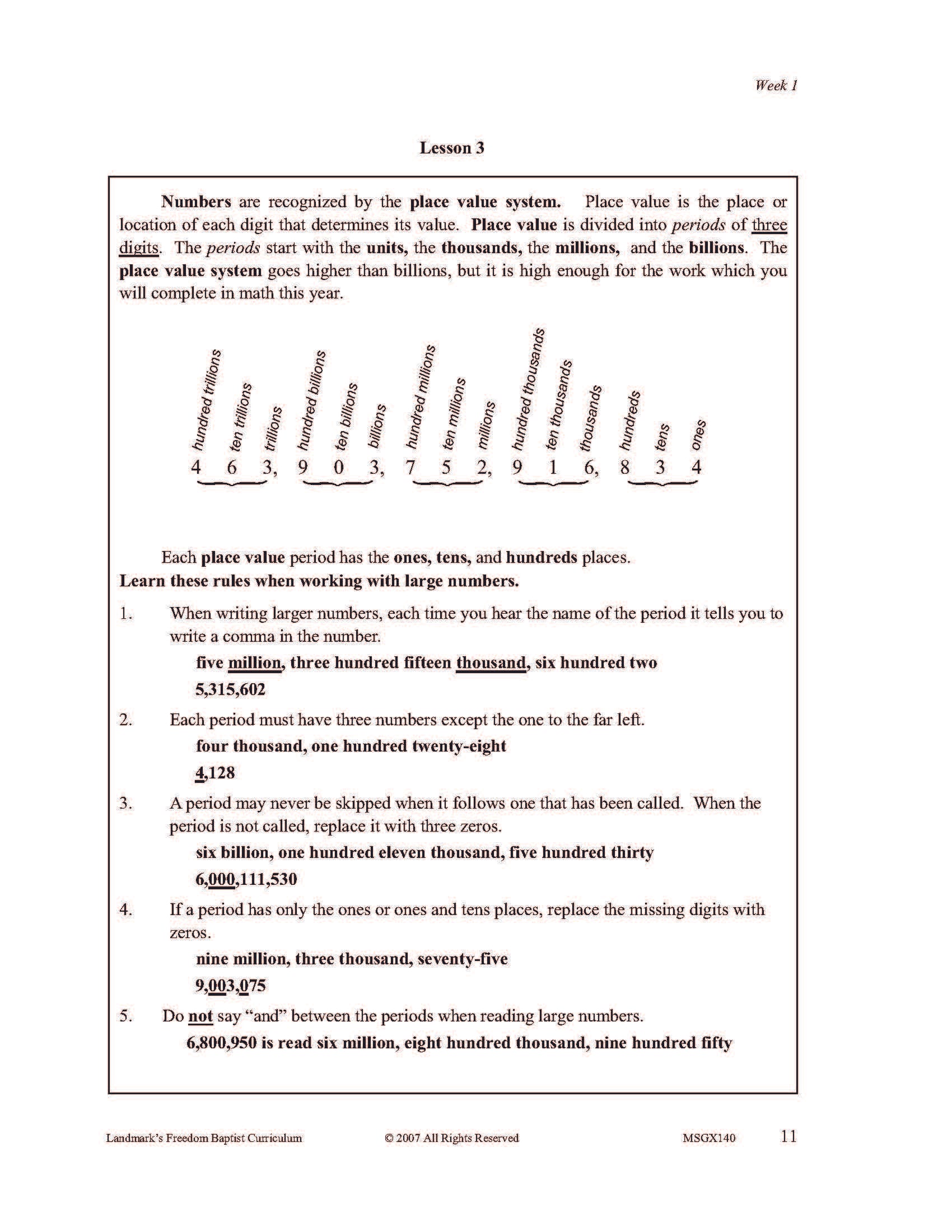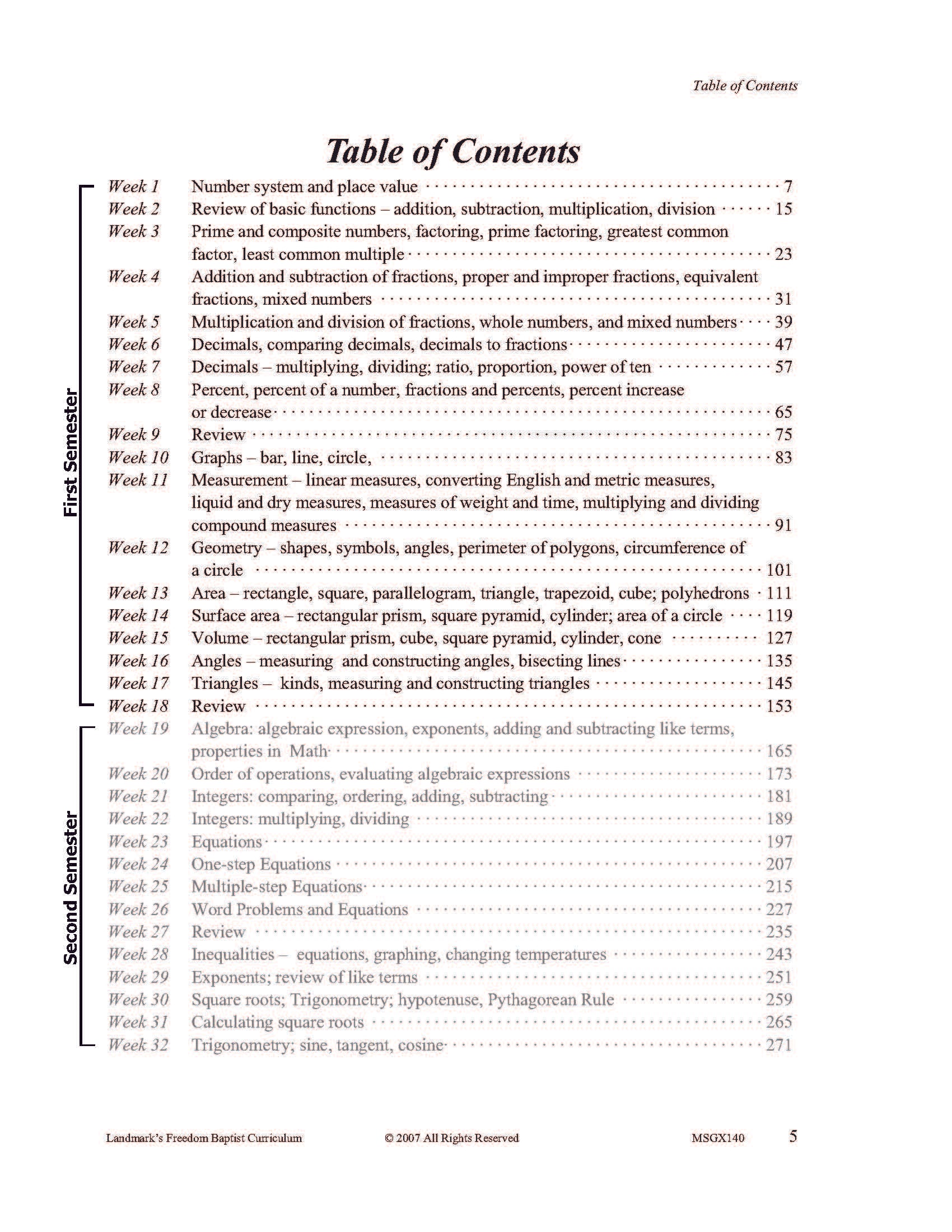 This course includes a review of all mathematical topics. Place value of whole numbers, rounding off; review of fundamental skills in addition, subtraction, multiplication, division, fractions, and decimals; percents: converting to decimals and fractions; graphs; English and metric measures, converting measures, review of linear, square, and cubic measure; basic geometric concepts; using formulas; measuring angles; negative numbers in addition, subtraction, multiplication, and division; equations; and exponents are taught and reviewed. Each complete subject set includes everything you need for one student for one year. Because the set is complete, you are assured that Study Guides, Study Guide Answers, Test and Quizzes, and Test and Quiz Answers are included and are the latest edition available.