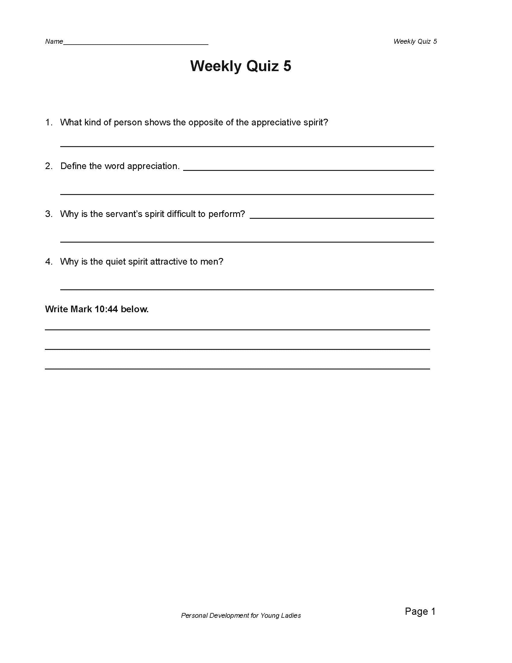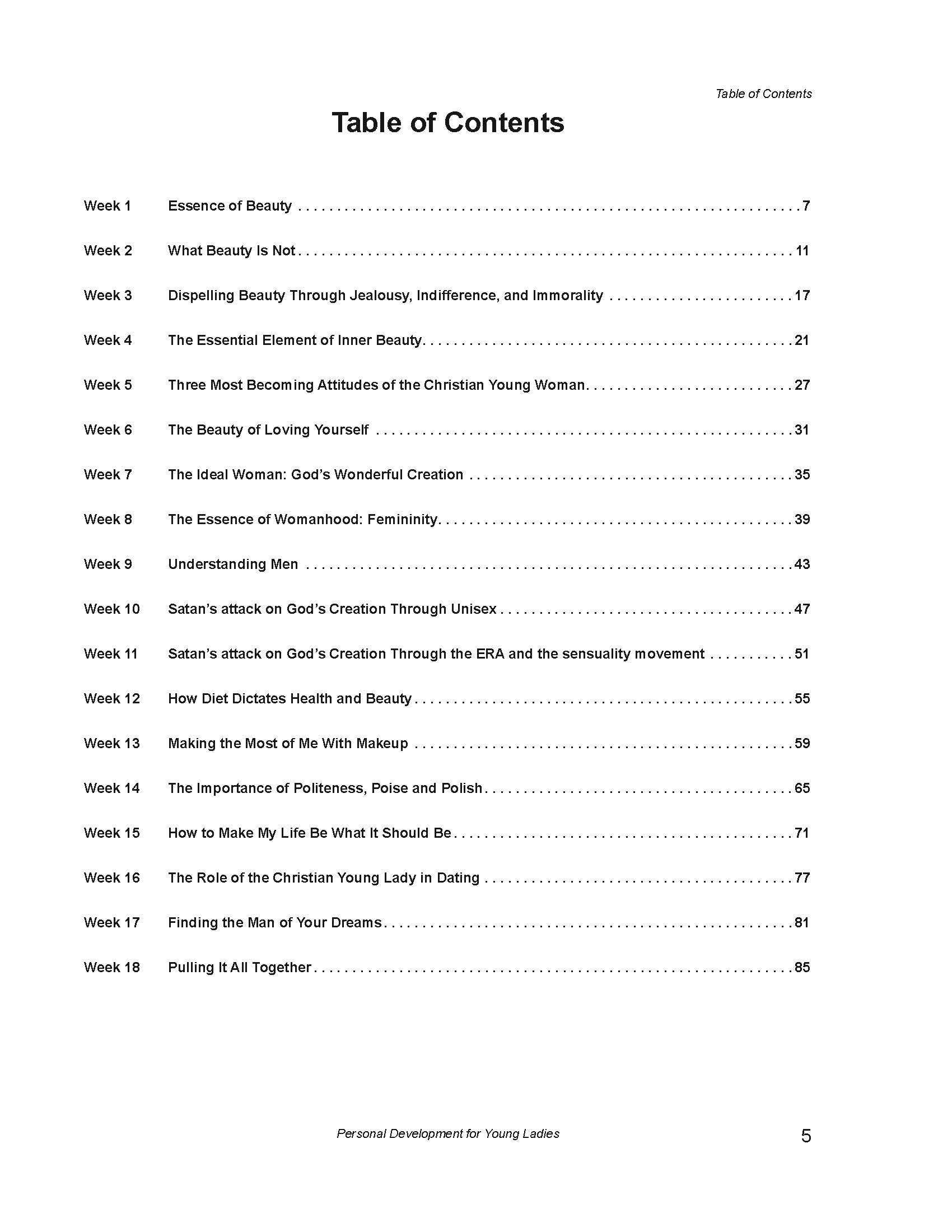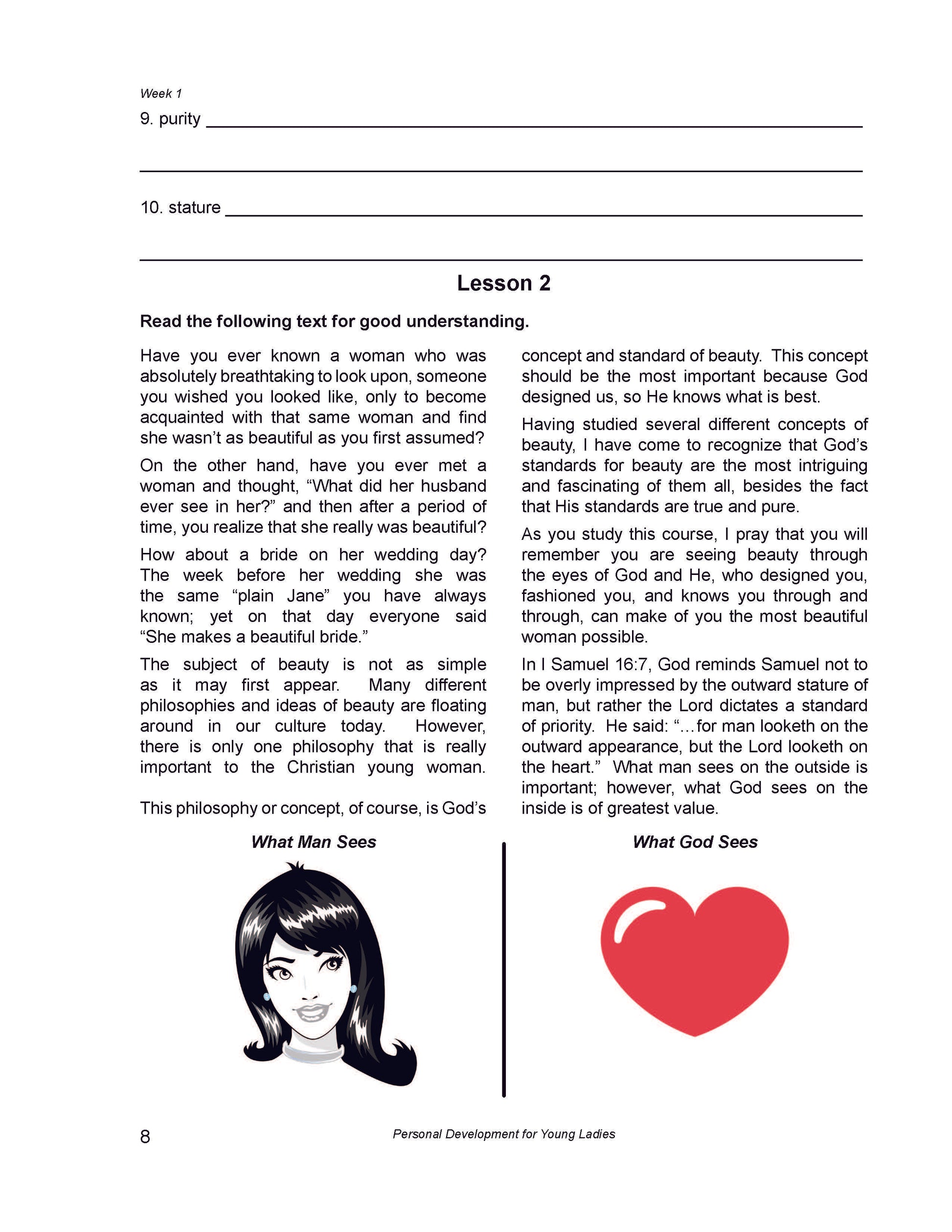 This course will benefit young ladies for the remainder of their lives. In fact, it will help make ladies out of girls if the material is studied, believed, and applied.