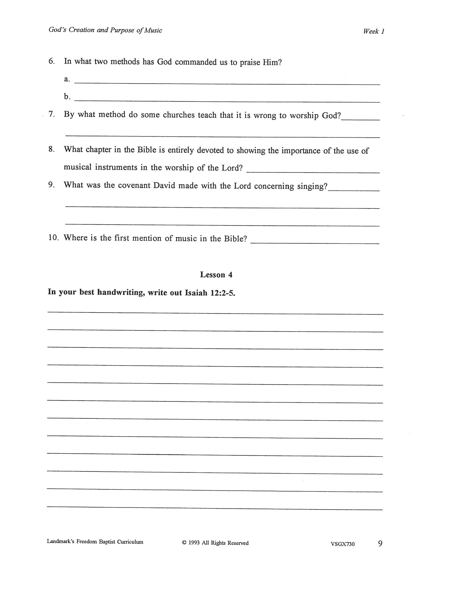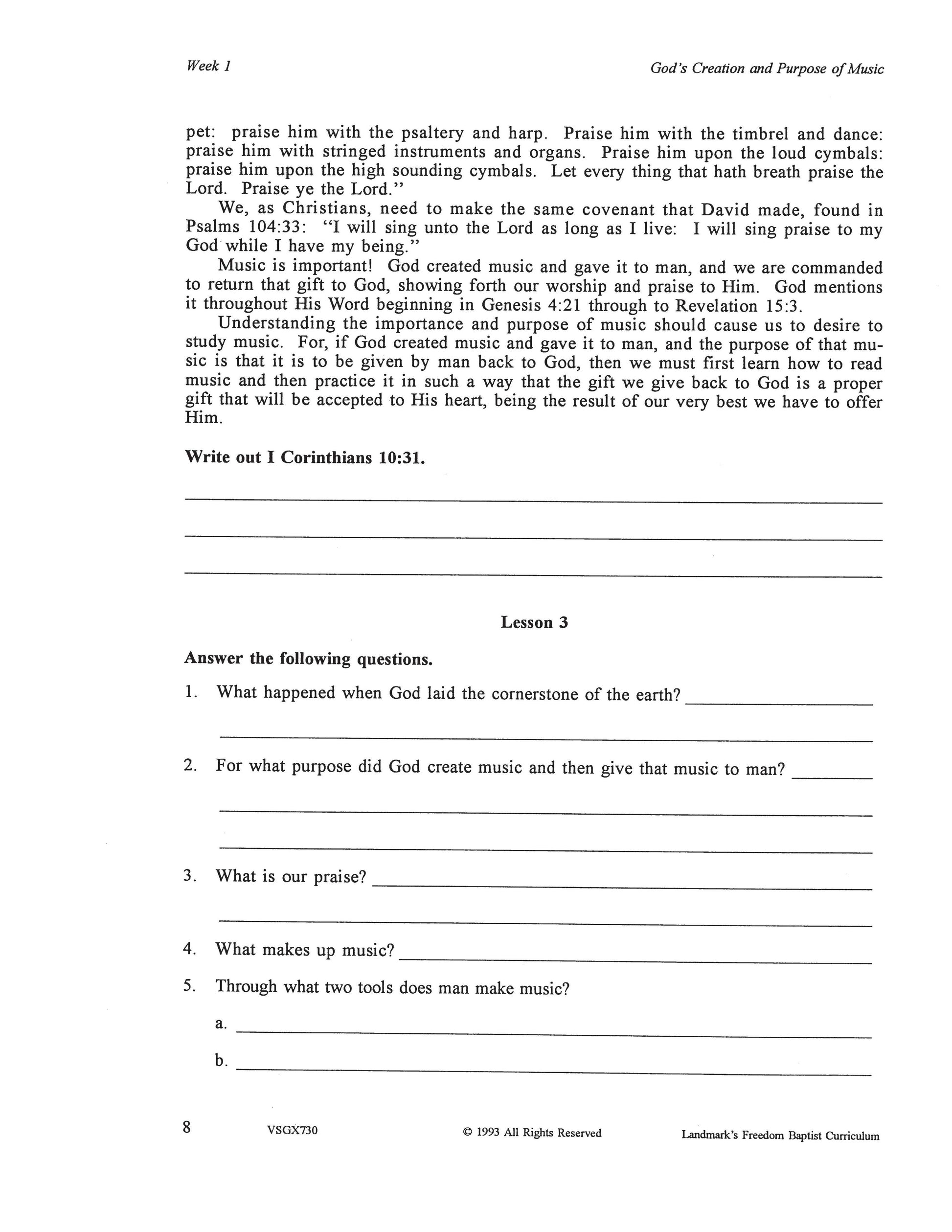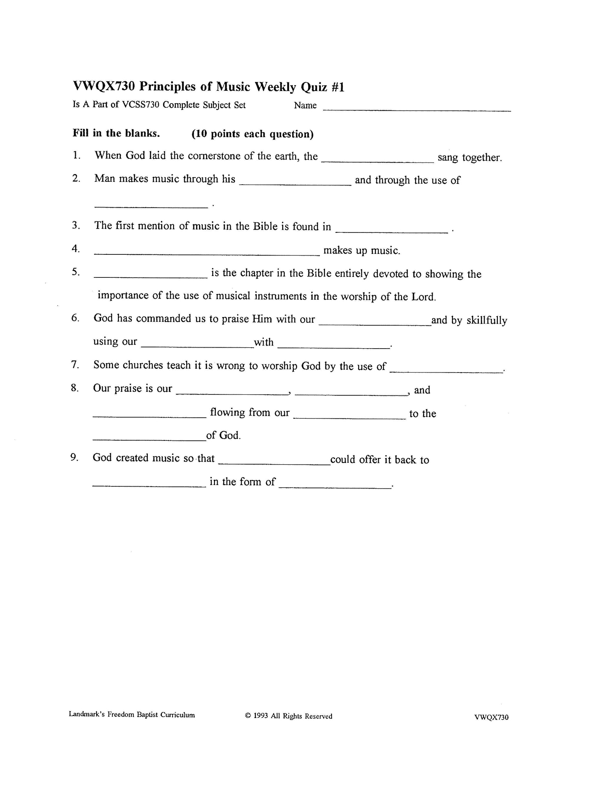 LFBC is pleased to offer this thorough, balanced, positive approach to the subject of music. Through studying music history, music theory, and the aspects of music, students learn how right music has developed and are trained to understand why modern discordant, dissonant, and rock music is not honoring to the Lord Jesus Christ. Each complete subject set includes everything you need for one student for one year. Because the set is complete, you are assured that Study Guides, Study Guide Answers, Test and Quizzes, and Test and Quiz Answers are included and are the latest edition available.