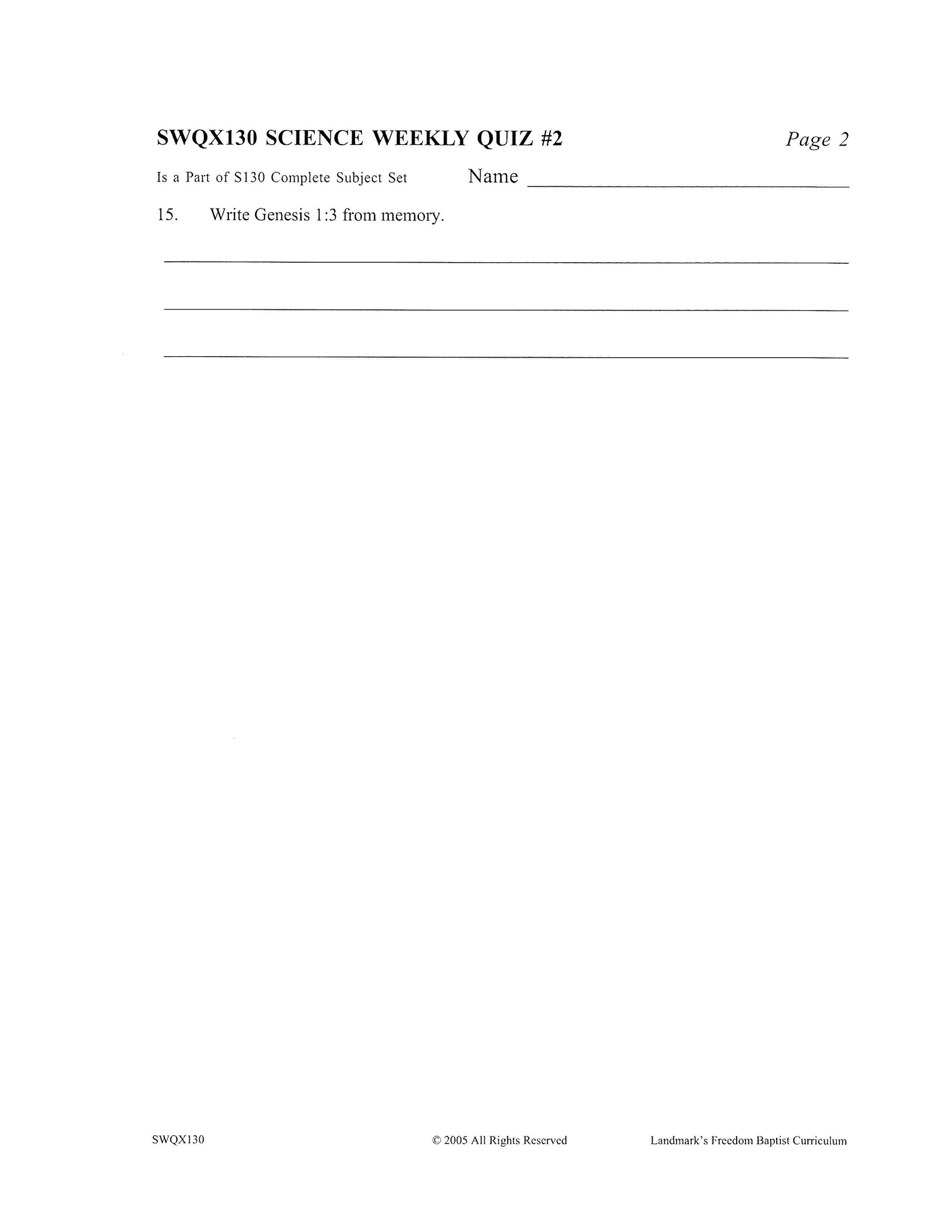 Students learn about electricity, magnets, fuels, sounds, climate, water, plants, conservation, and other topics from God’s viewpoint. Each complete subject set includes everything you need for one student for one year. Because the set is complete, you are assured that Study Guides, Study Guide Answers, Test and Quizzes, and Test and Quiz Answers are included and are the latest edition available.