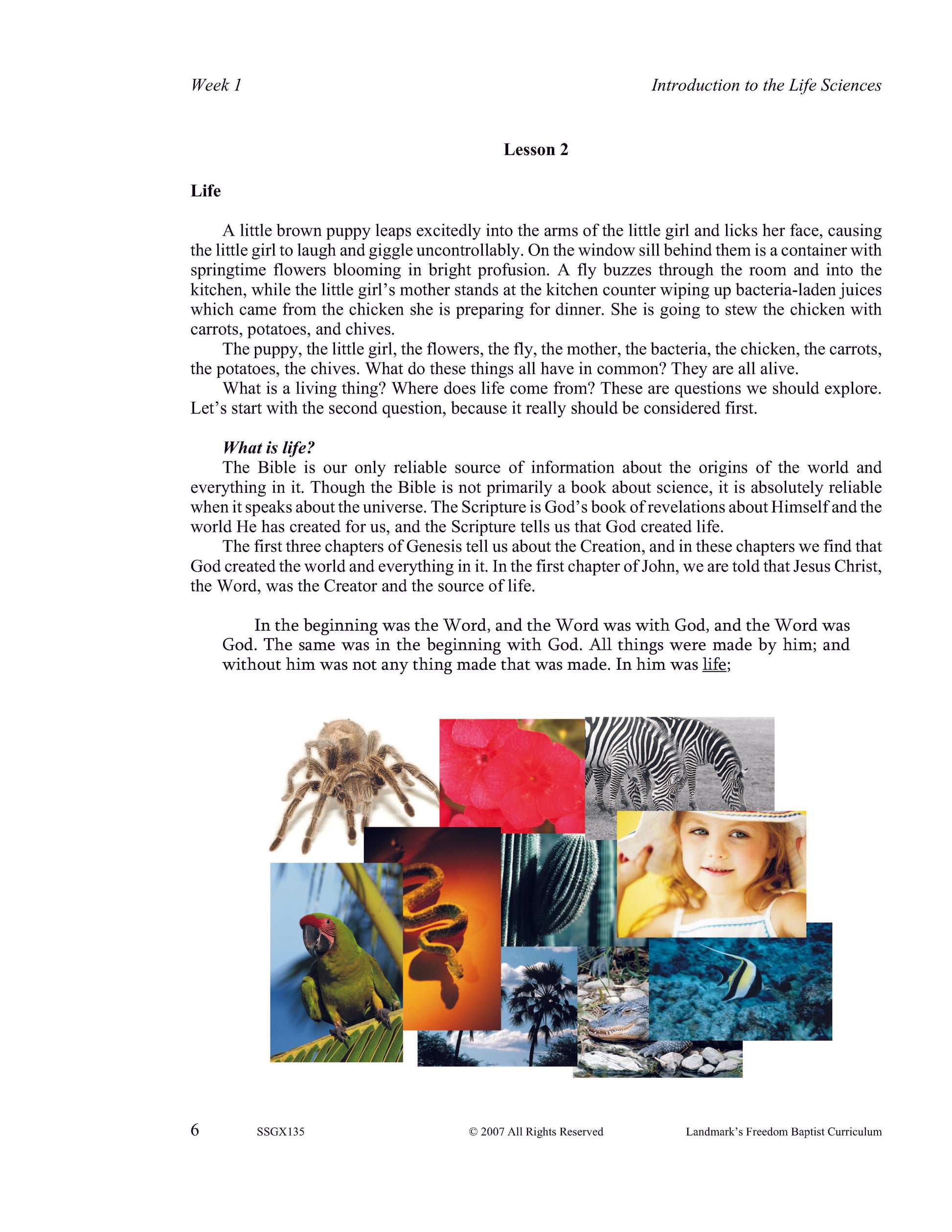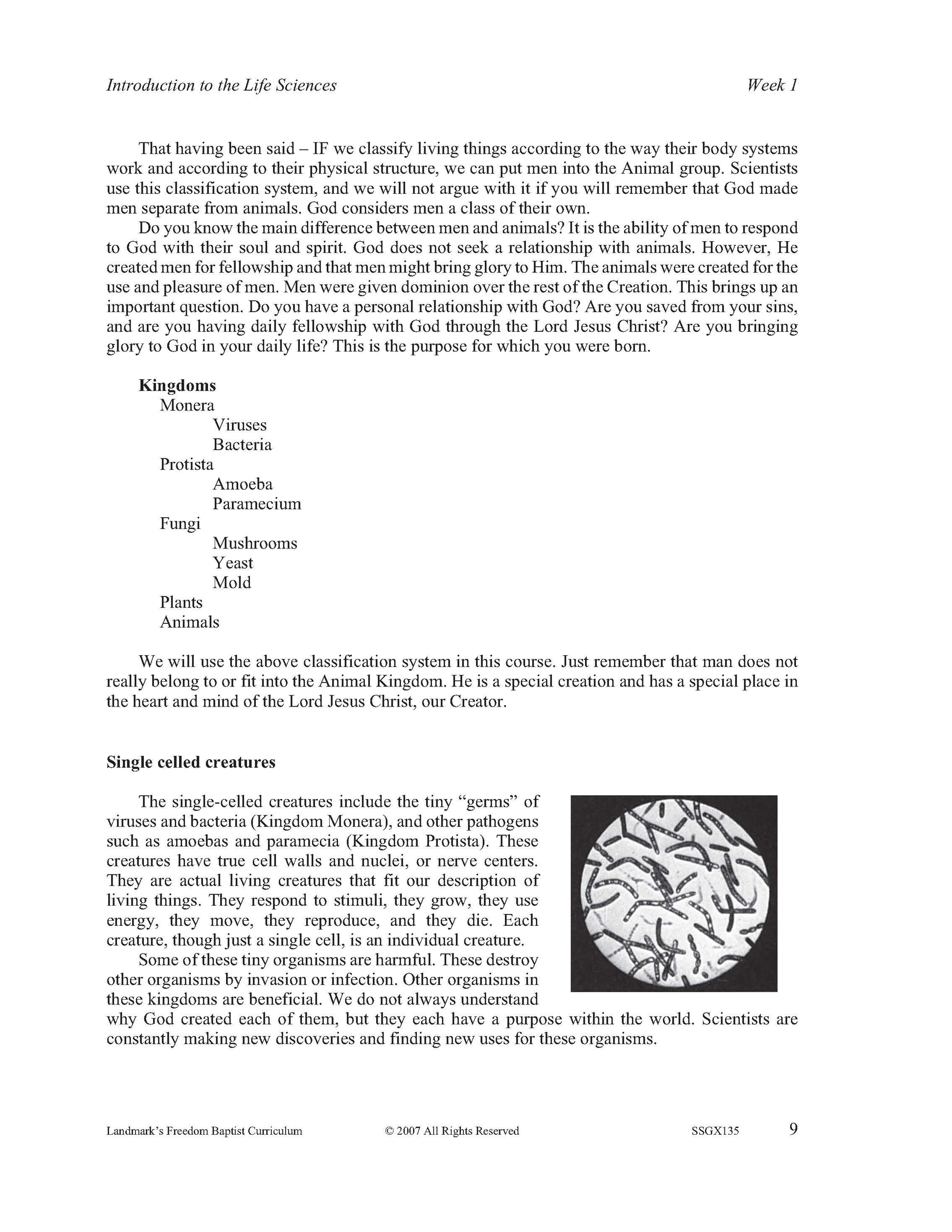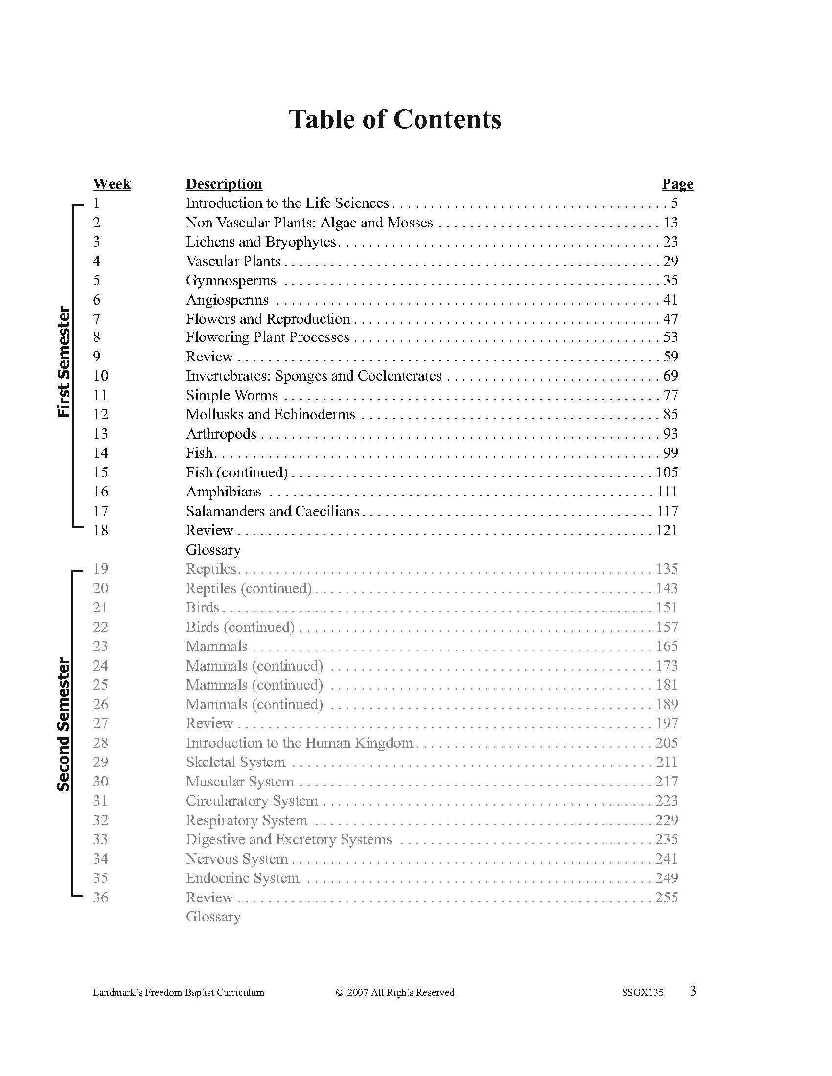 This course covers The Plant Kingdom, The Animal Kingdom, and The Human Kingdom. Revised for the 2007/2008 school year, the course now includes more detailed material on each kingdom, and has many new pictures to supplement the lessons.