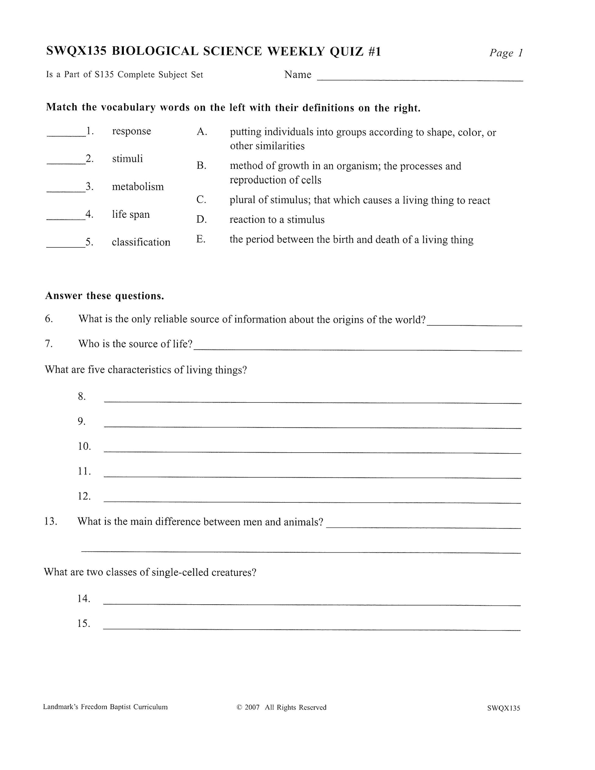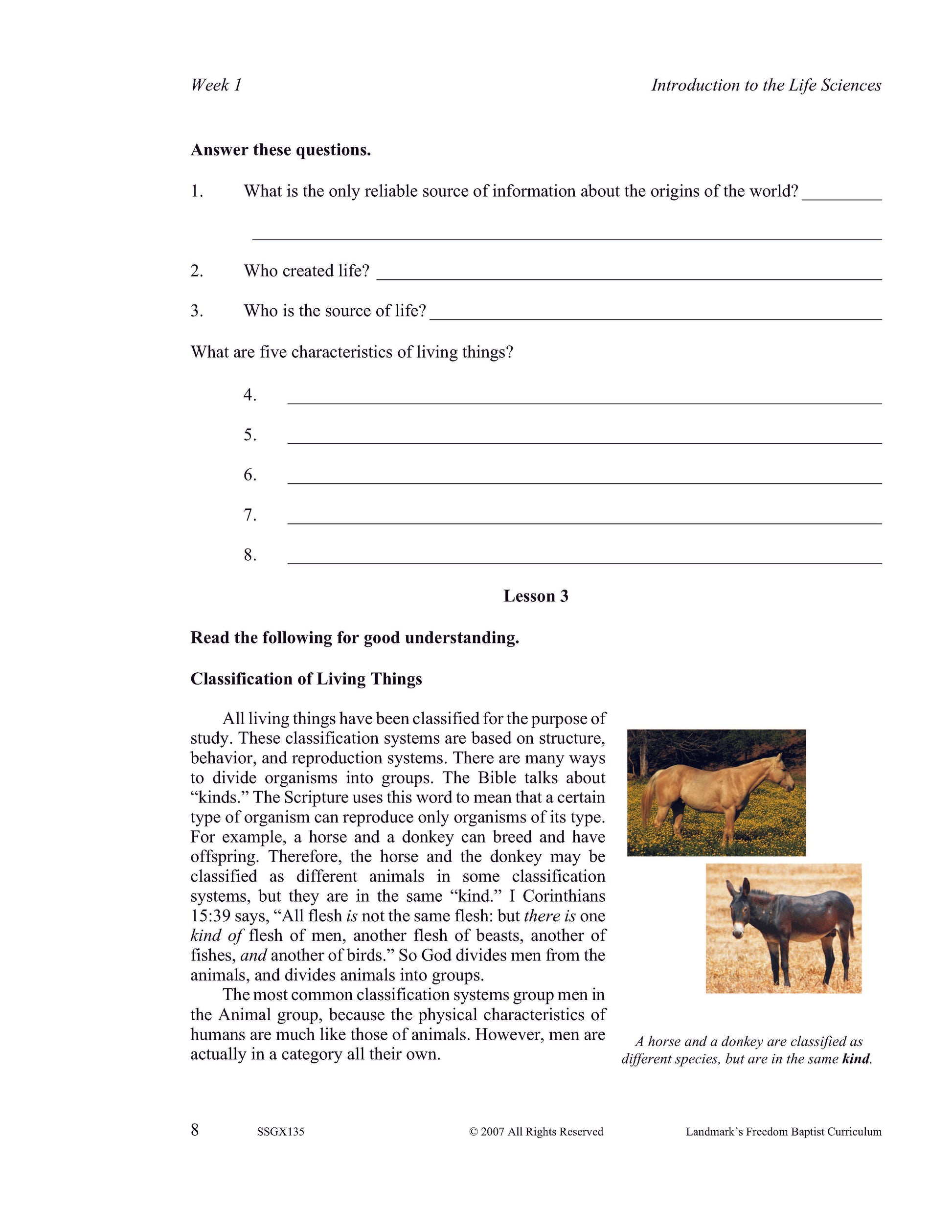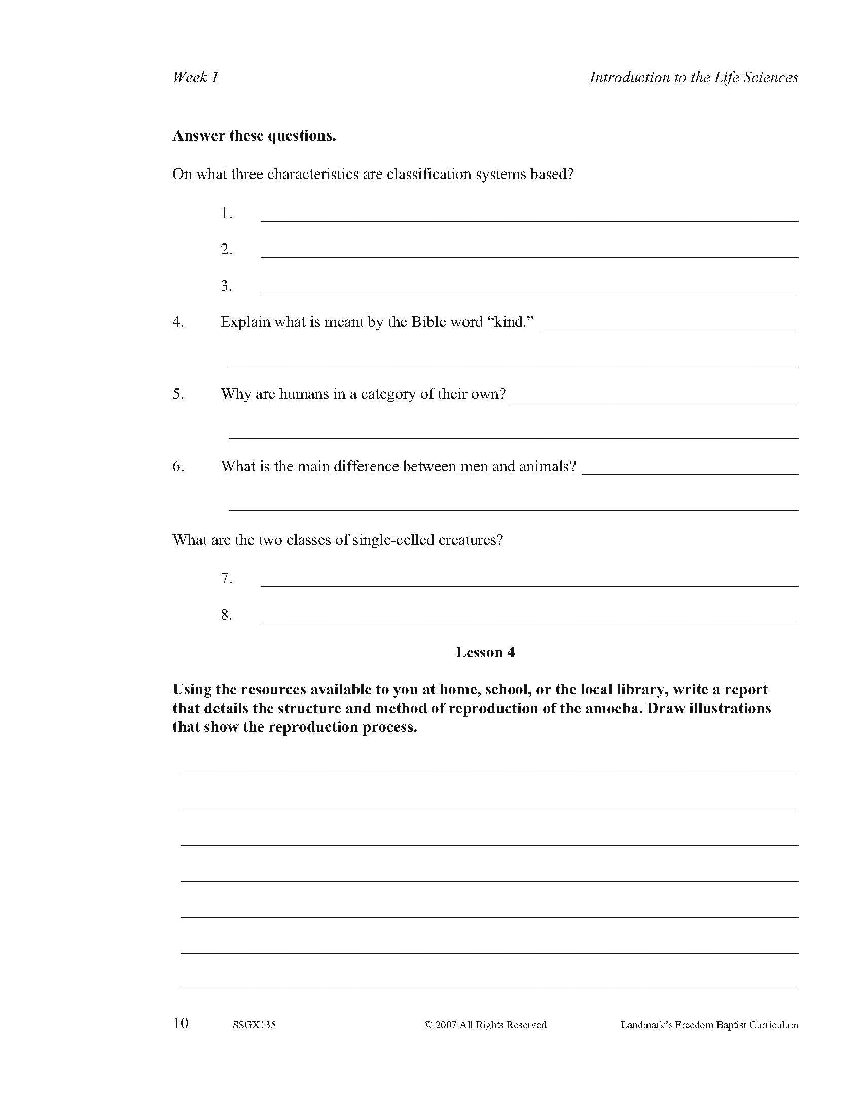 This course covers The Plant Kingdom, The Animal Kingdom, and The Human Kingdom. Revised for the 2007/2008 school year, the course now includes more detailed material on each kingdom, and has many new pictures to supplement the lessons.