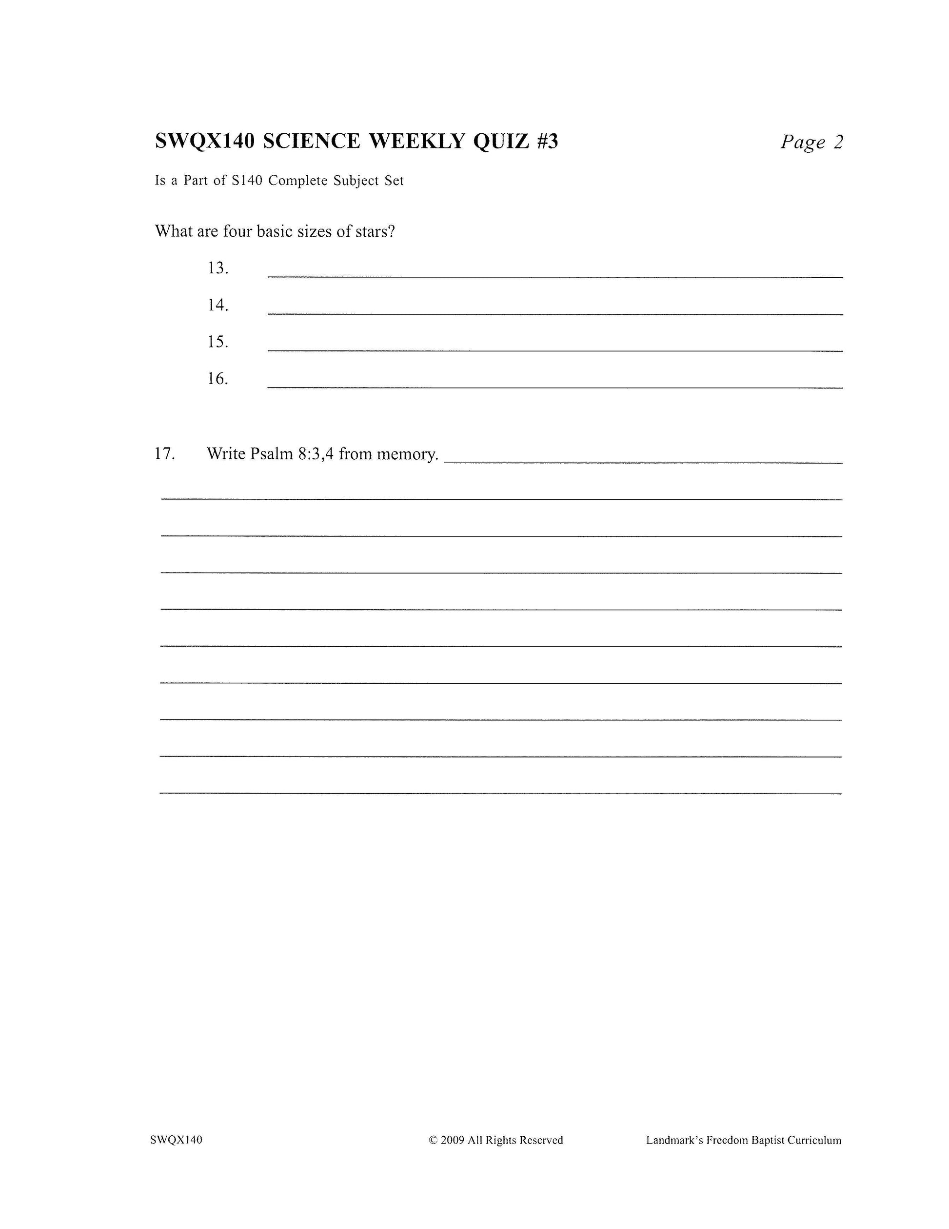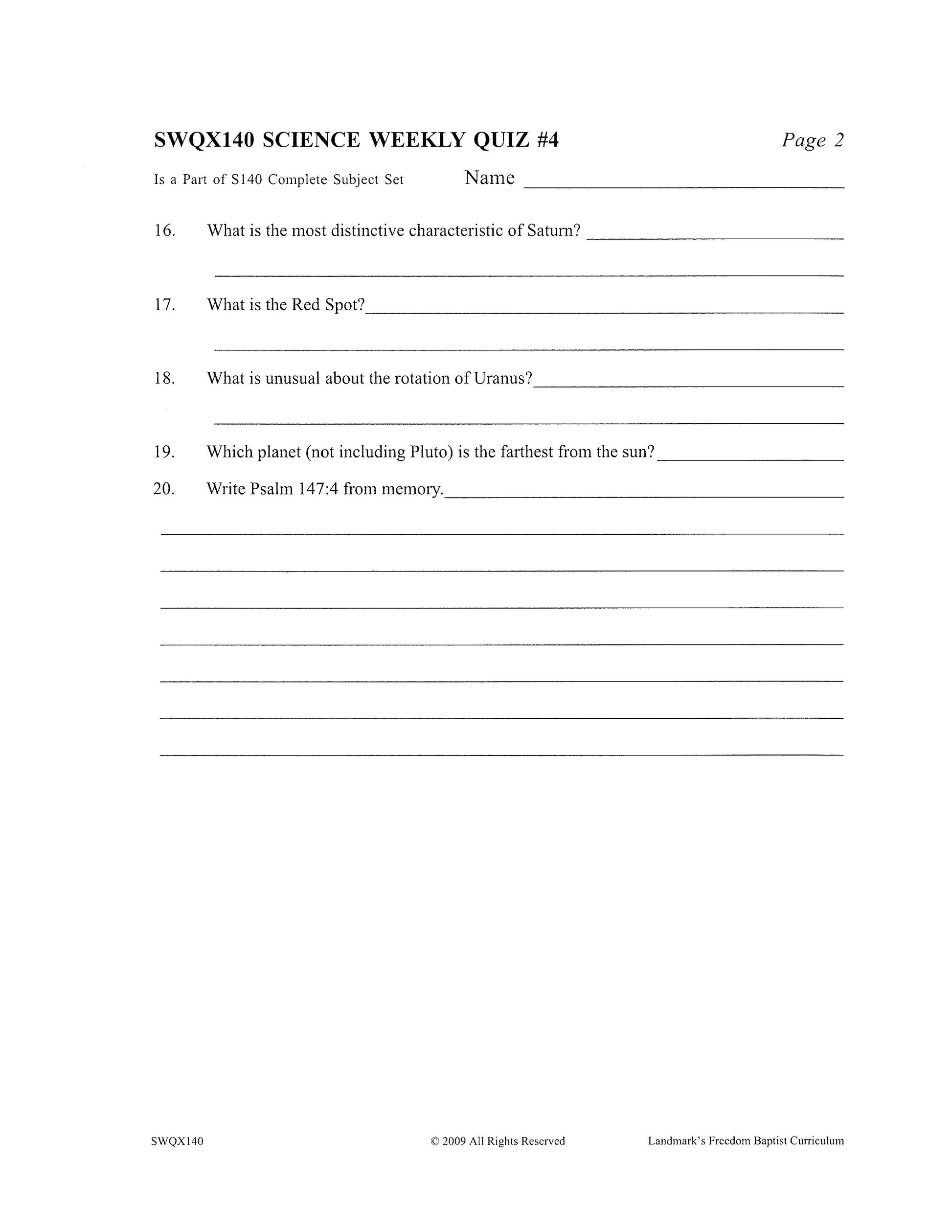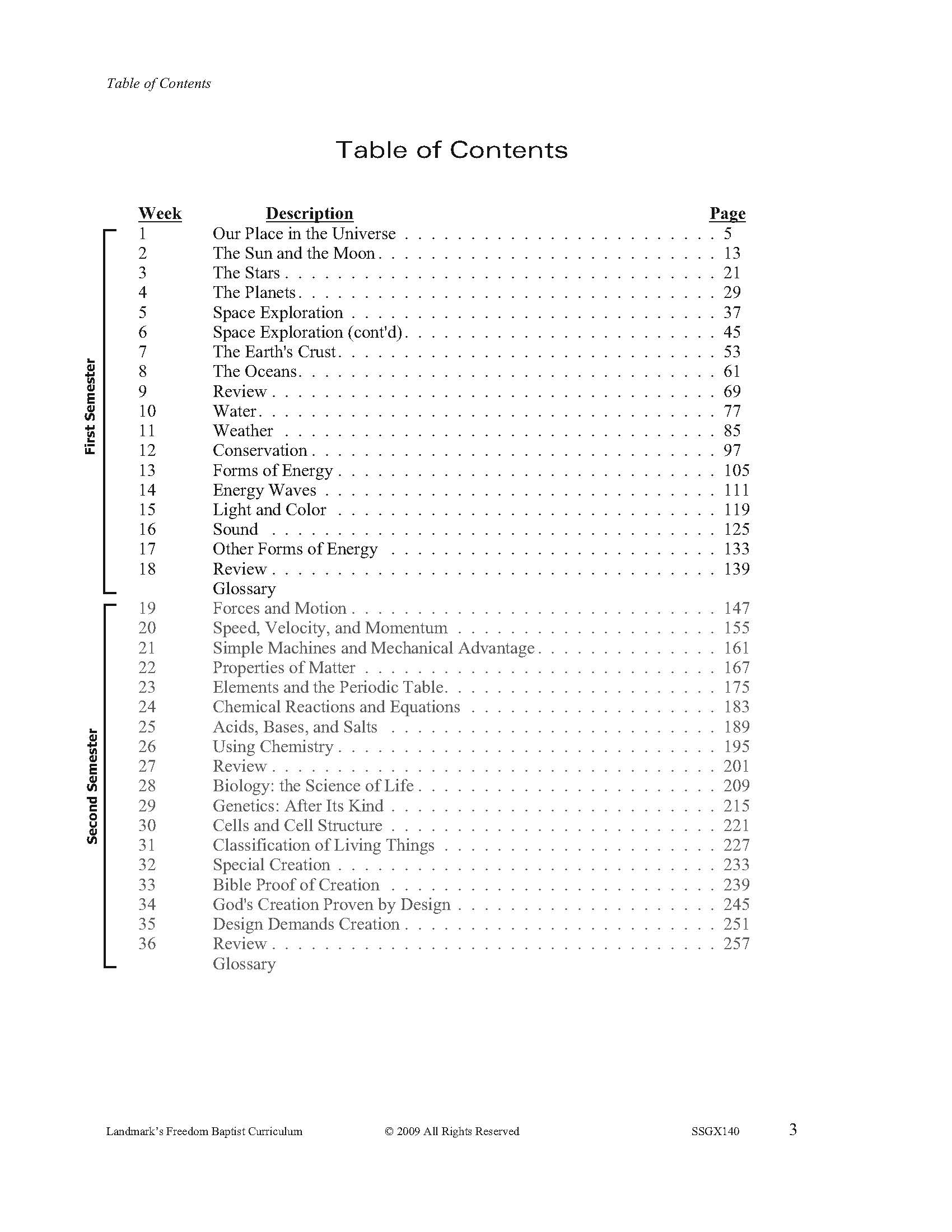 Students begin their study with a section on the solar system. The course also includes information on water, the earth’s crust, weather, and plants. Special projects are required every nine weeks. Each complete subject set includes everything you need for one student for one year. Because the set is complete, you are assured that Study Guides, Study Guide Answers, Test and Quizzes, and Test and Quiz Answers are included and are the latest edition available.