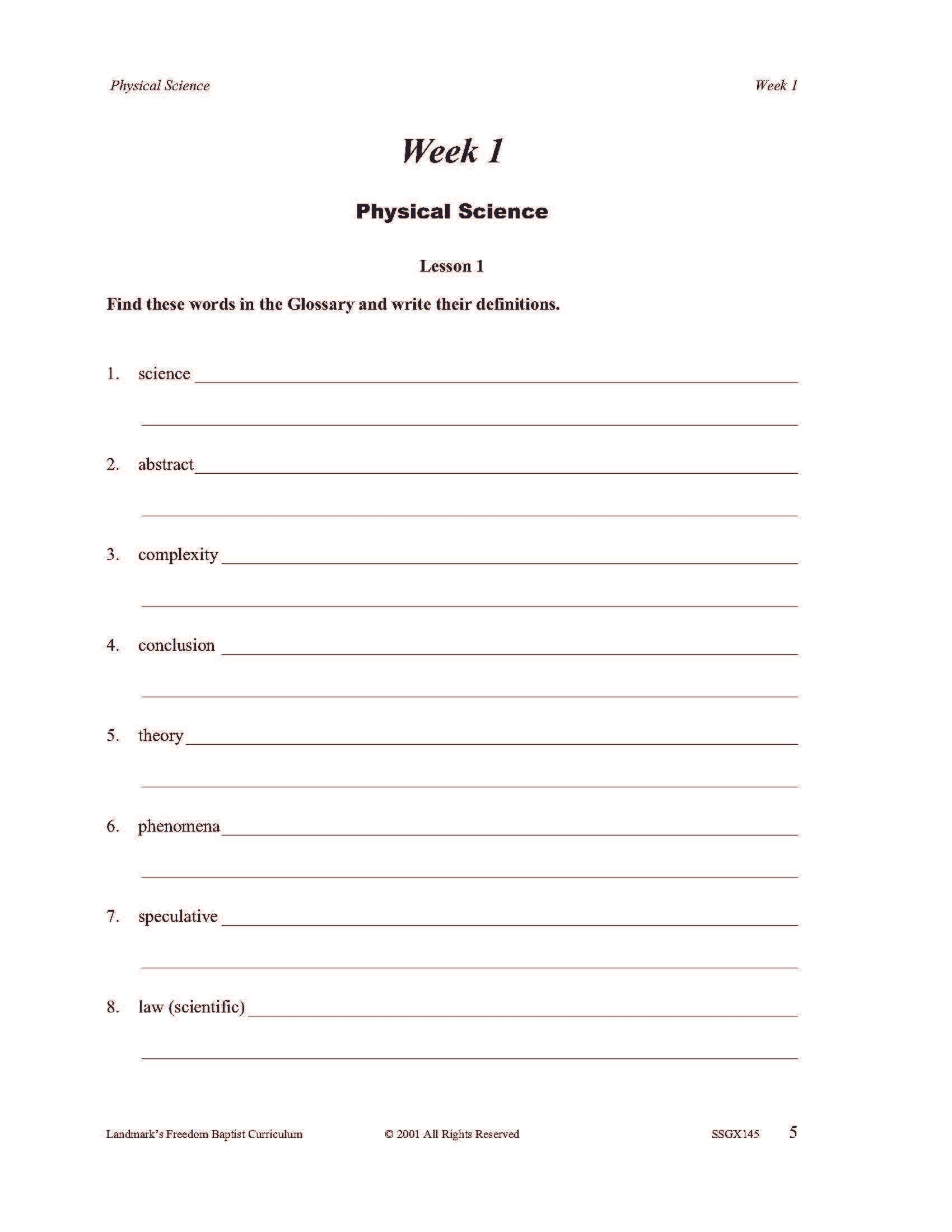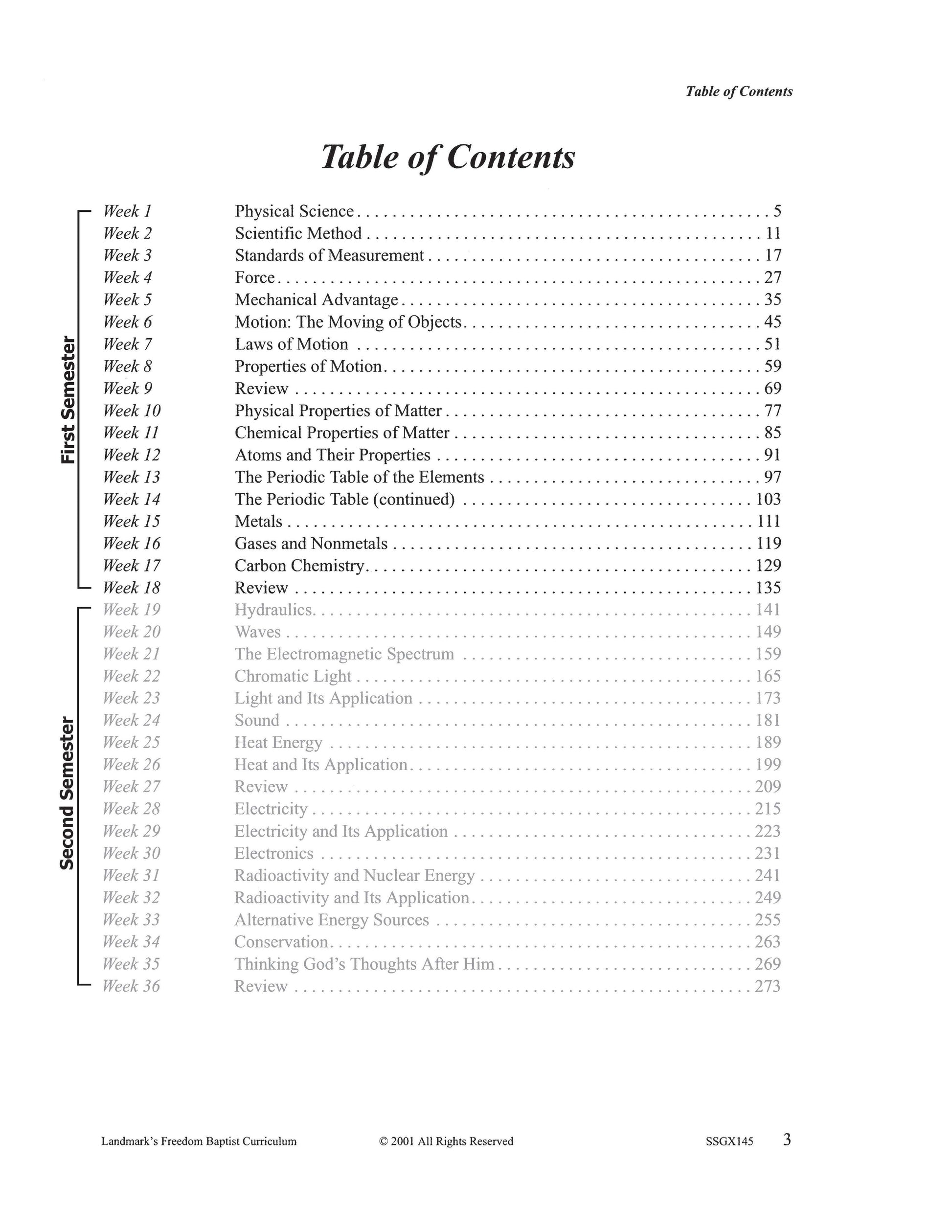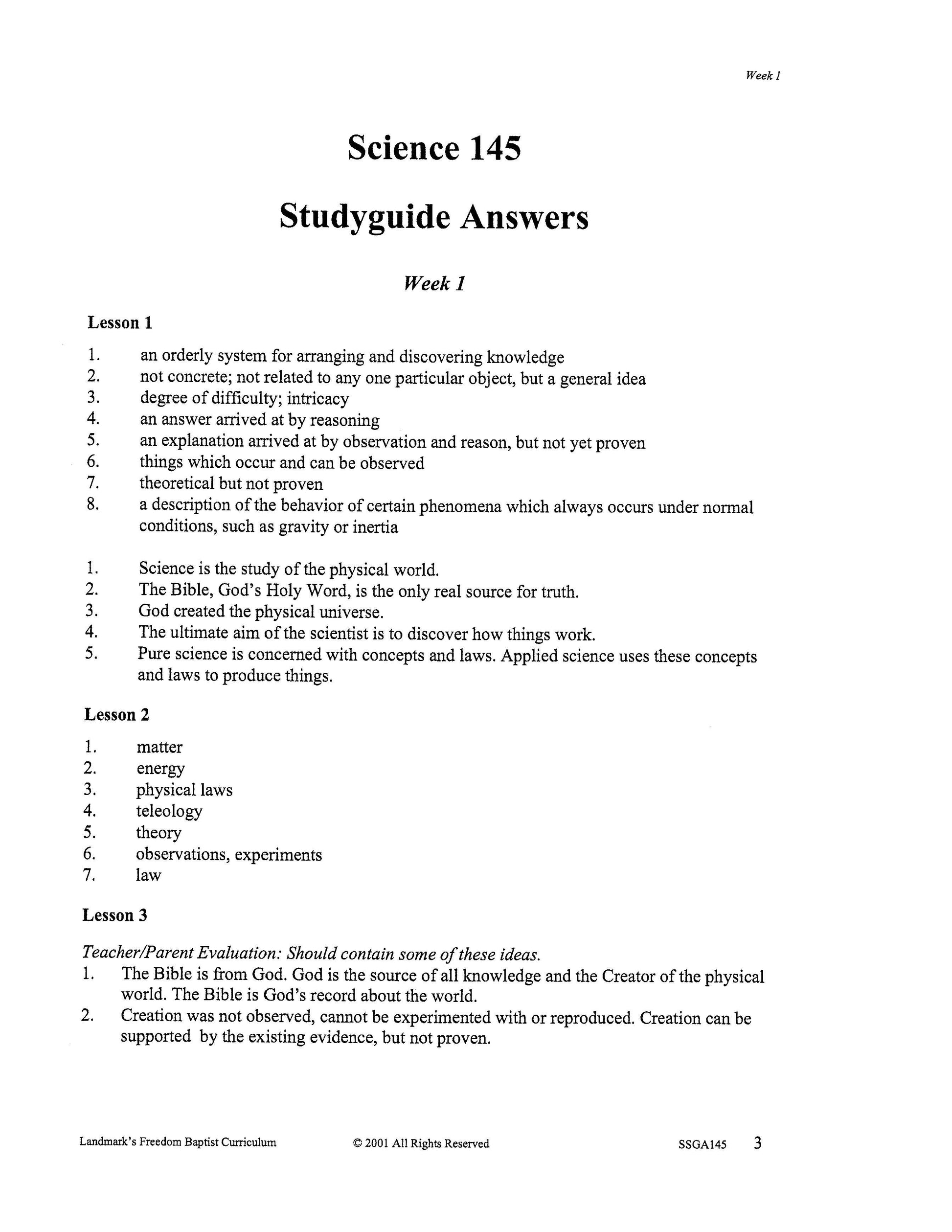It covers the scientific method, physical forces such as gravity and centrifugal force, basic chemical properties of matter, sound, light, heat, and other forms of energy. Each complete subject set includes everything you need for one student for one year. Because the set is complete, you are assured that Study Guides, Study Guide Answers, Test and Quizzes, and Test and Quiz Answers are included and are the latest edition available.