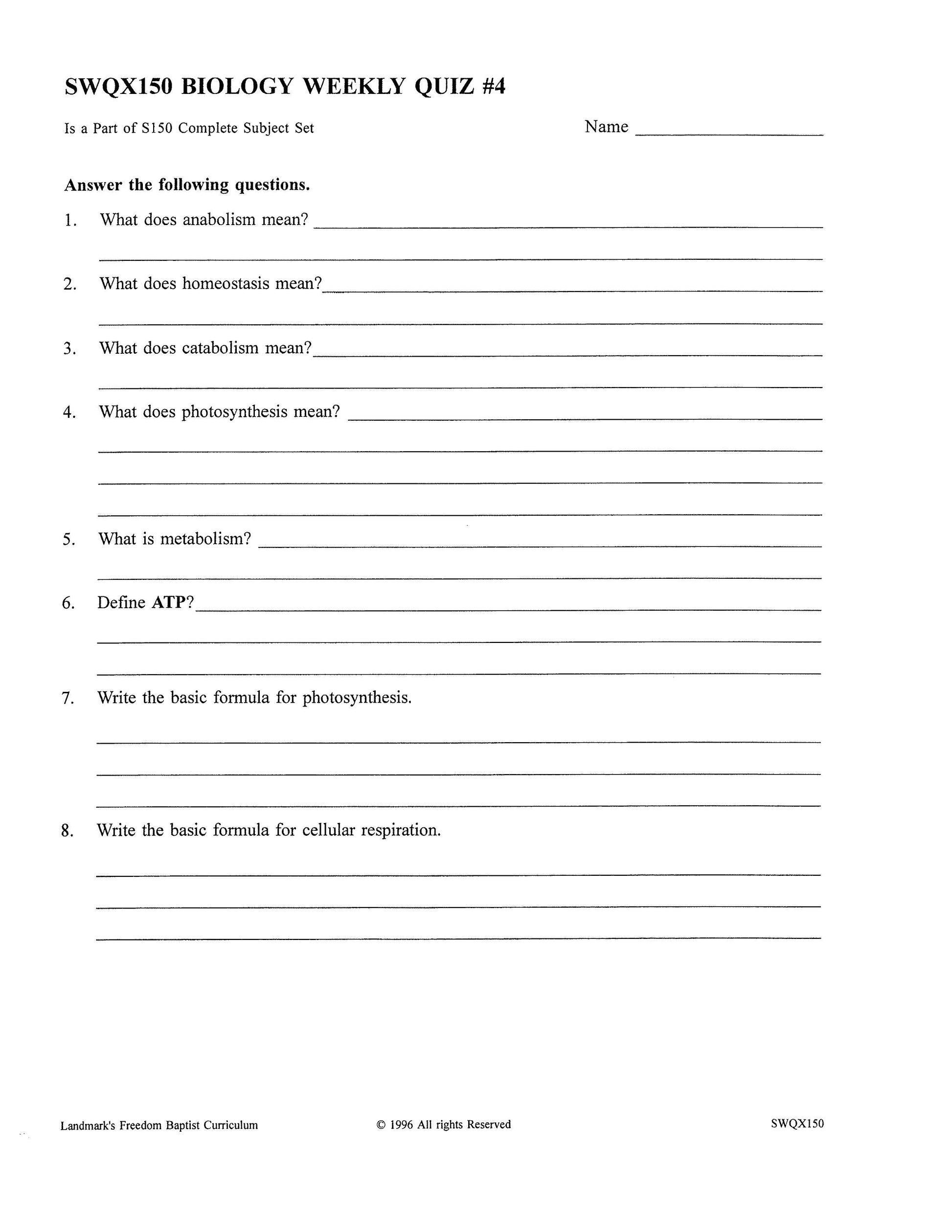 different phylum's of animals and classes of plants. It also discusses the biology and anatomy of the human body, as well as discussing a Christian viewpoint of biology. Each complete subject set includes everything you need for one student for one year. Because the set is complete, you are assured that Study Guides, Study Guide Answers, Test and Quizzes, and Test and Quiz Answers are included and are the latest edition available.