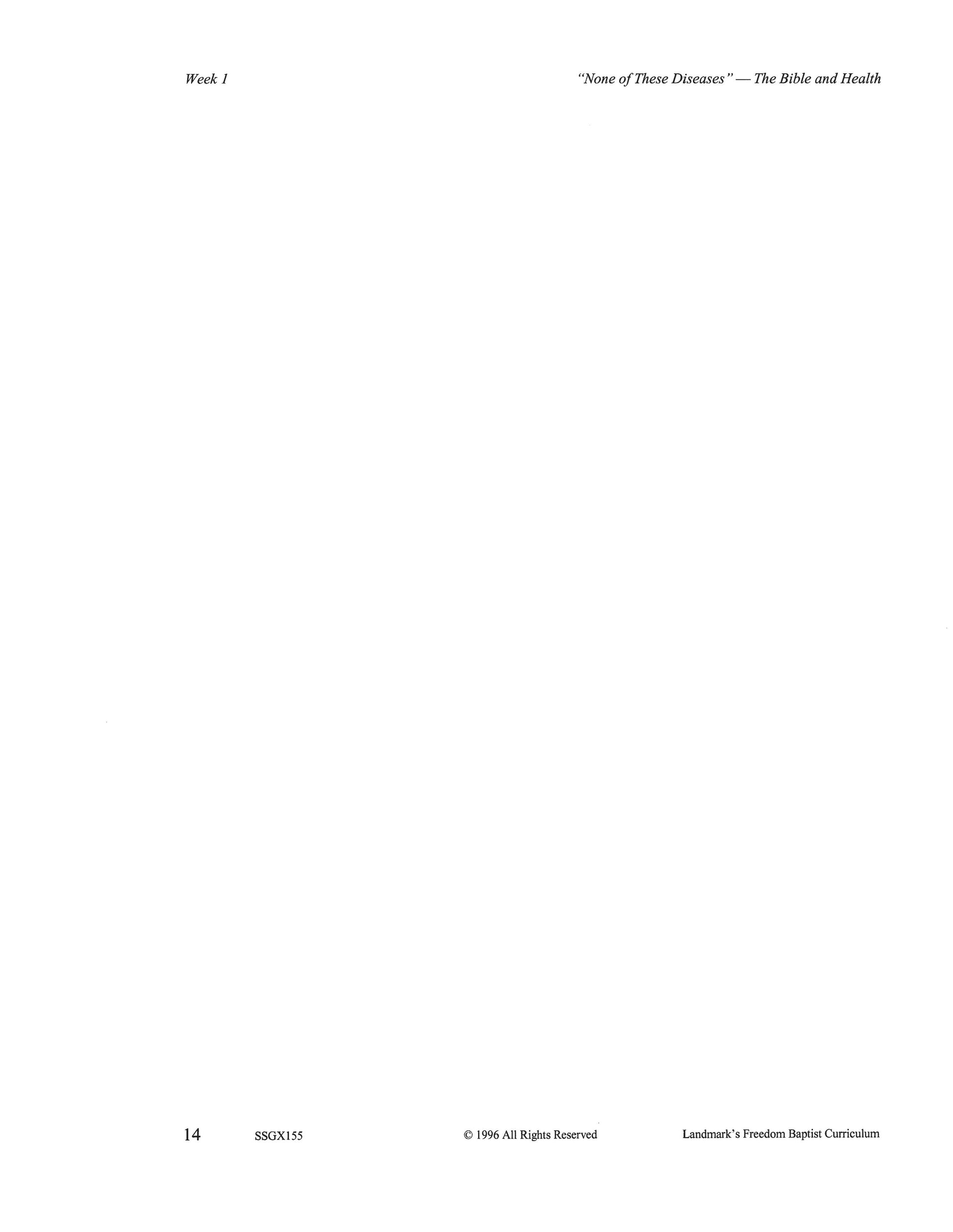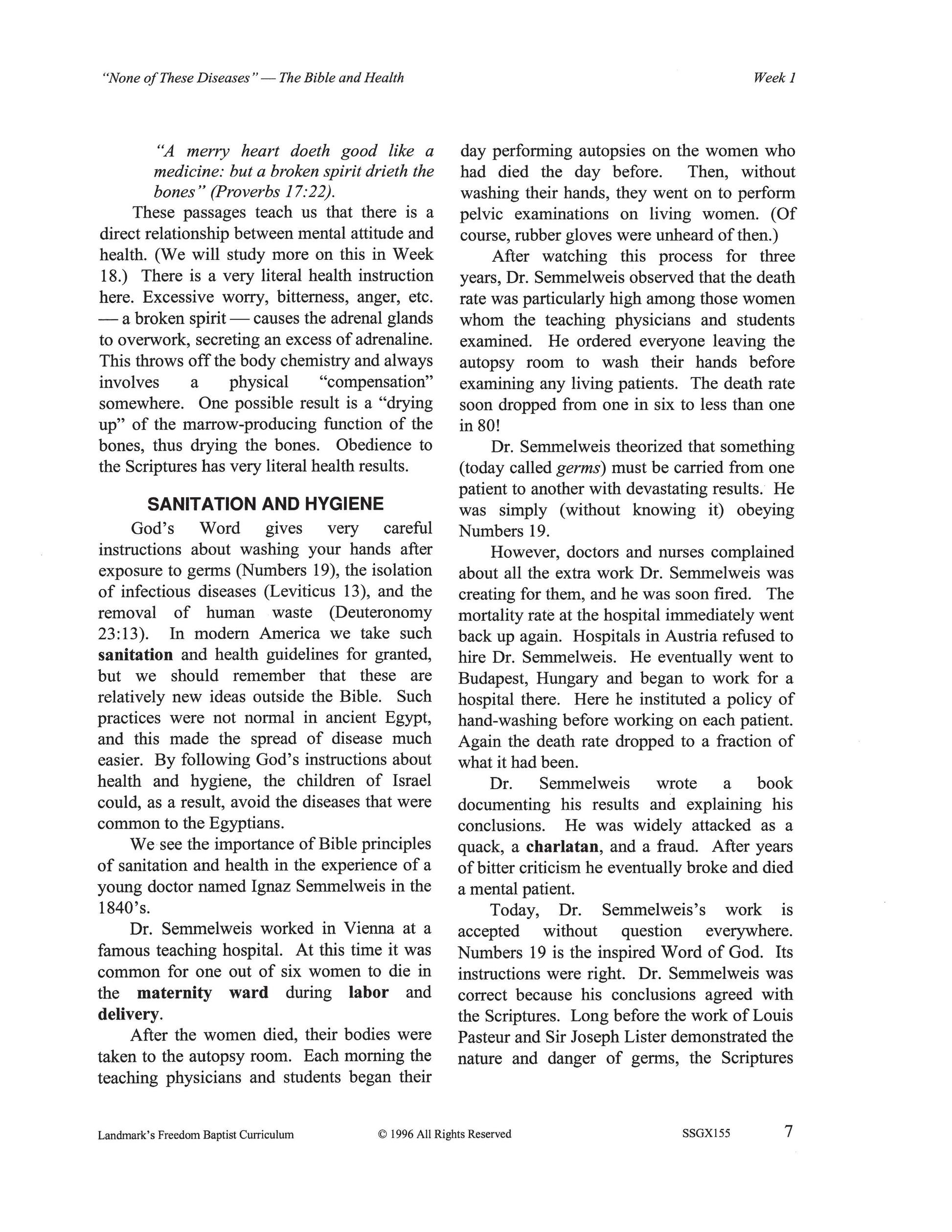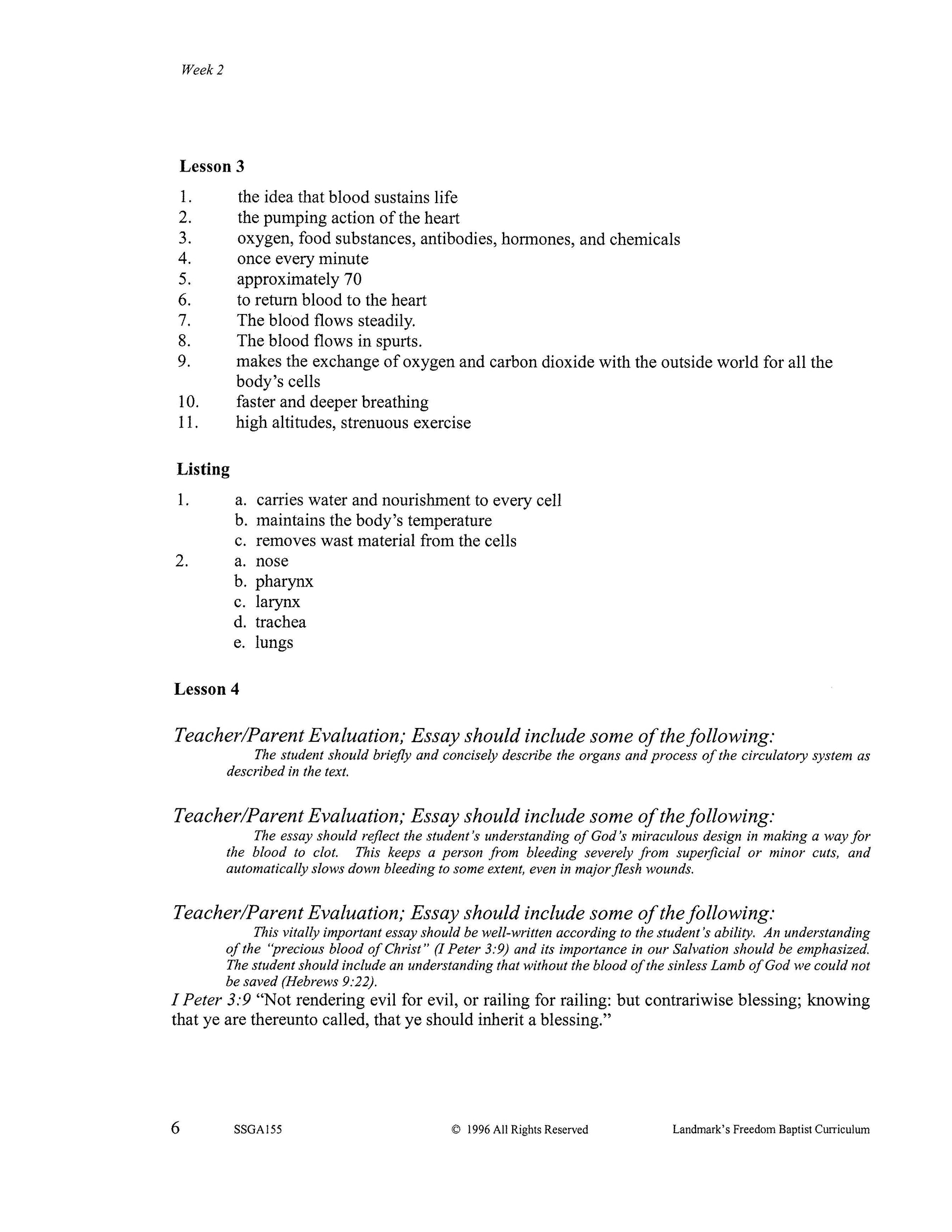 Health (S155) - This one semester course includes very practical presentations of the human body. Special emphasis is given to the importance of moral purity, including a study of God’s moral code as found in the Scriptures. This strongly Bible-based material has been preached and taught to young people with tremendous success for several years by a fundamental Baptist preacher.