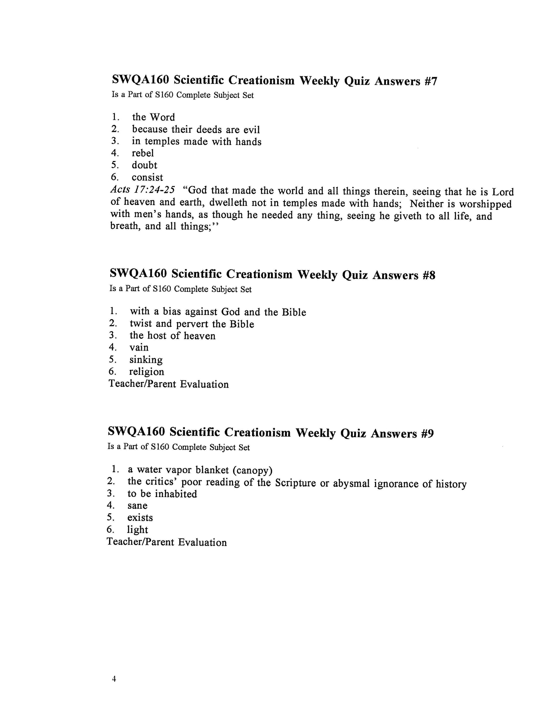 Geological Column are just a few of the topics covered. Each complete subject set includes everything you need for one student for one year. Because the set is complete, you are assured that Study Guides, Study Guide Answers, Test and Quizzes, and Test and Quiz Answers are included and are the latest edition available.