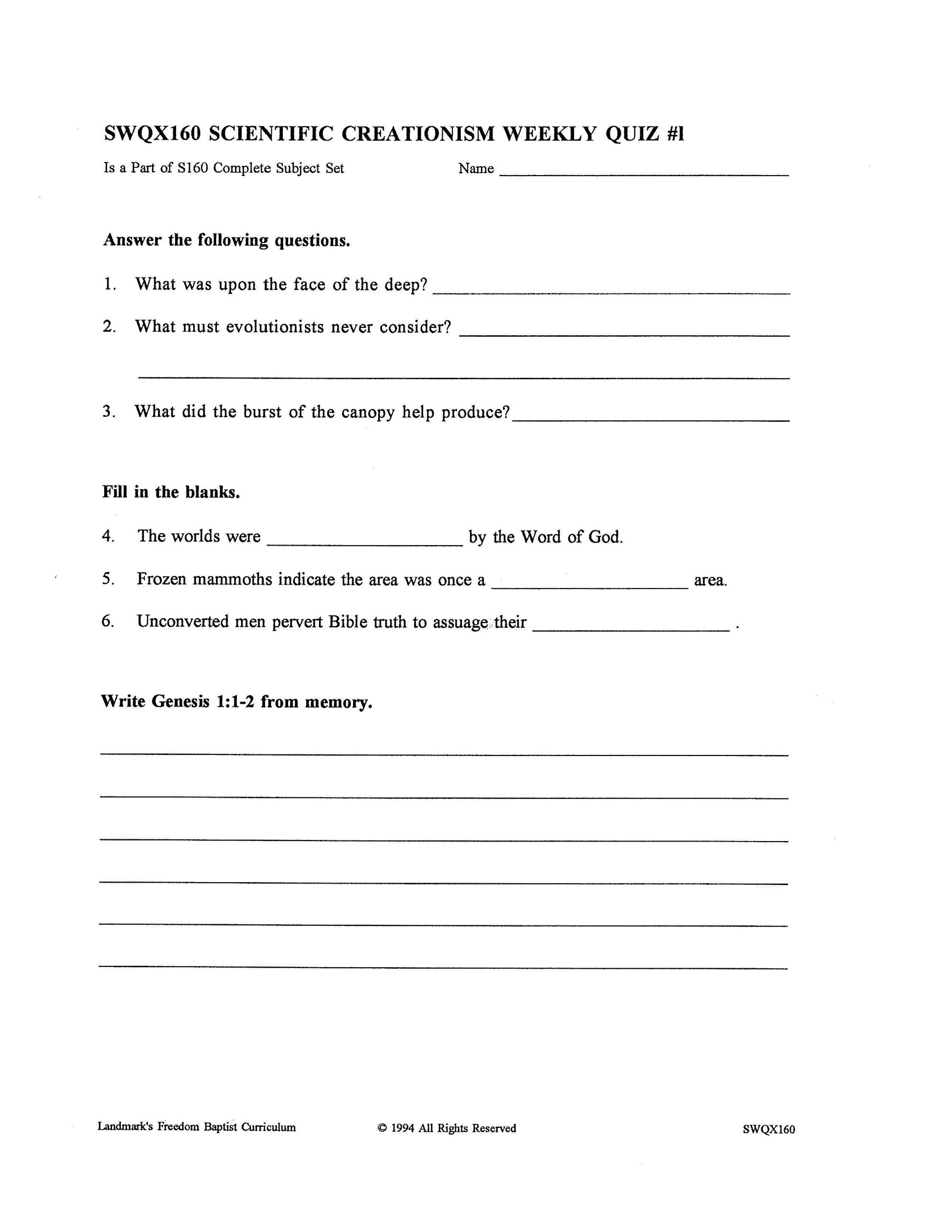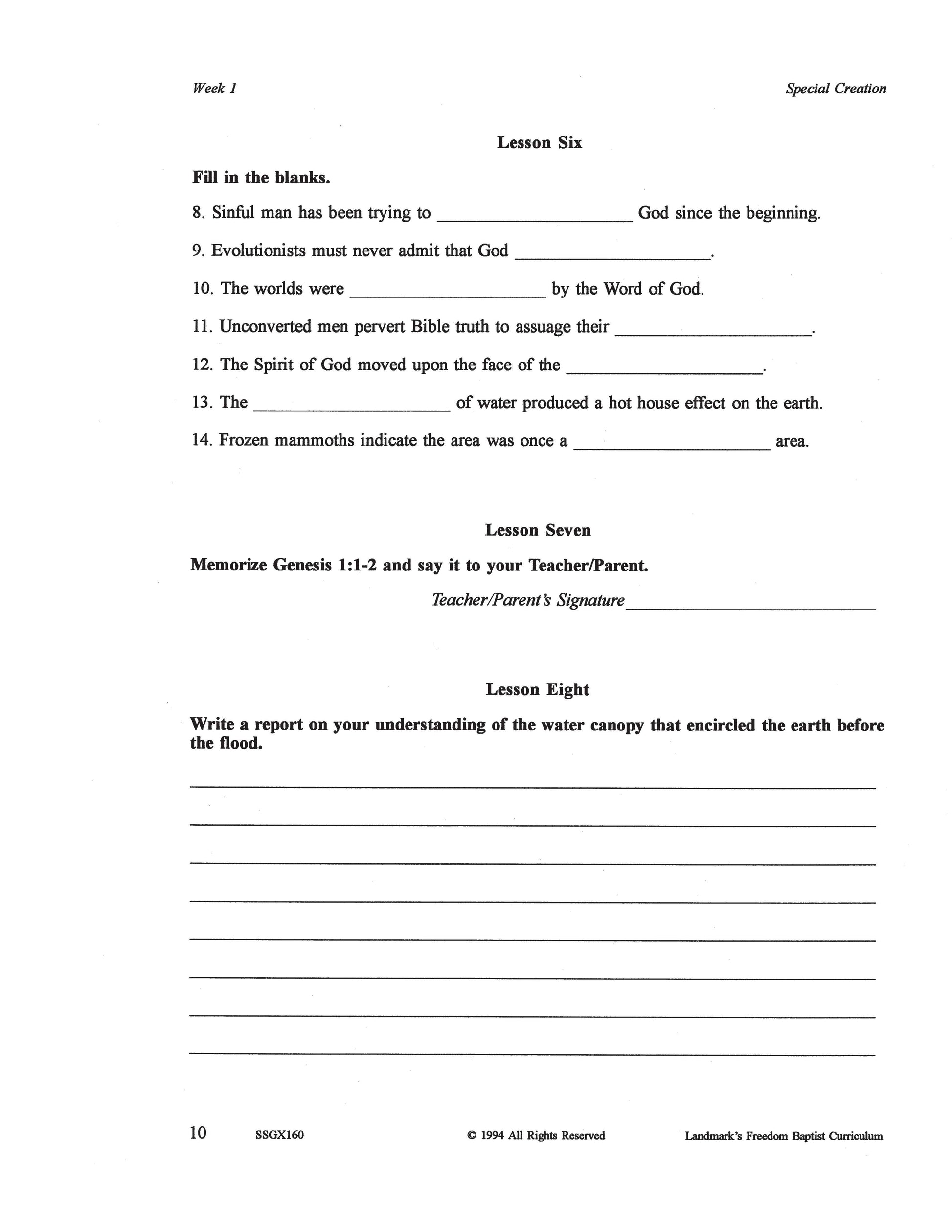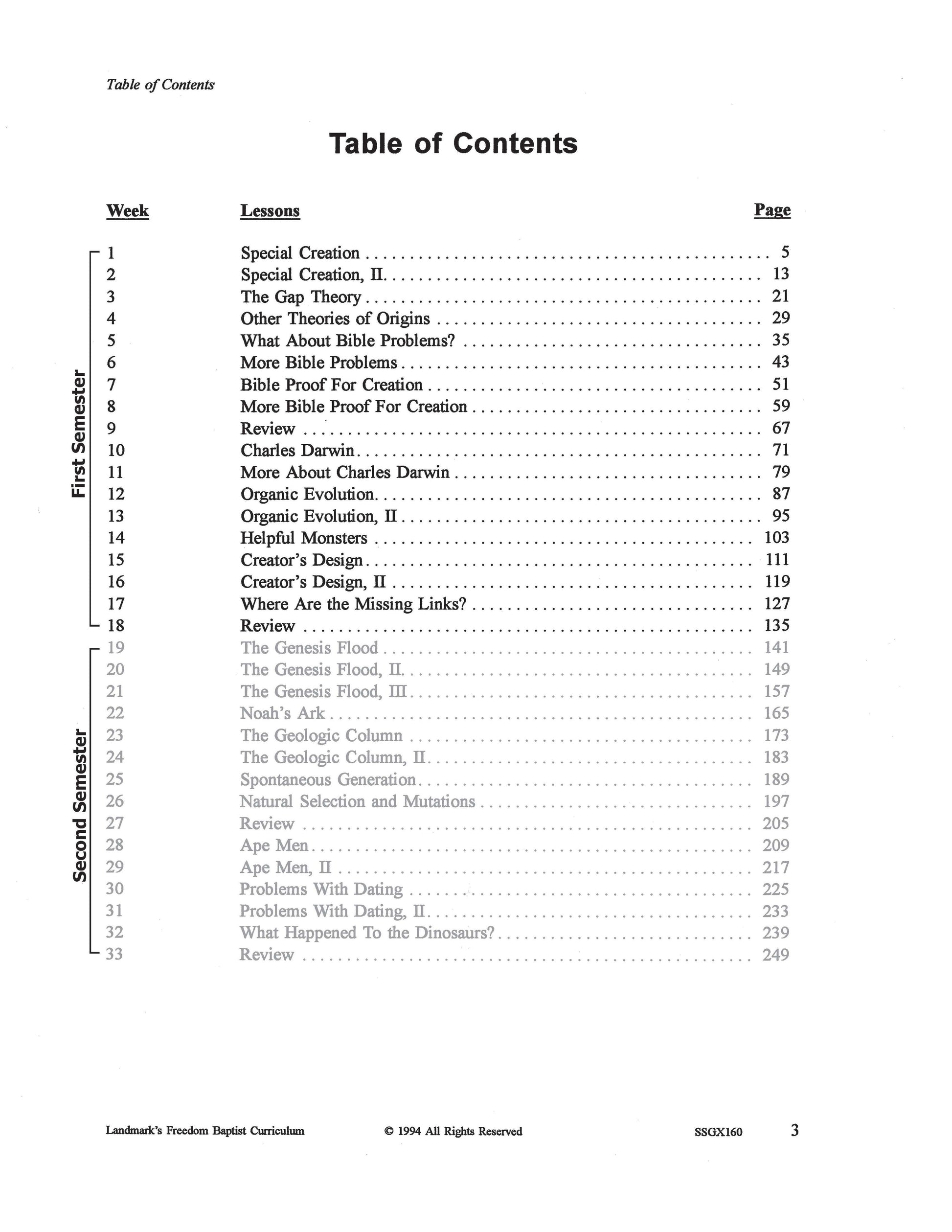 Students begin their study with Special Creation – Genesis 1:1. The Gap Theory, other theories of origin, Charles Darwin, Organic Evolution, The Genesis Flood, and The