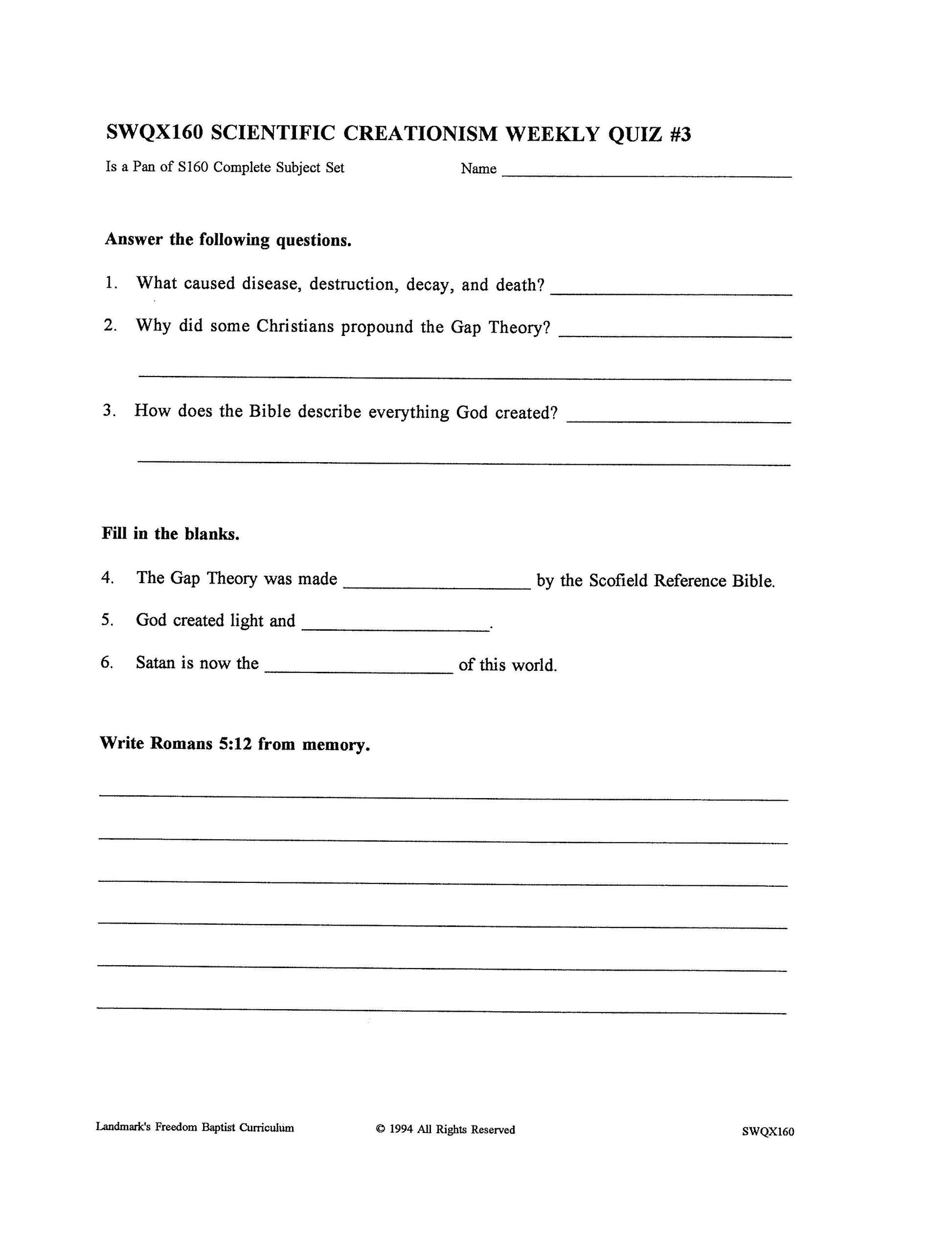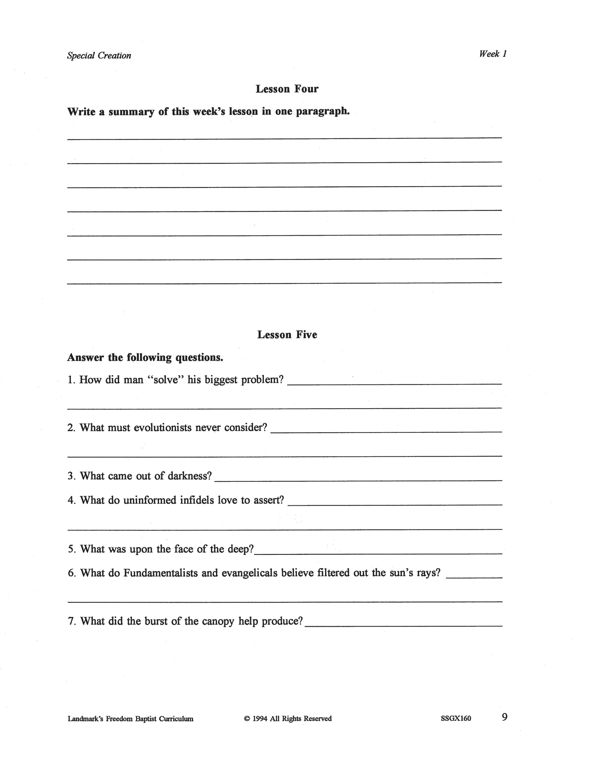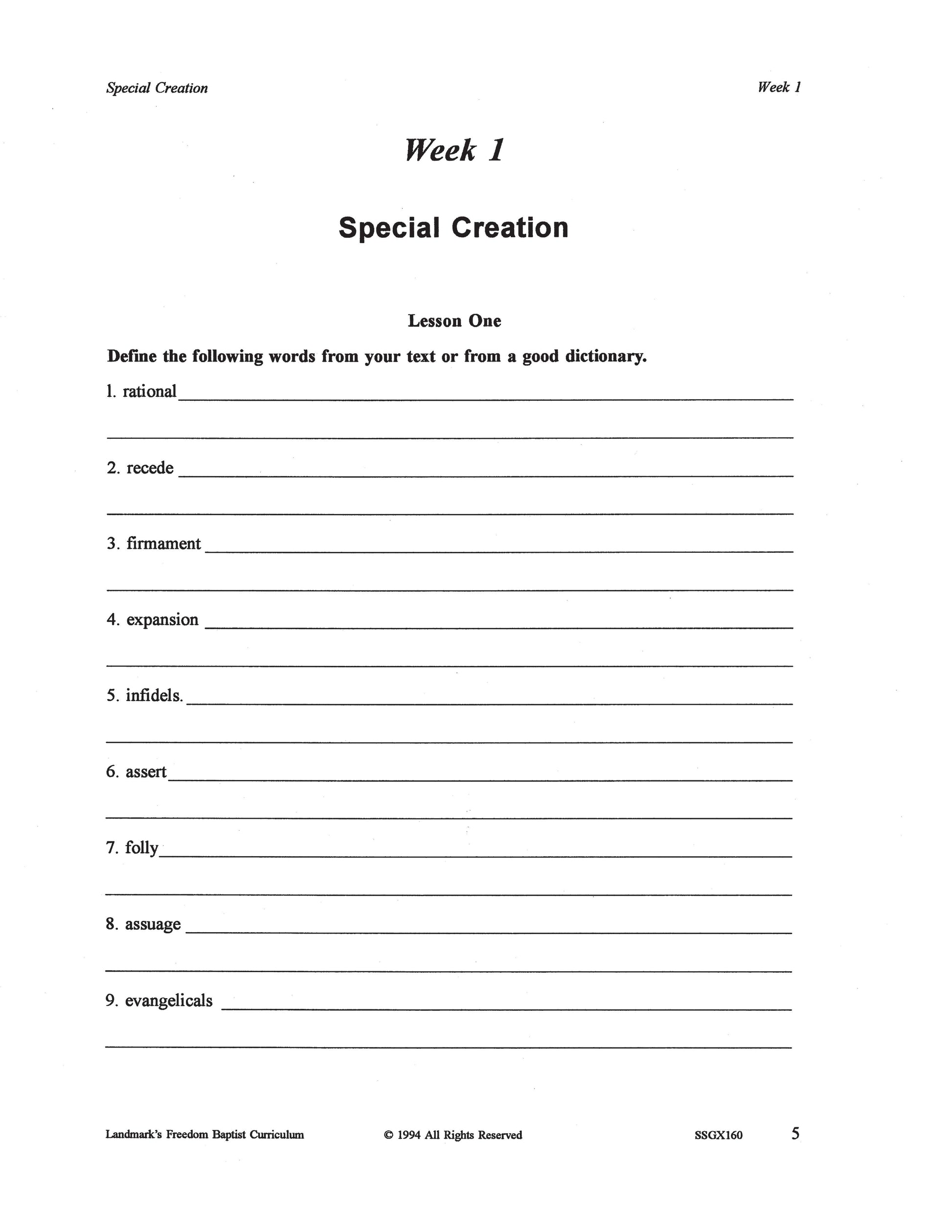 Students begin their study with Special Creation – Genesis 1:1. The Gap Theory, other theories of origin, Charles Darwin, Organic Evolution, The Genesis Flood, and The