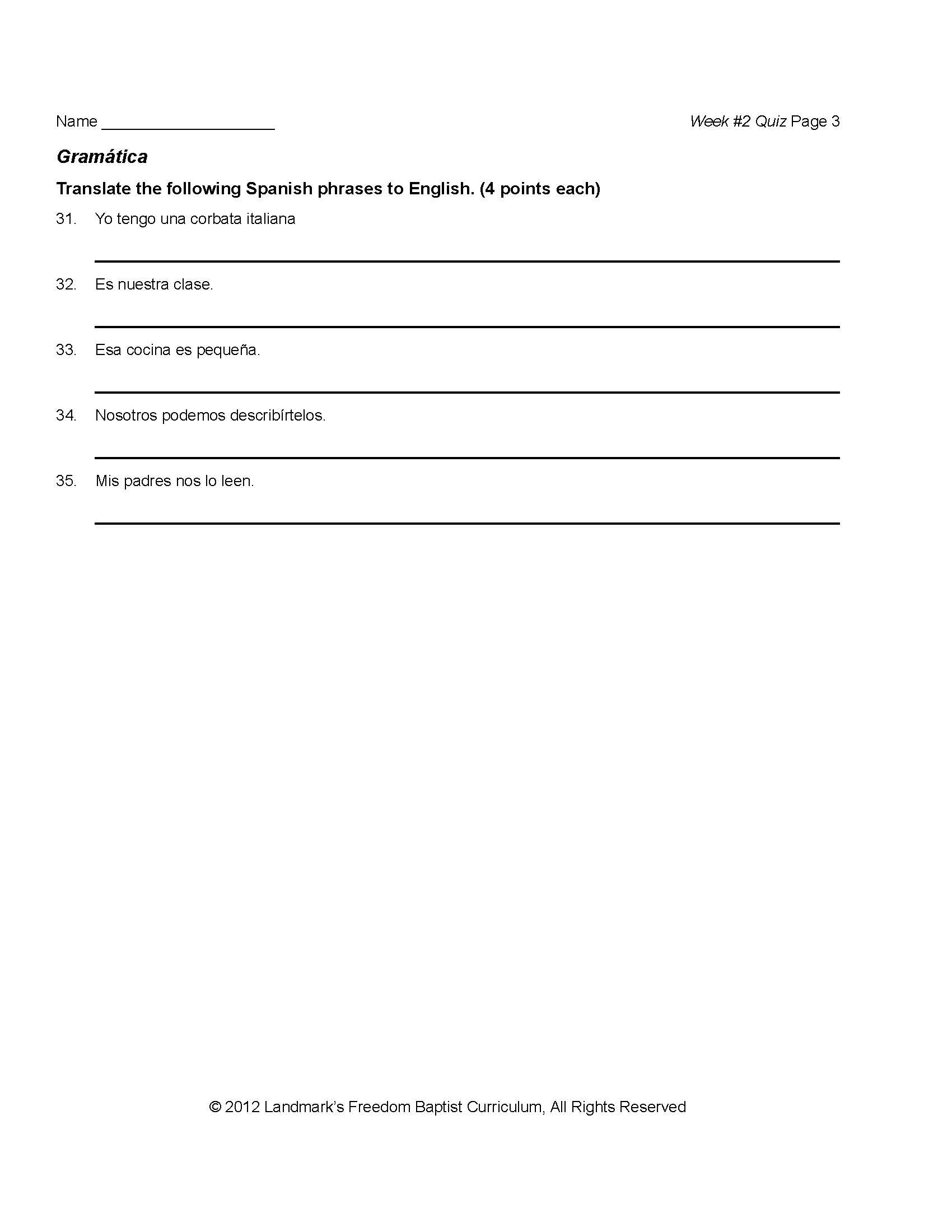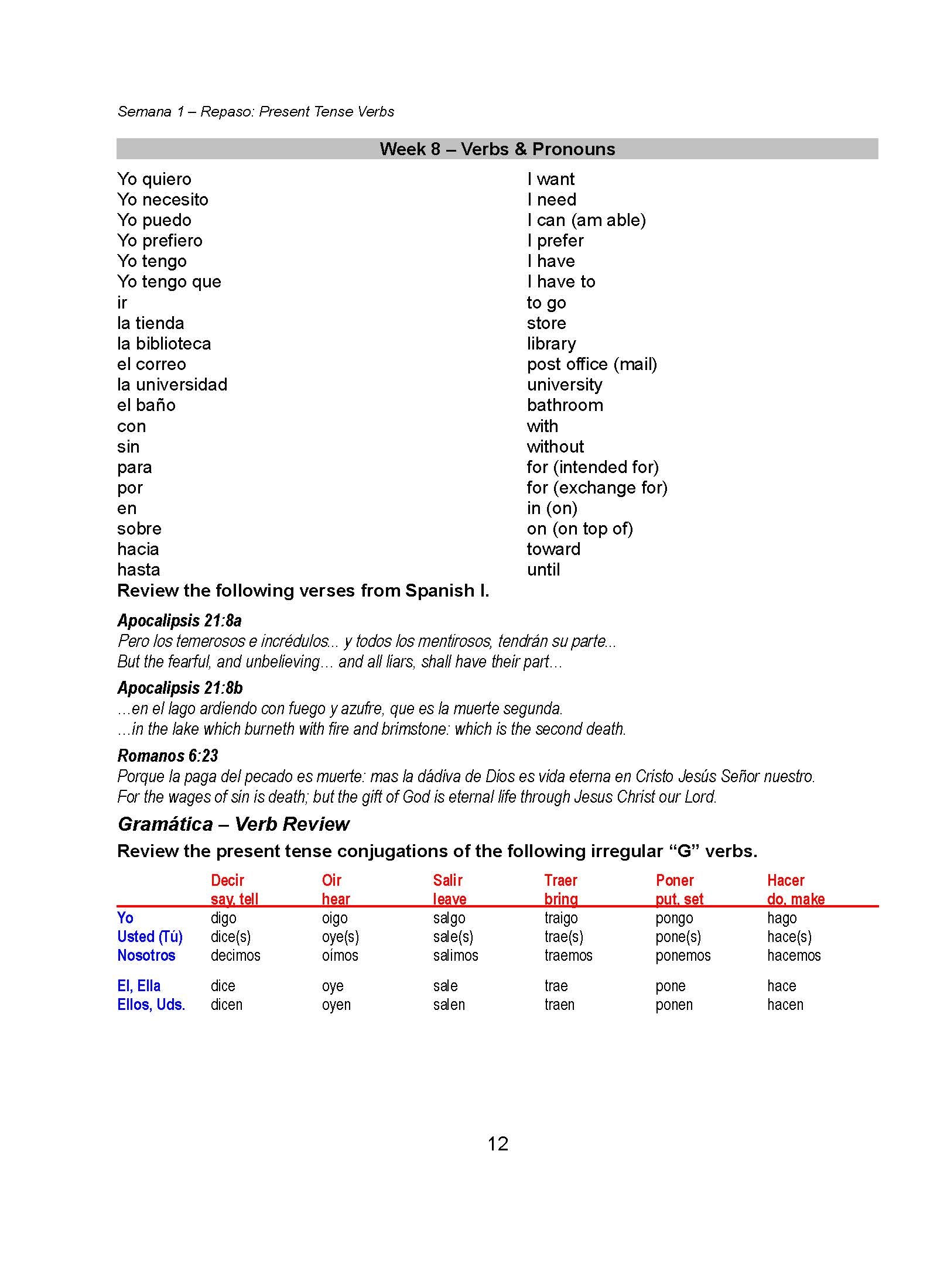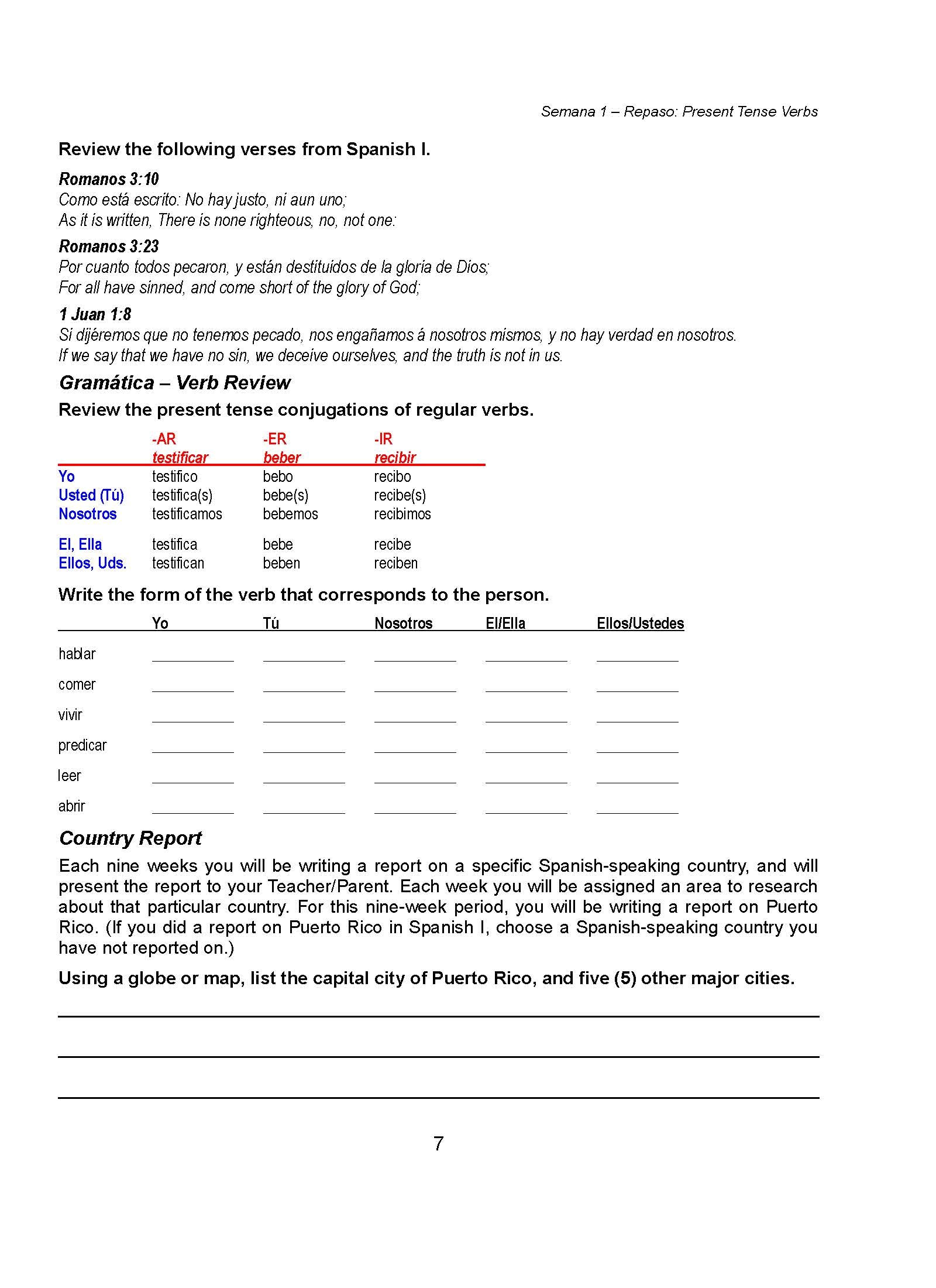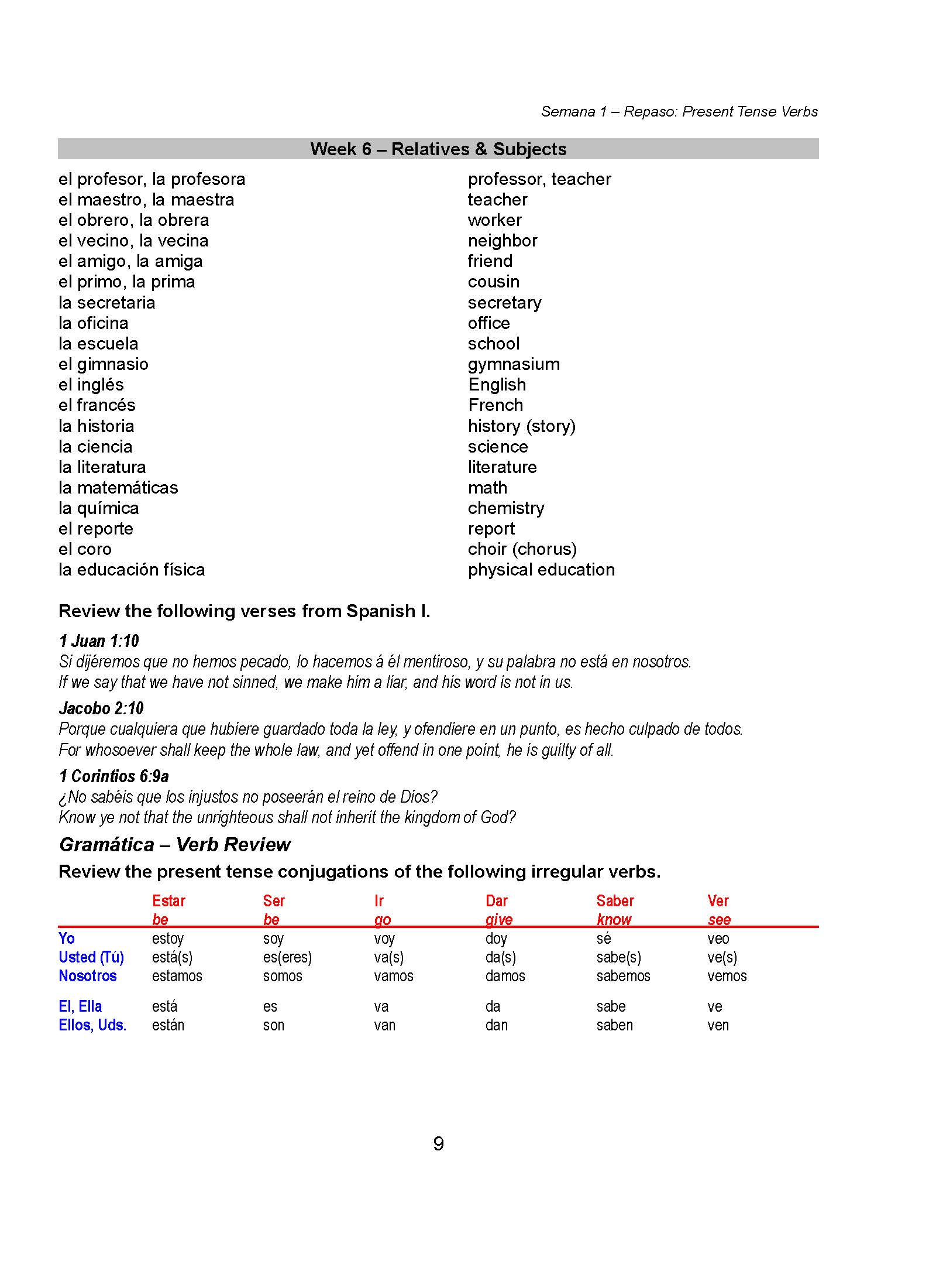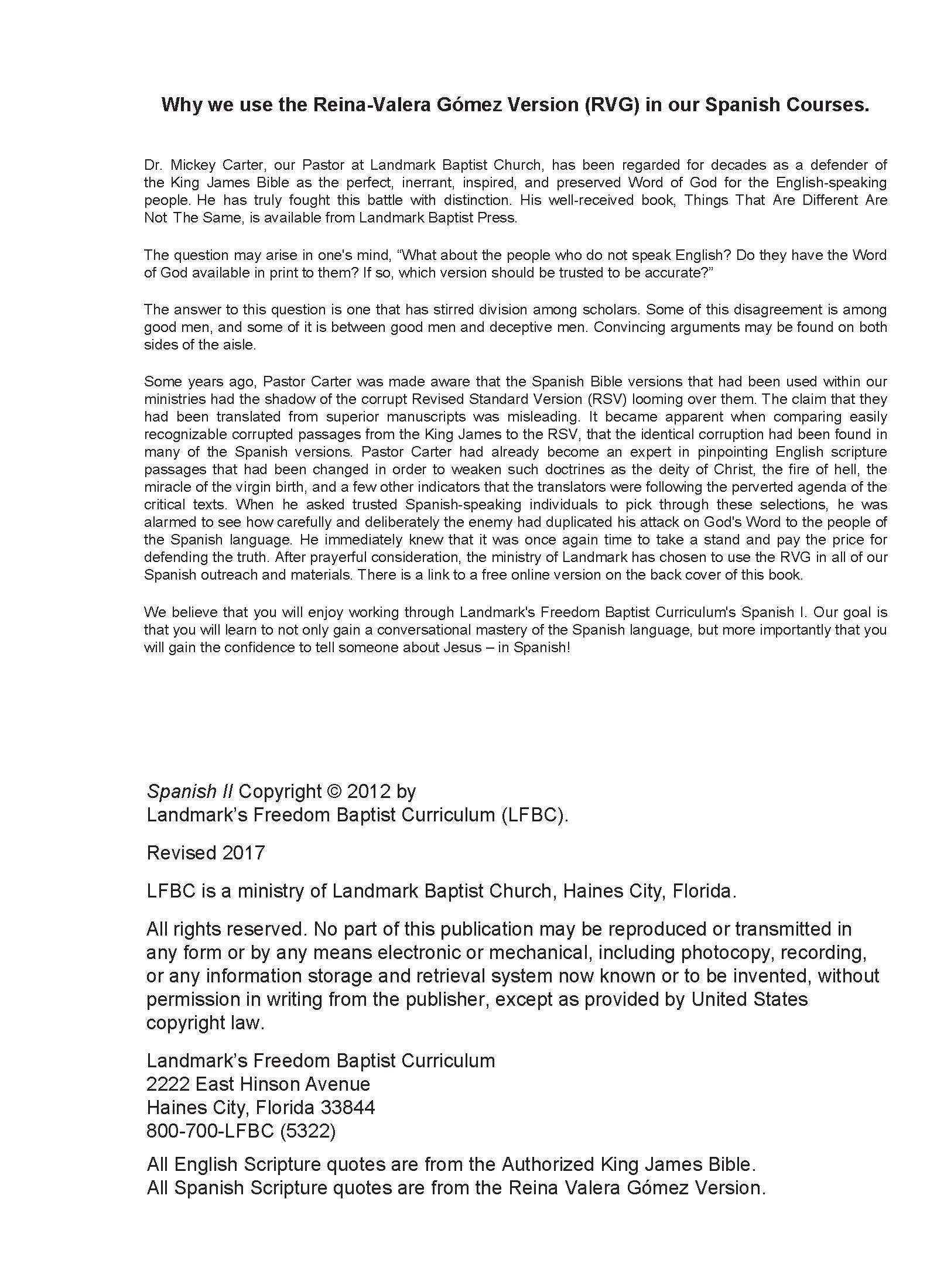 This Spanish II course is completion of Spanish I. It includes vocabulary, parts of speech, and practical uses of words, phrases, and sentences. It is illustrated and provides useful examples of Sunday School lessons, songs, and the plan of salvation. The last few chapters concentrate on the student being able to lead someone to Christ. Each complete subject set includes everything you need for one student for one year. Because the set is complete, you are assured that Study Guides, Study Guide Answers, Test and Quizzes, and Test and Quiz Answers are included and are the latest edition available.