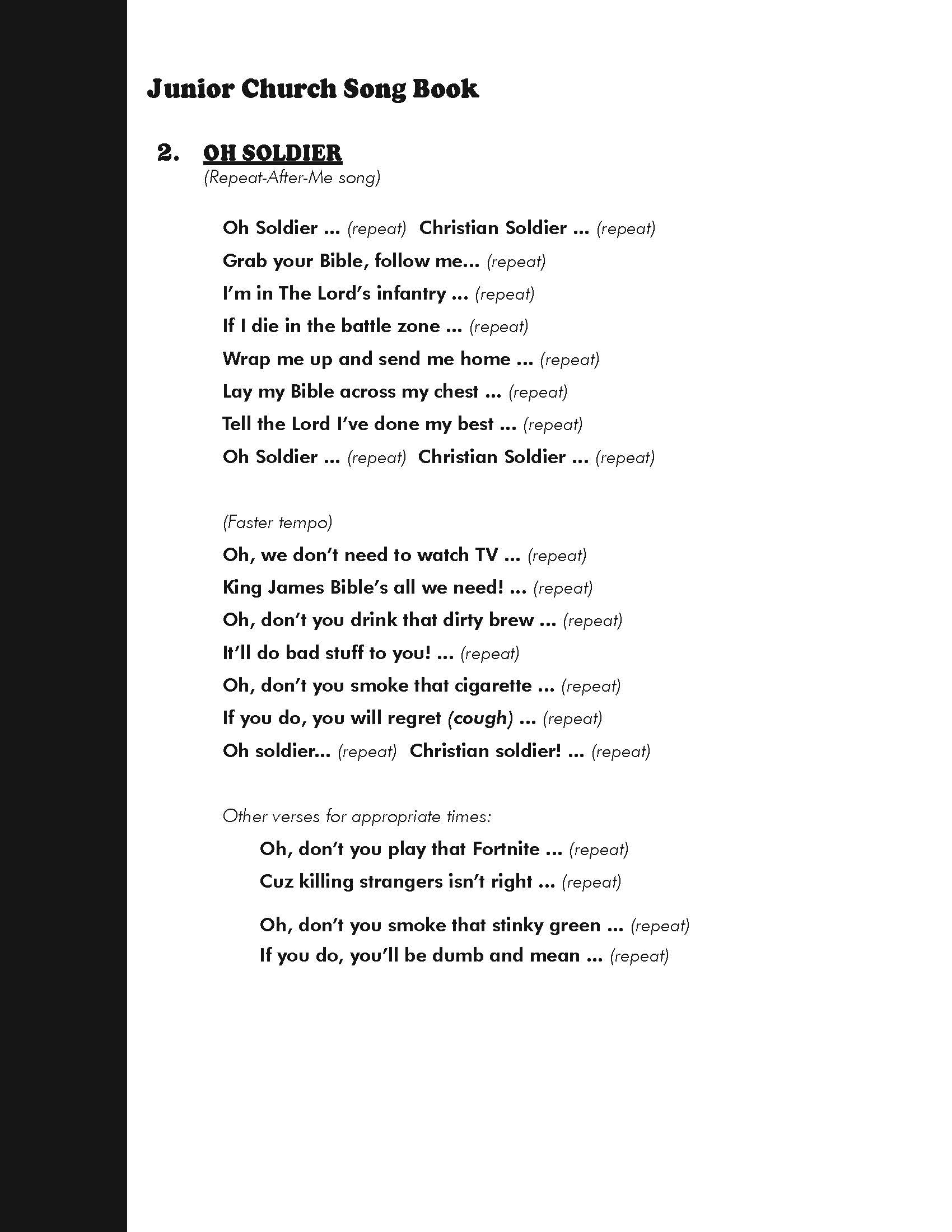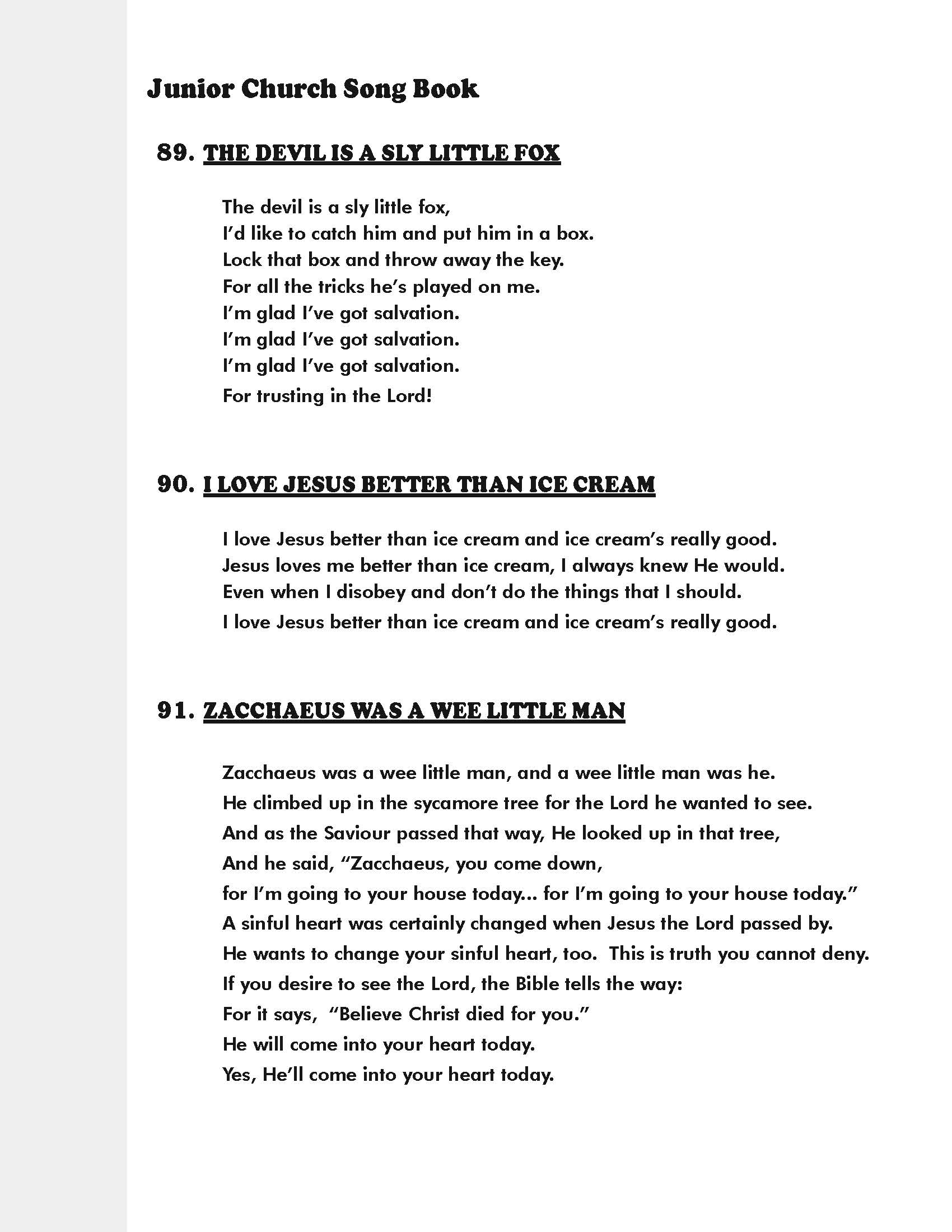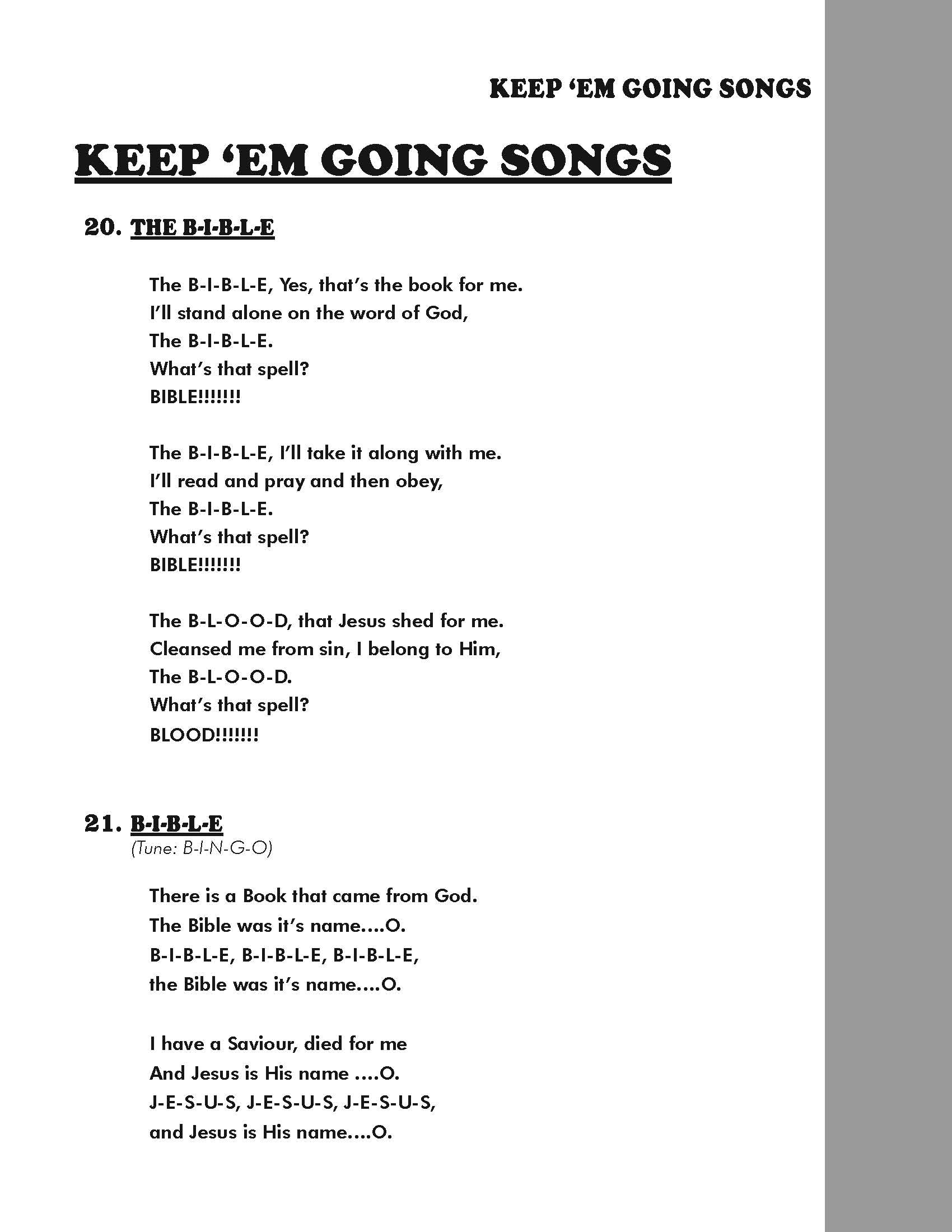 In this booklet is an assortment of songs from I'M IN THE LORD'S ARMY to the CRAYON BOX SONG. The songs are arranged in three different sections from loud songs to quiet songs. It is an essential tool to any children's ministry worker to be properly prepared for any situation. This book contains the lyrics only of each song.