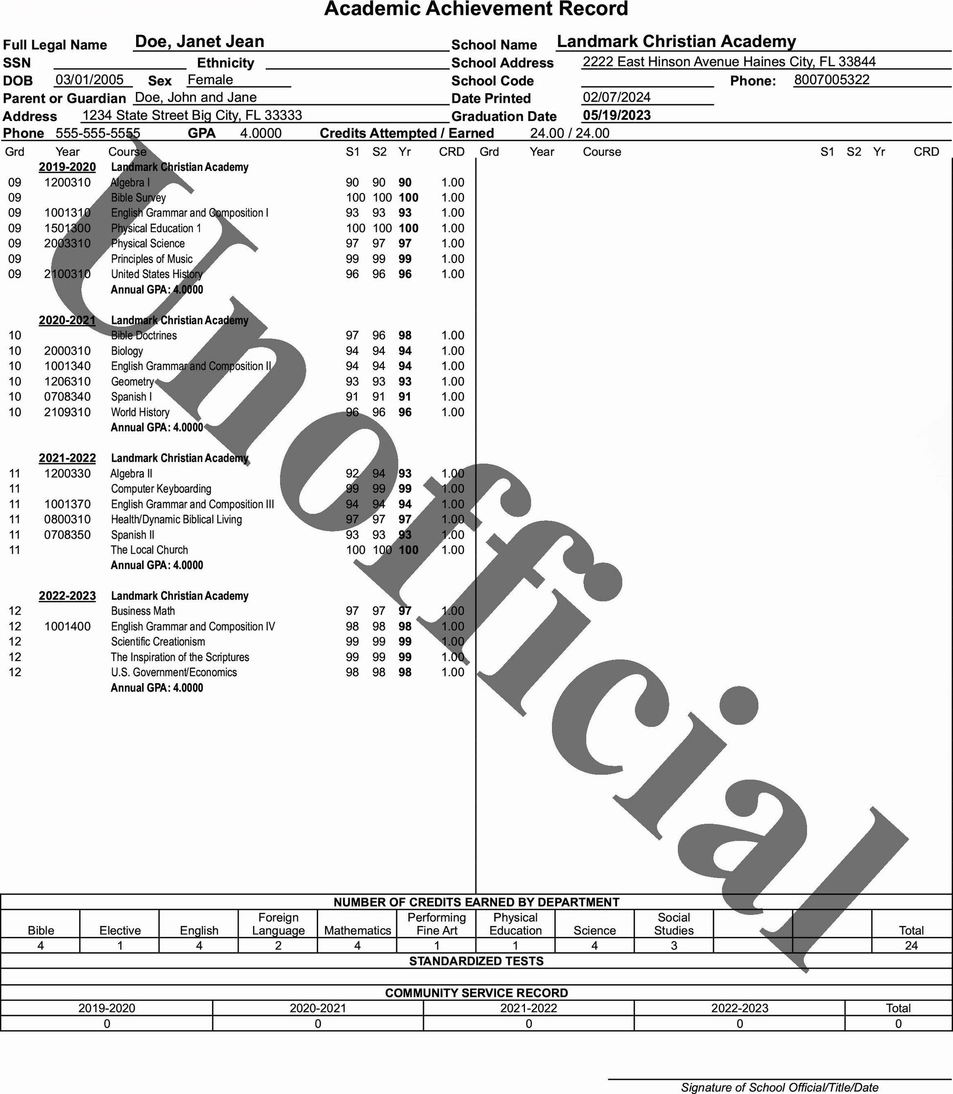 Upon completion of all graduation requirements, an official transcript will be kept in the graduate's permanent record. A copy of an unofficial transcript can be prepared and made available to the graduate or requesting institutions. This can be mailed, faxed, or emailed for free upon request by contacting 1-800-700-5322.